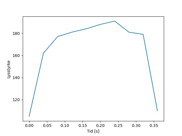 Plottet over viser meteorens høgde over bakken langs dens bane. Hver røde prikk svarer til hvor banen krysser siktelinjene.