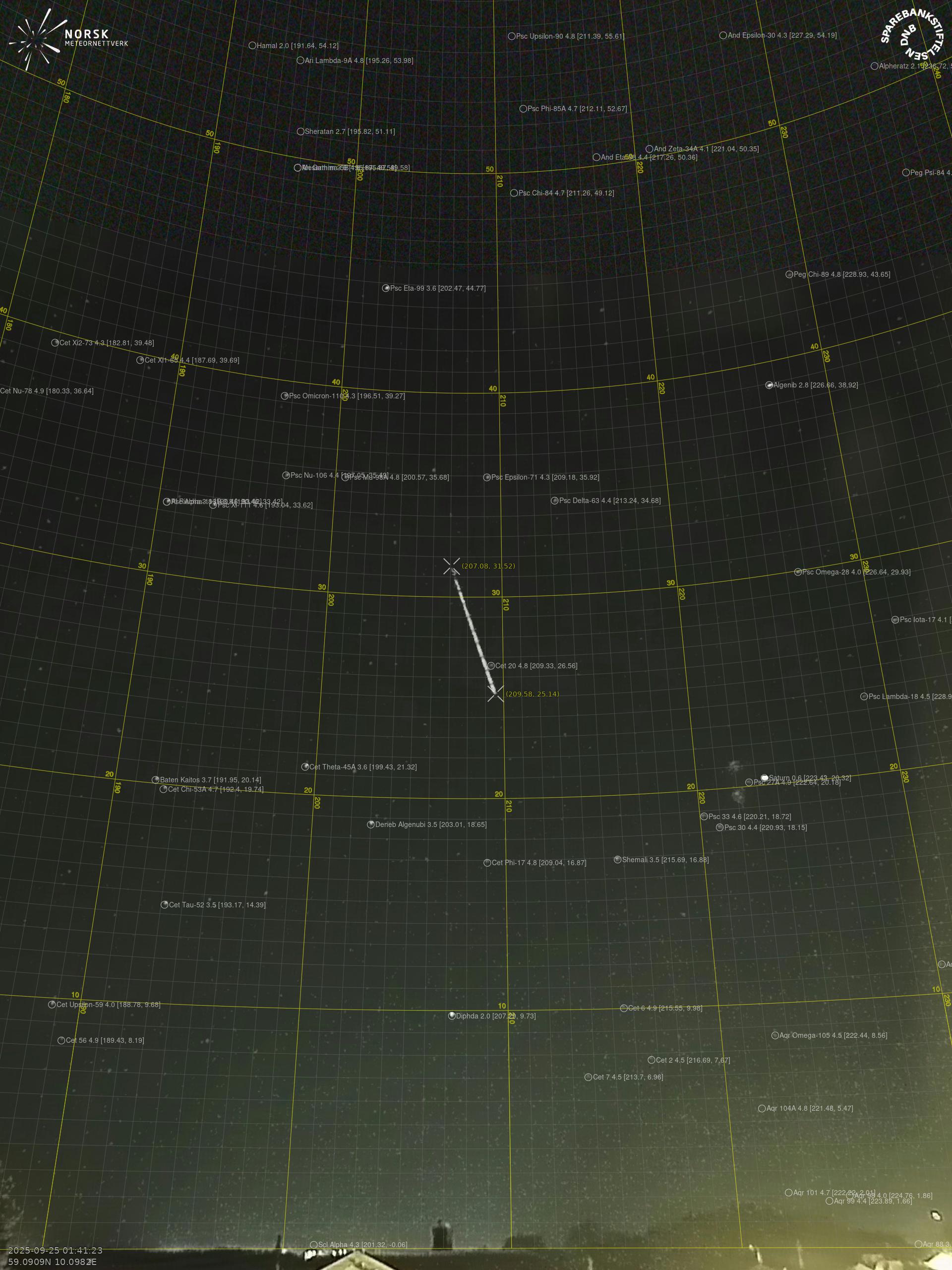Meteor over Lillesand 2025-09-25 01:41:23 UTC