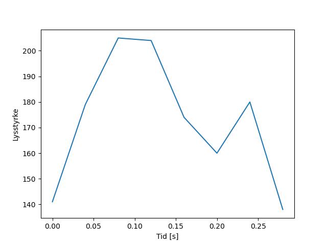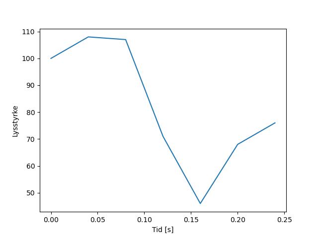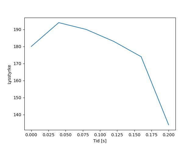 Plottet over viser meteorens høgde over bakken langs dens bane. Hver røde prikk svarer til hvor banen krysser siktelinjene.