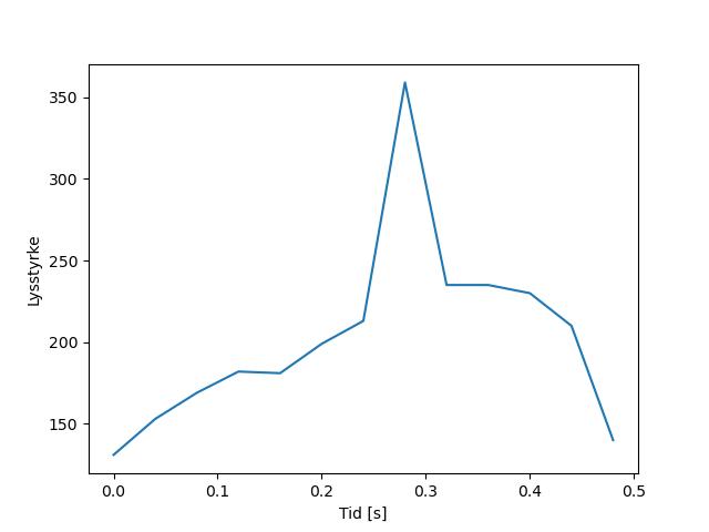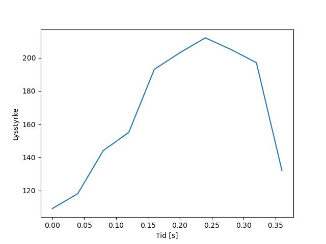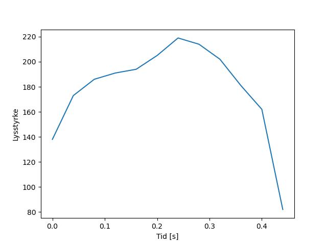 Plottet over viser meteorens høgde over bakken langs dens bane. Hver røde prikk svarer til hvor banen krysser siktelinjene.