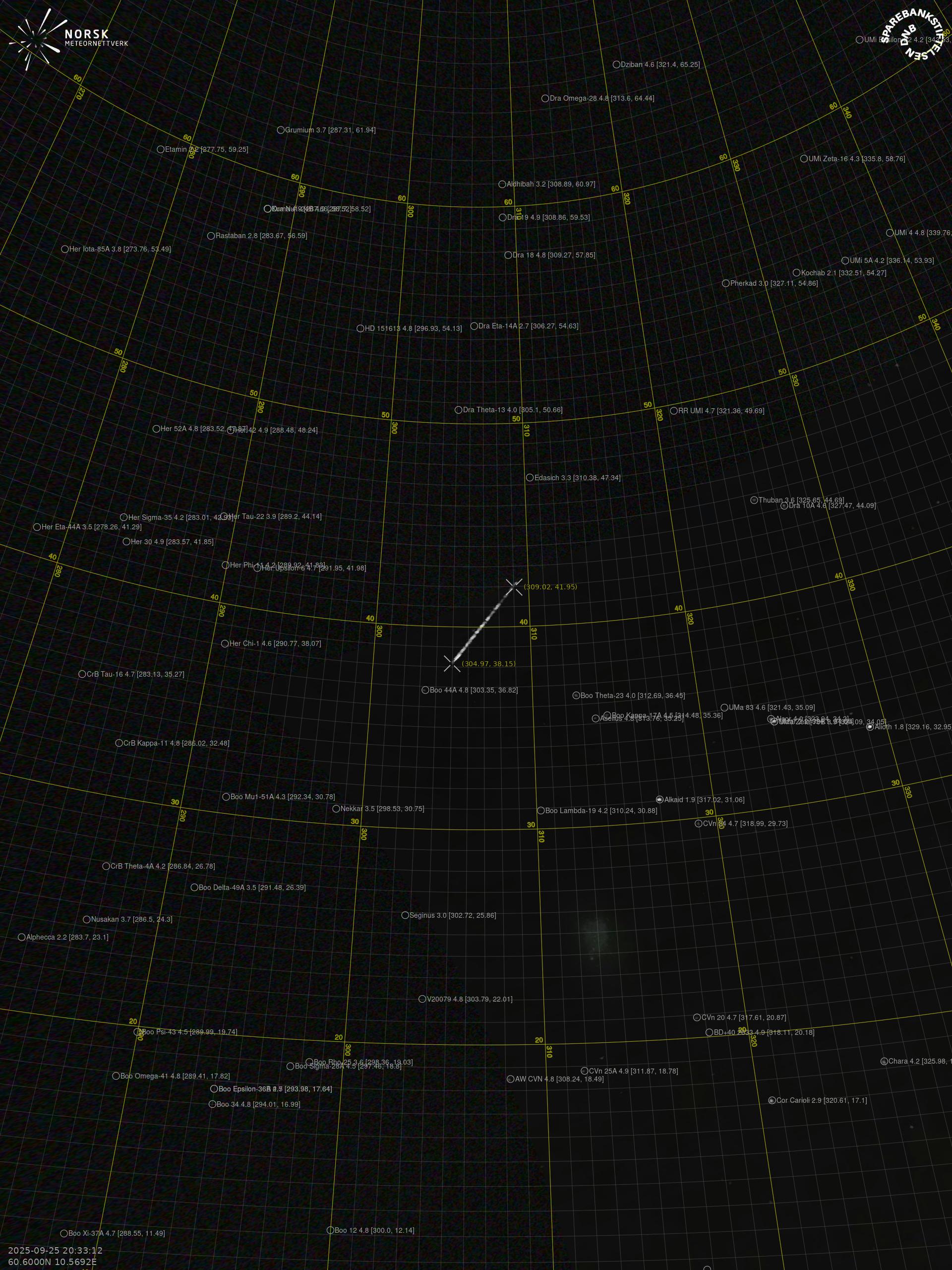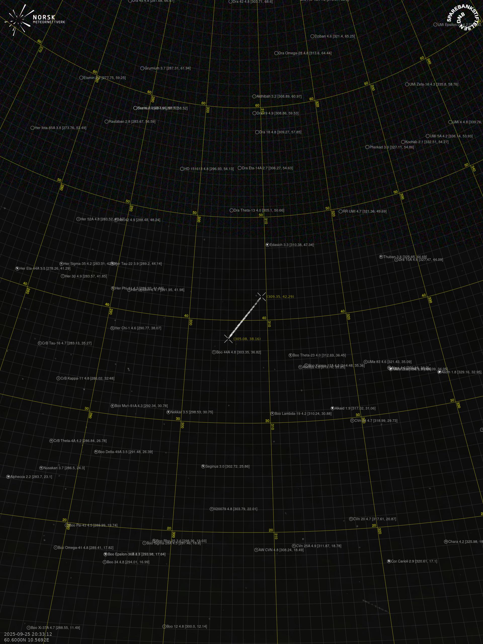Meteor over Slidre 2025-09-25 20:33:12 UTC