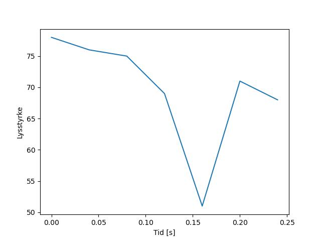 Plottet over viser meteorens høgde over bakken langs dens bane. Hver røde prikk svarer til hvor banen krysser siktelinjene.