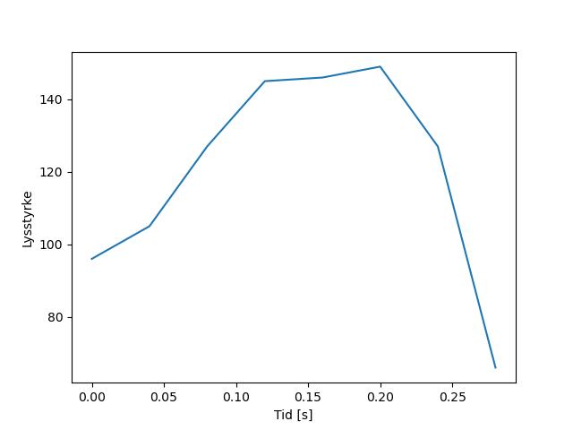 Plottet over viser meteorens høgde over bakken langs dens bane. Hver røde prikk svarer til hvor banen krysser siktelinjene.