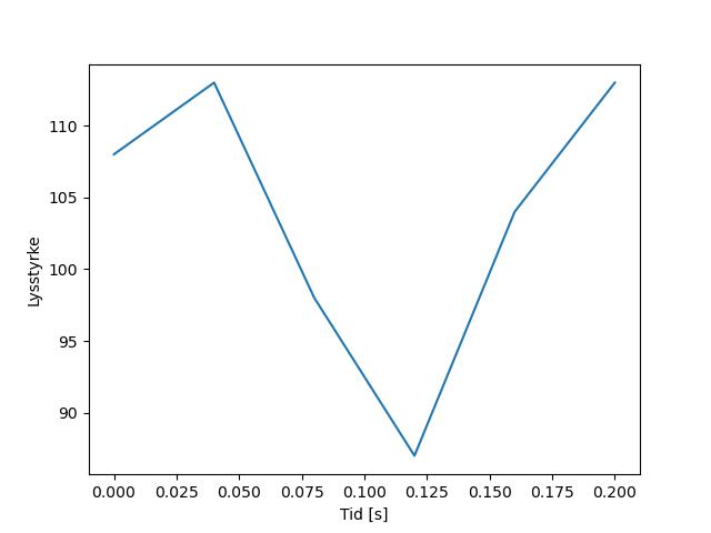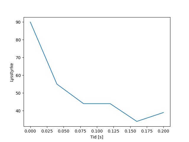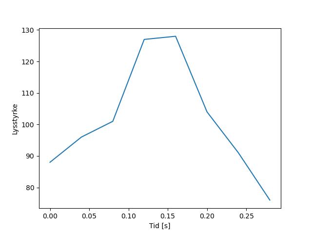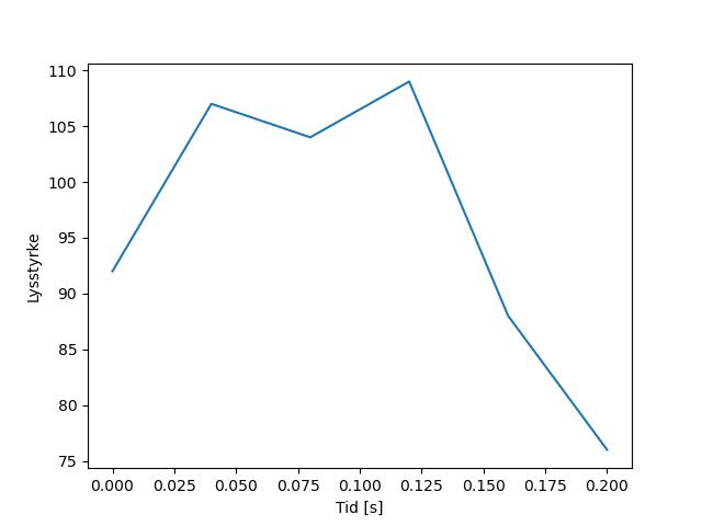 Plottet over viser meteorens høgde over bakken langs dens bane. Hver røde prikk svarer til hvor banen krysser siktelinjene.