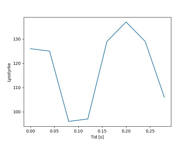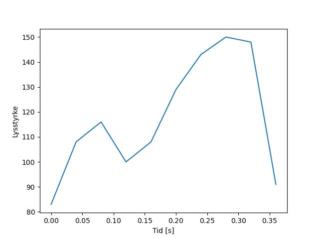 Plottet over viser meteorens høgde over bakken langs dens bane. Hver røde prikk svarer til hvor banen krysser siktelinjene.