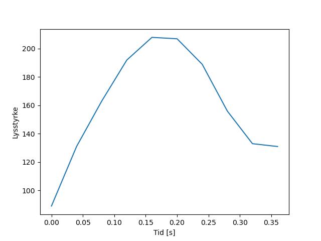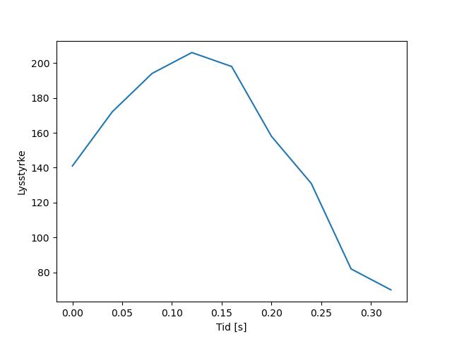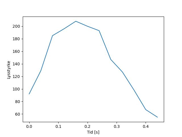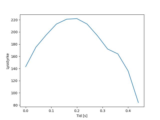 Plottet over viser meteorens høgde over bakken langs dens bane. Hver røde prikk svarer til hvor banen krysser siktelinjene.