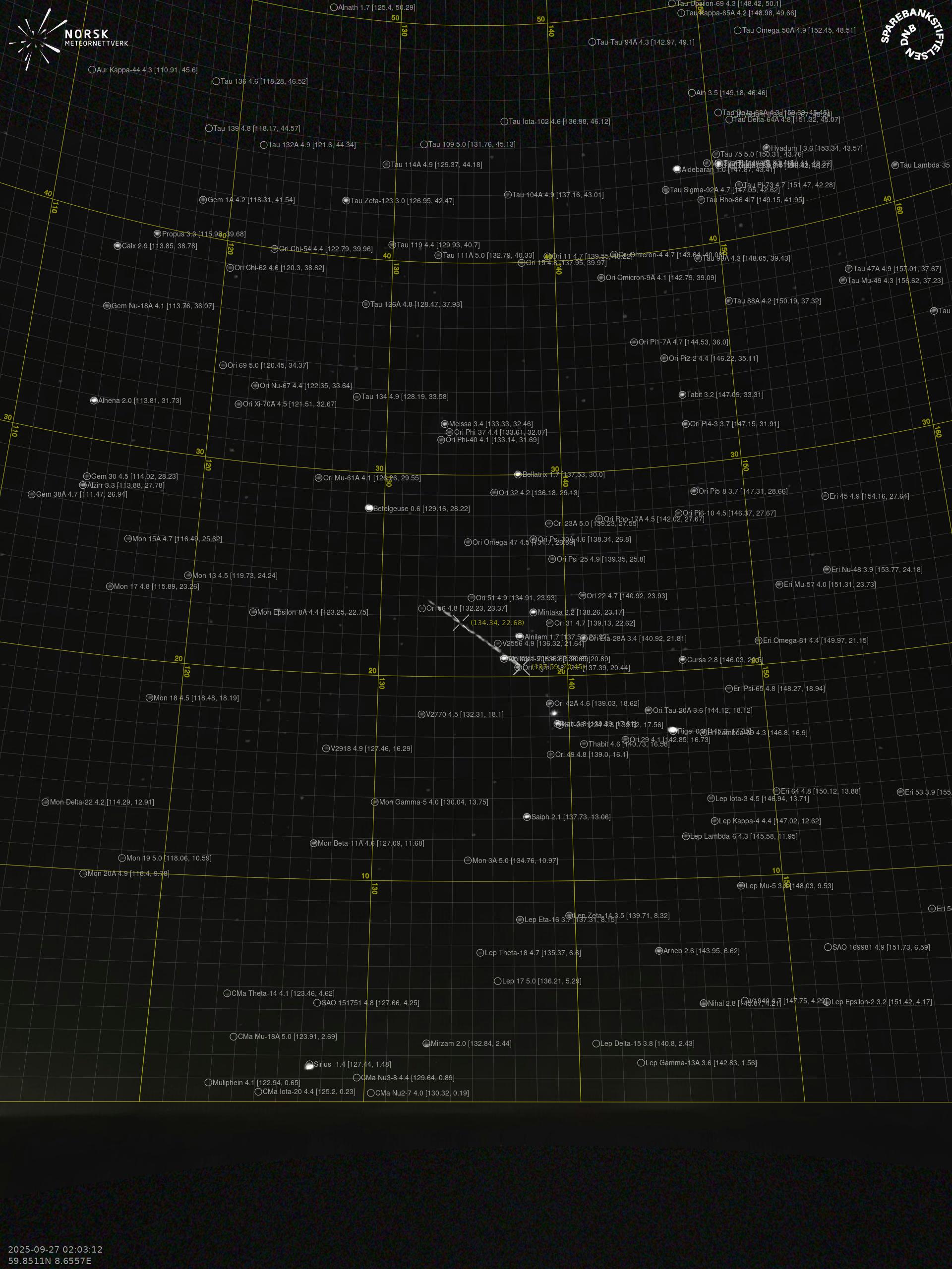 Meteor over Larvik 2025-09-27 02:03:13 UTC