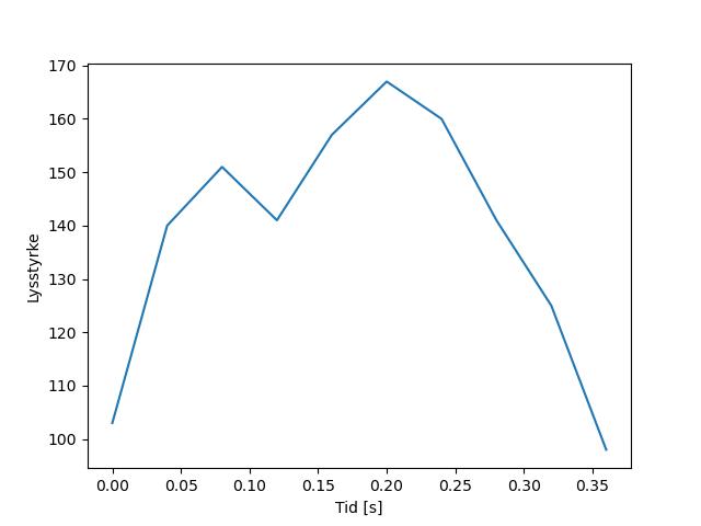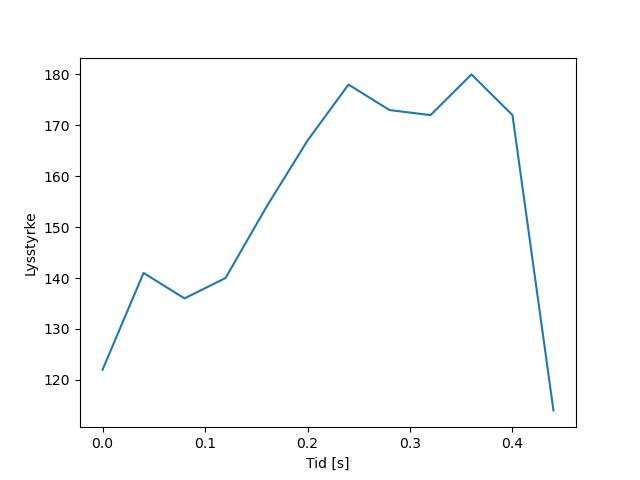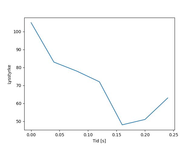 Plottet over viser meteorens høgde over bakken langs dens bane. Hver røde prikk svarer til hvor banen krysser siktelinjene.