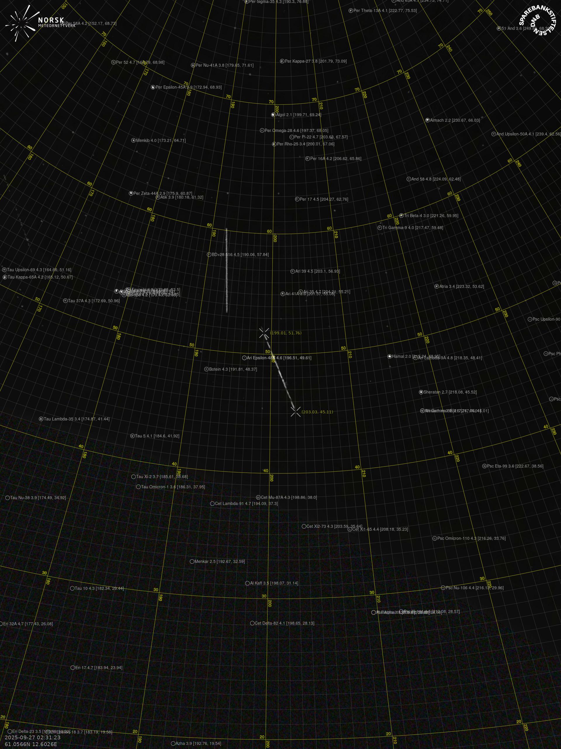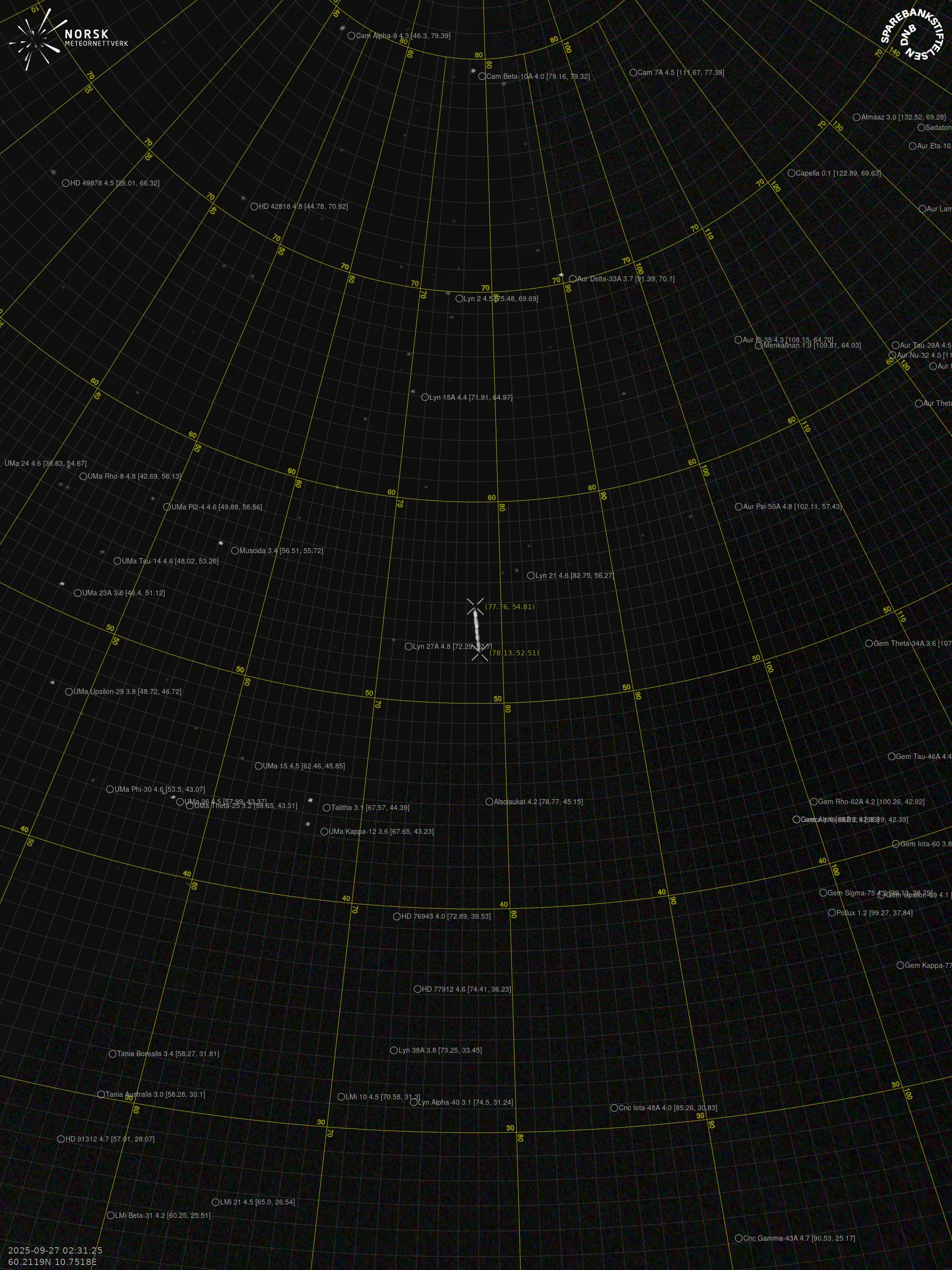 Meteor over Kongsvinger 2025-09-27 02:31:23 UTC