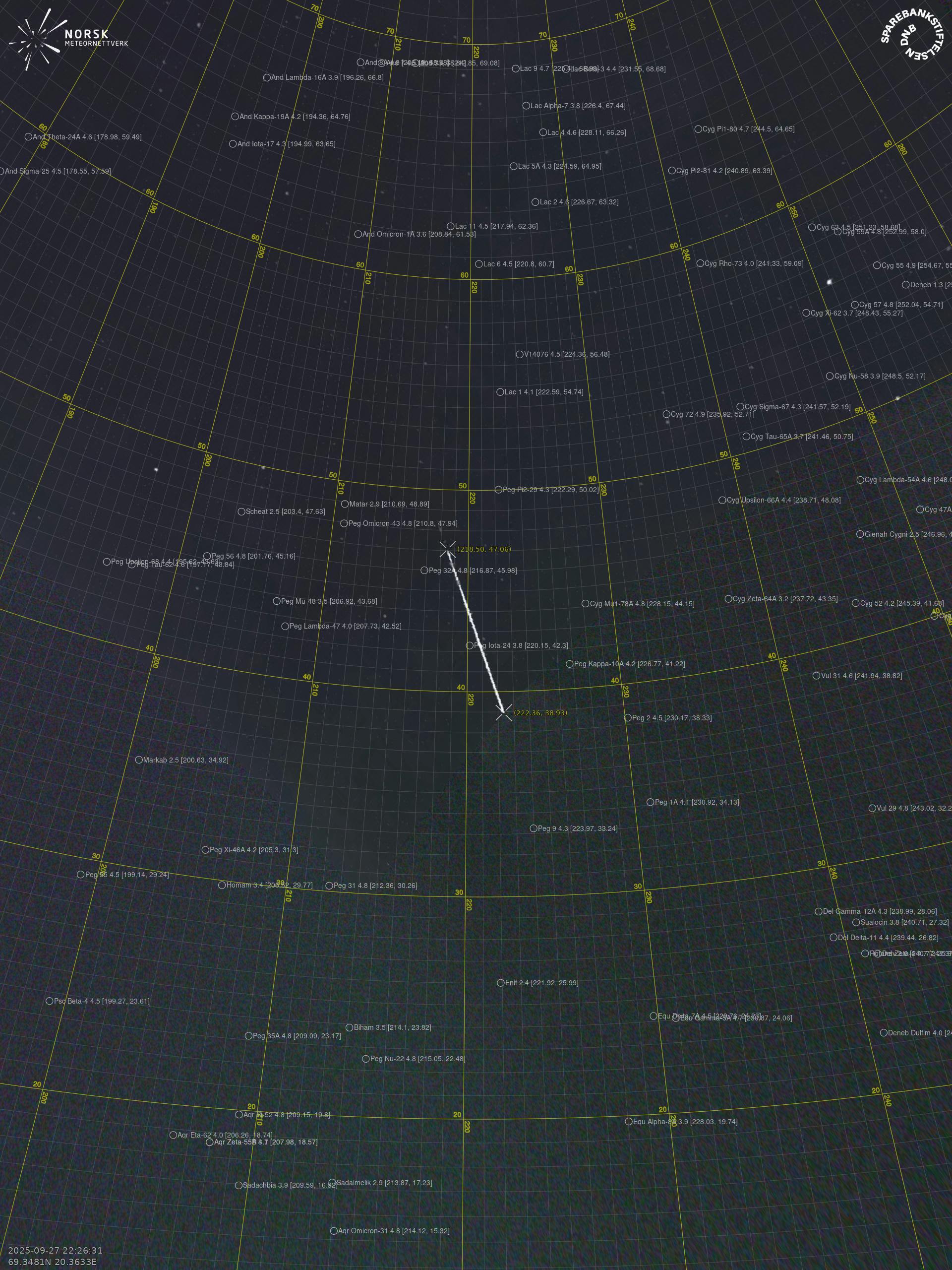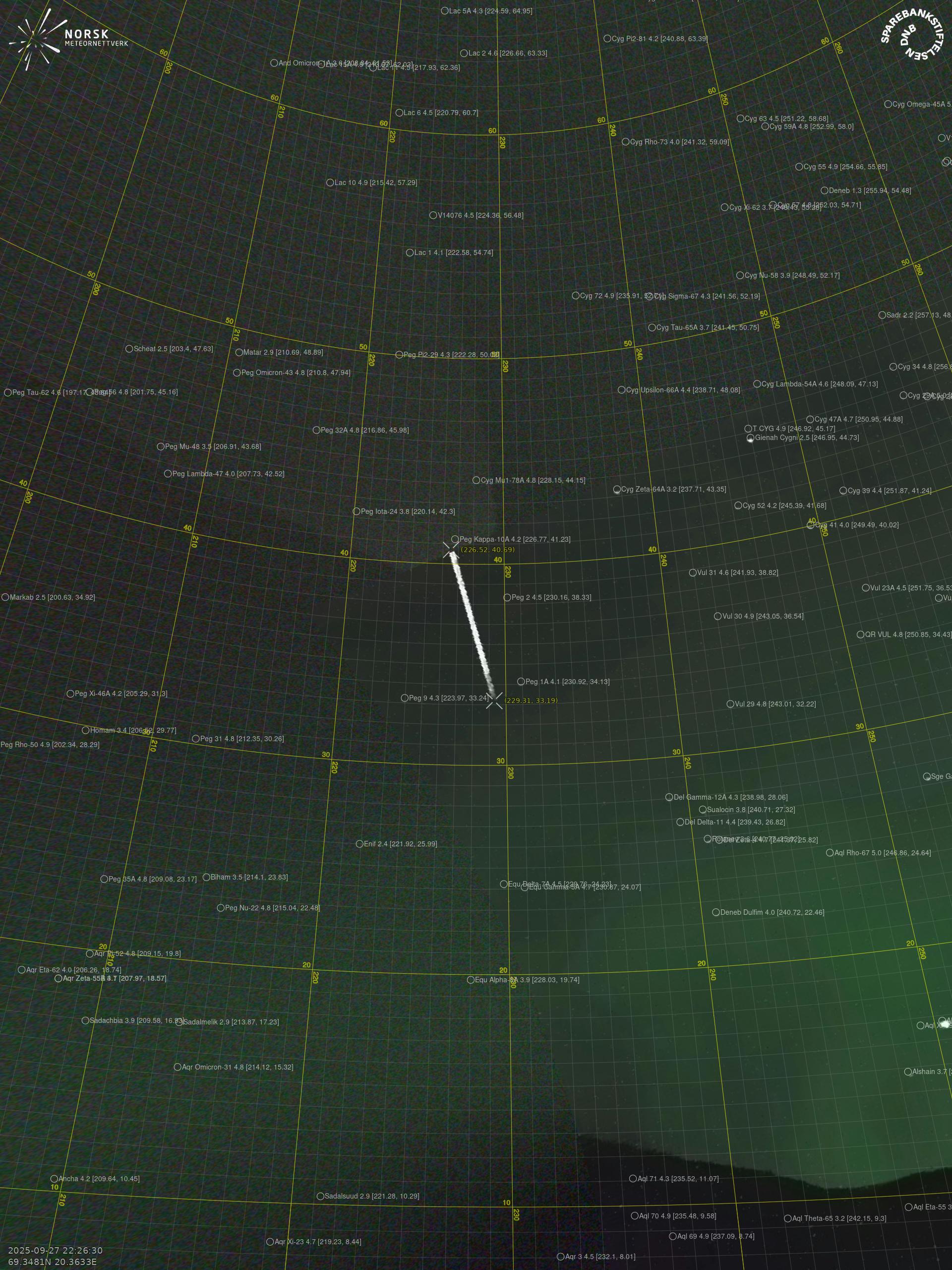 Meteor over Husøya 2025-09-27 22:26:30 UTC
