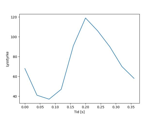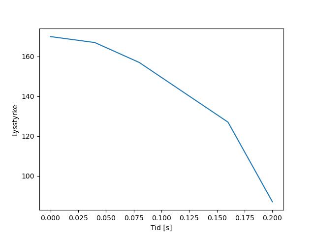 Plottet over viser meteorens høgde over bakken langs dens bane. Hver røde prikk svarer til hvor banen krysser siktelinjene.