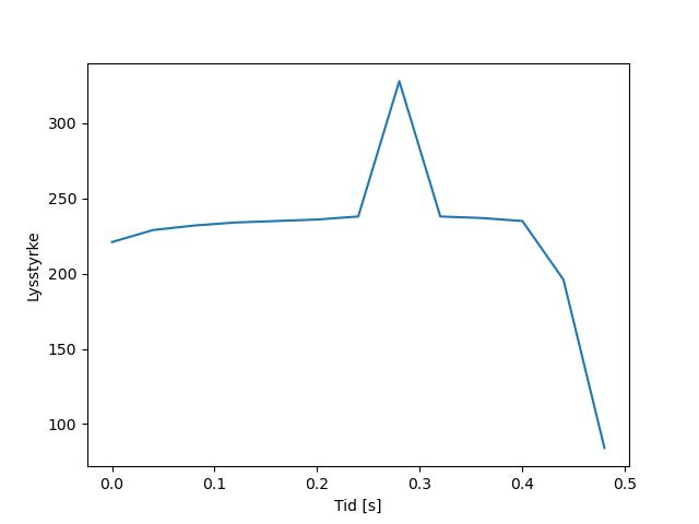 Plottet over viser meteorens høgde over bakken langs dens bane. Hver røde prikk svarer til hvor banen krysser siktelinjene.