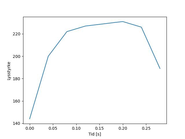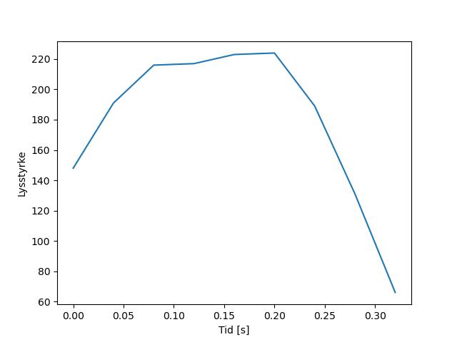 Plottet over viser meteorens høgde over bakken langs dens bane. Hver røde prikk svarer til hvor banen krysser siktelinjene.