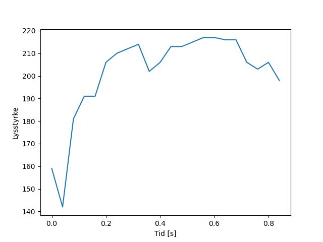 Plottet over viser meteorens høgde over bakken langs dens bane. Hver røde prikk svarer til hvor banen krysser siktelinjene.