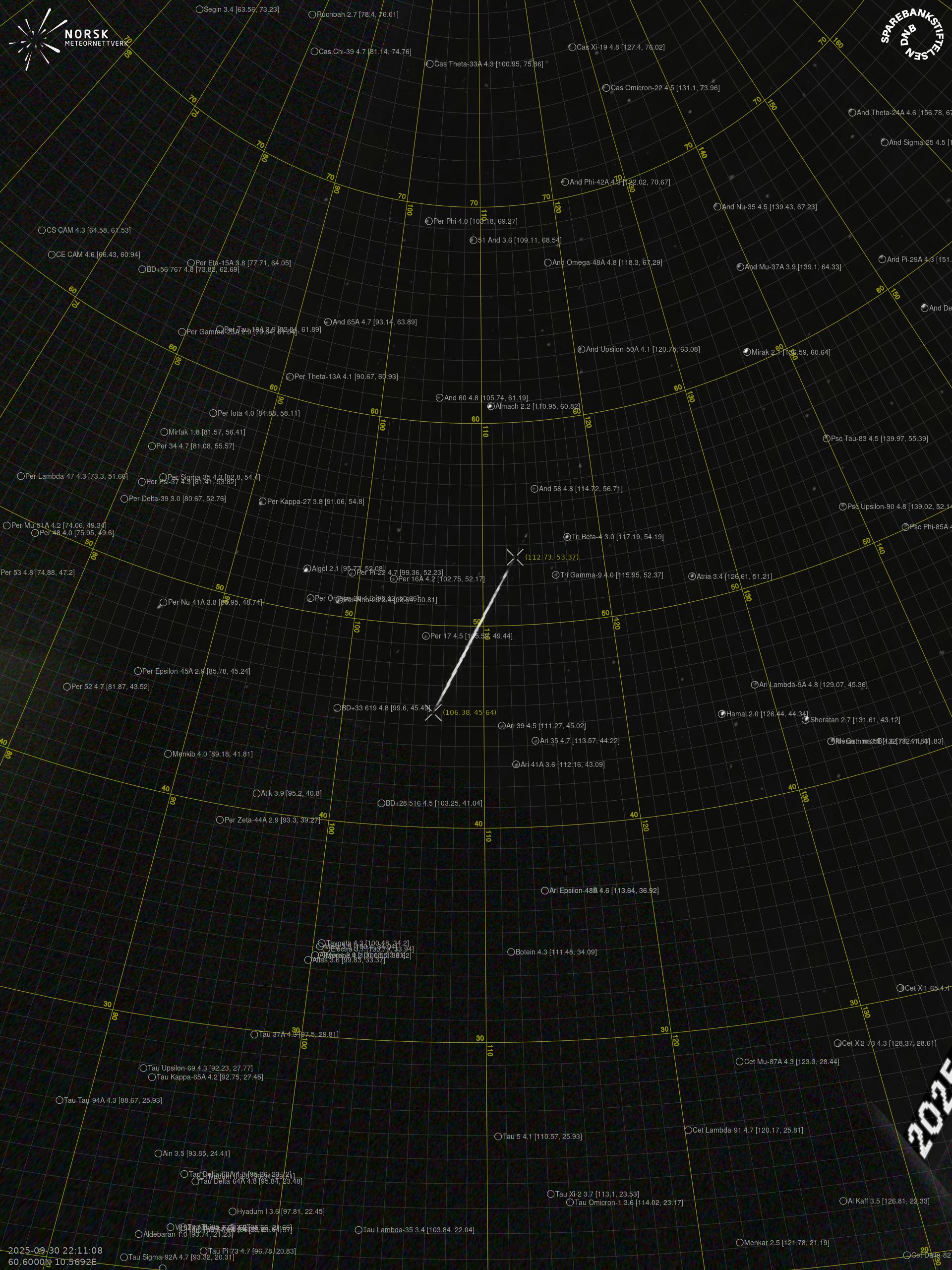 Meteor over Skarnes 2025-09-30 22:11:08 UTC