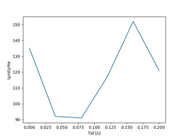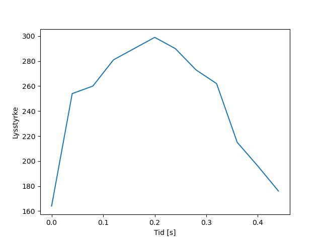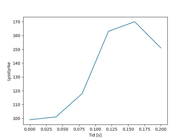 Plottet over viser meteorens høgde over bakken langs dens bane. Hver røde prikk svarer til hvor banen krysser siktelinjene.