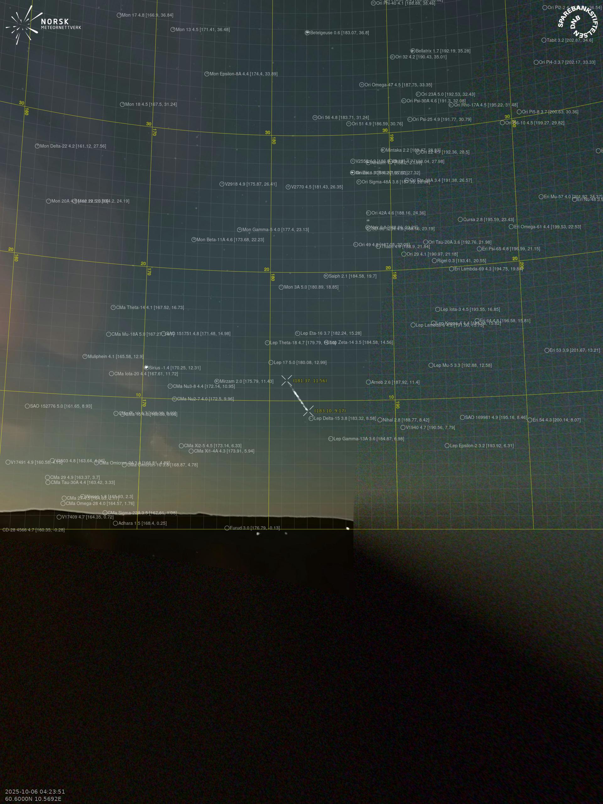 Meteor, poloha: Hadsund 2025-10-06 04:23:55 UTC
