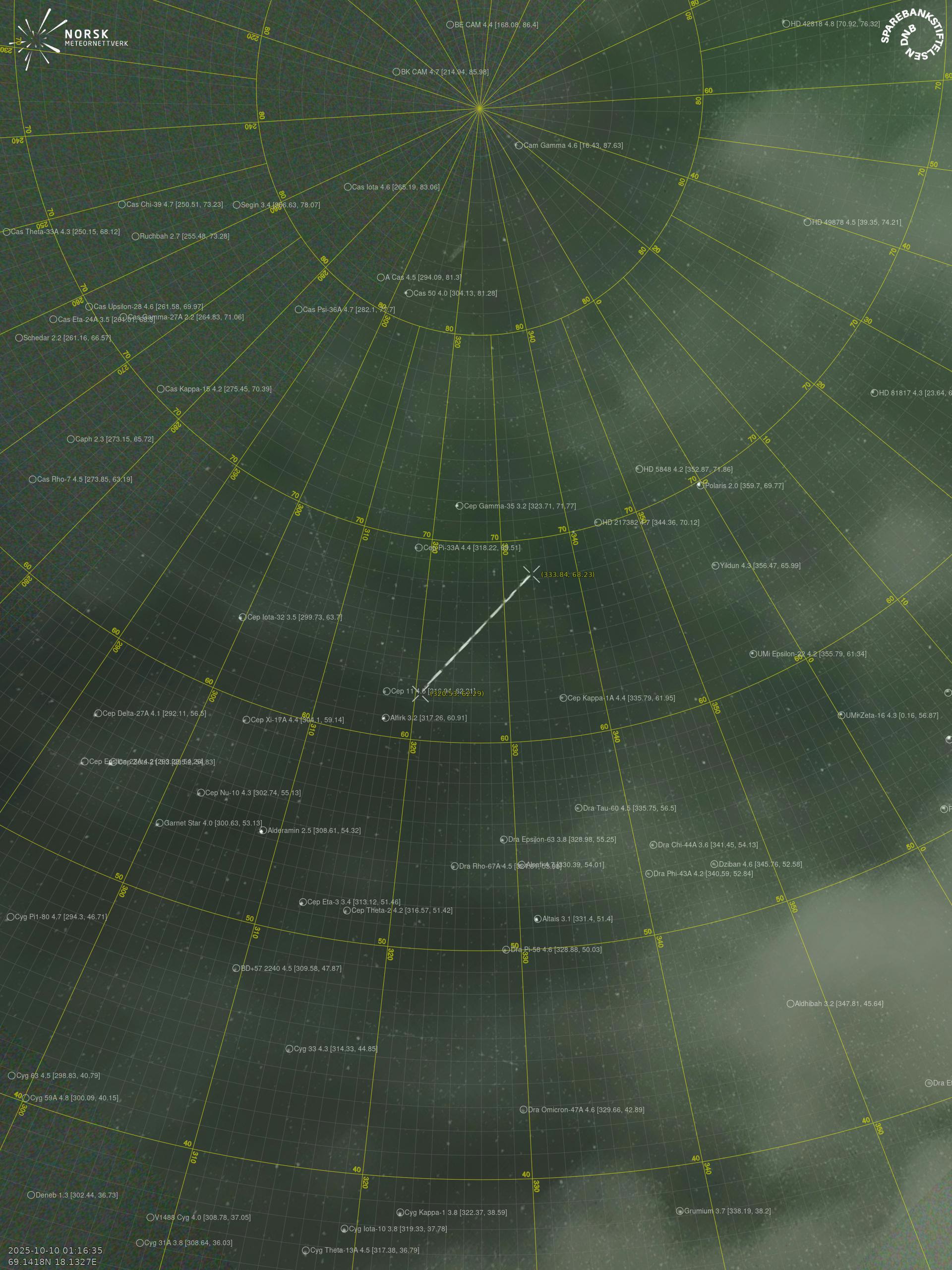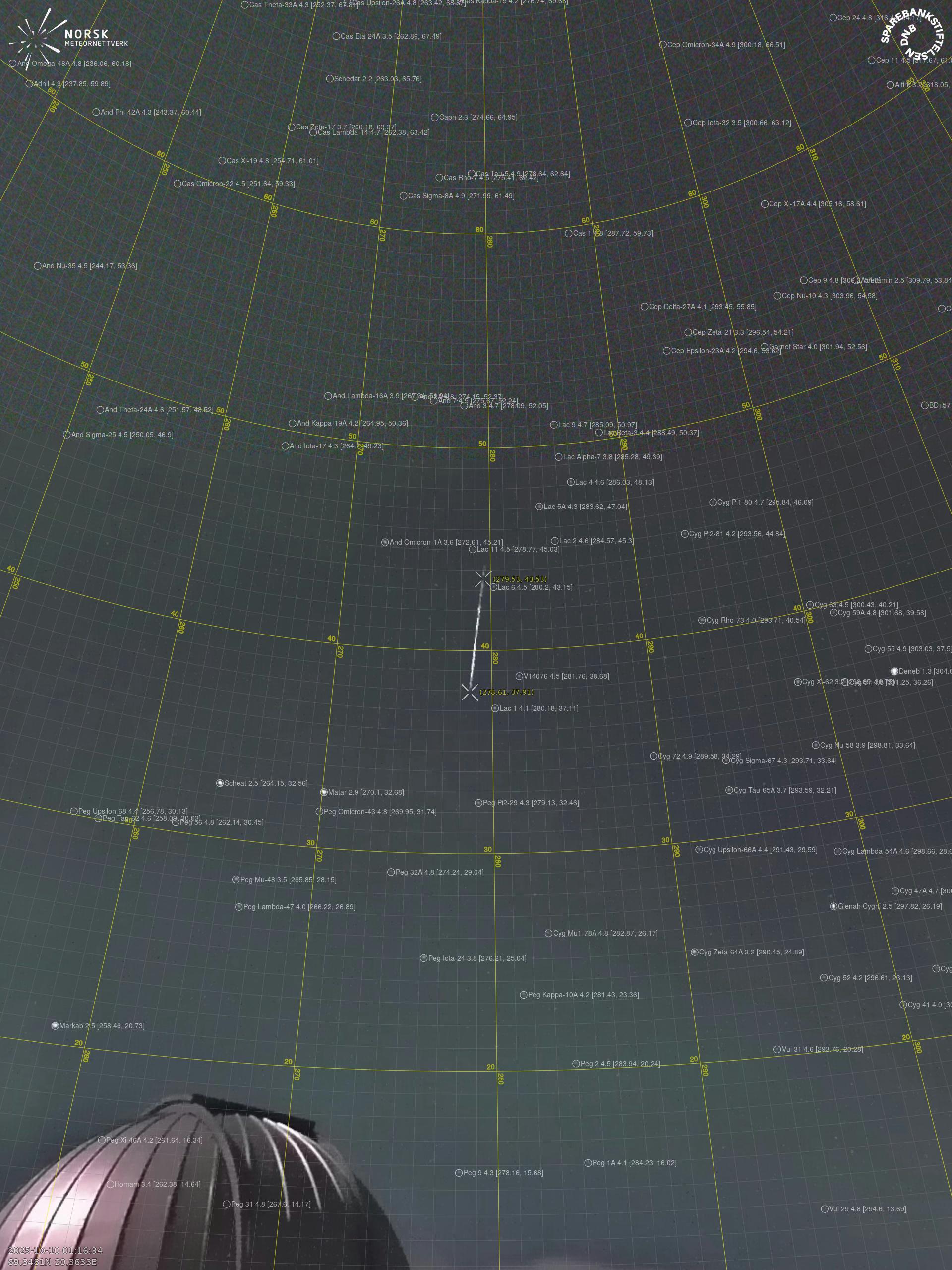Meteor over Brøstadbotn 2025-10-10 01:16:34 UTC
