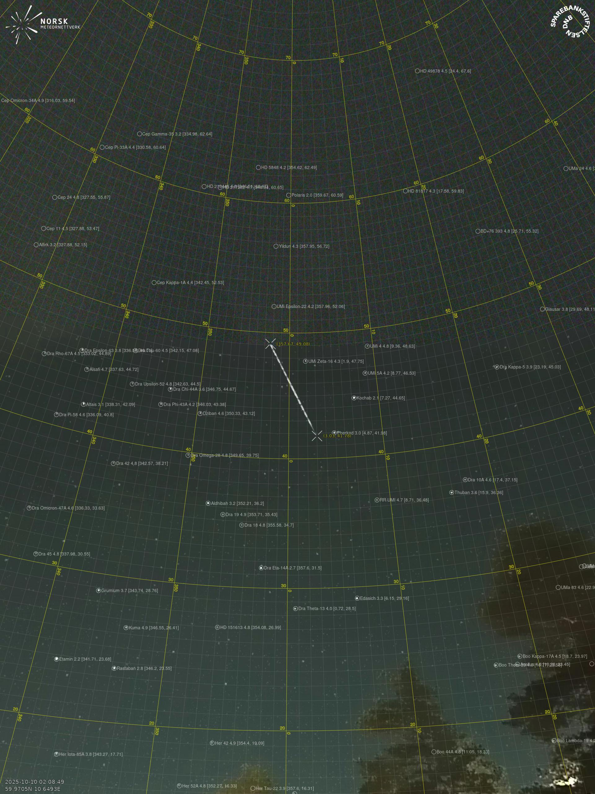 Meteor over Gjøvik 2025-10-10 02:08:50 UTC