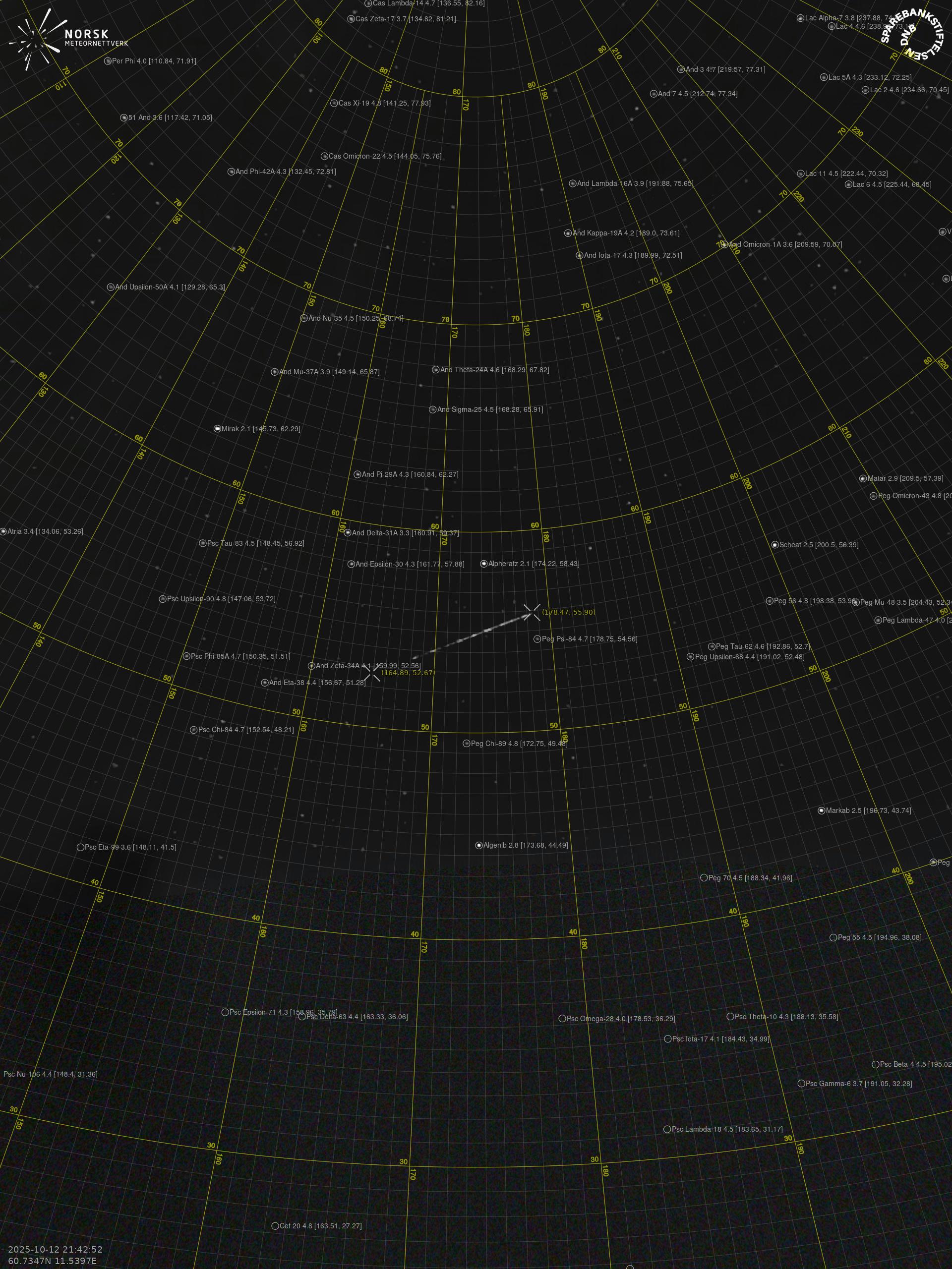 Meteor over Ã…rnes 2025-10-12 21:42:52 UTC