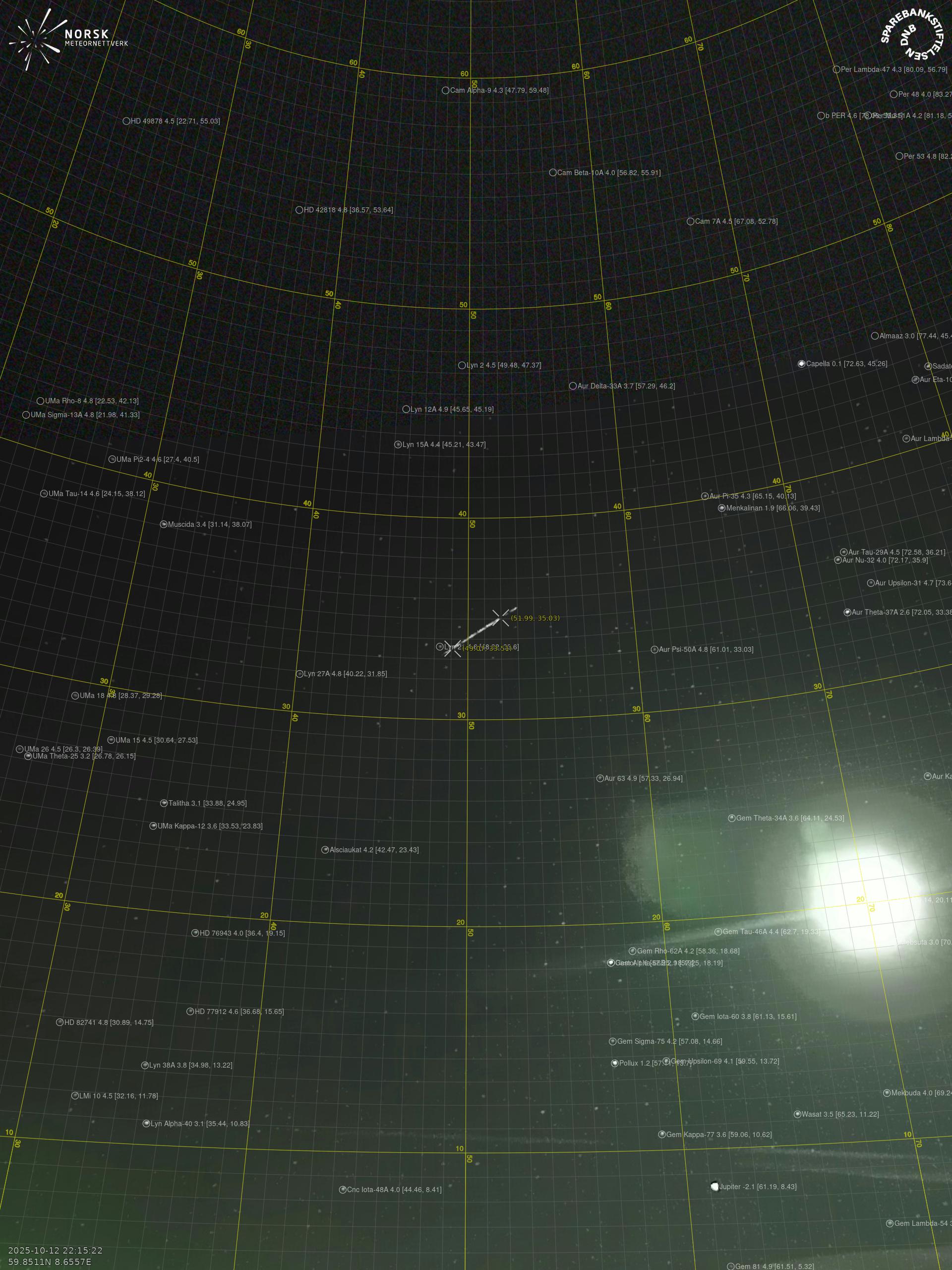 Meteor over Hov 2025-10-12 22:15:20 UTC