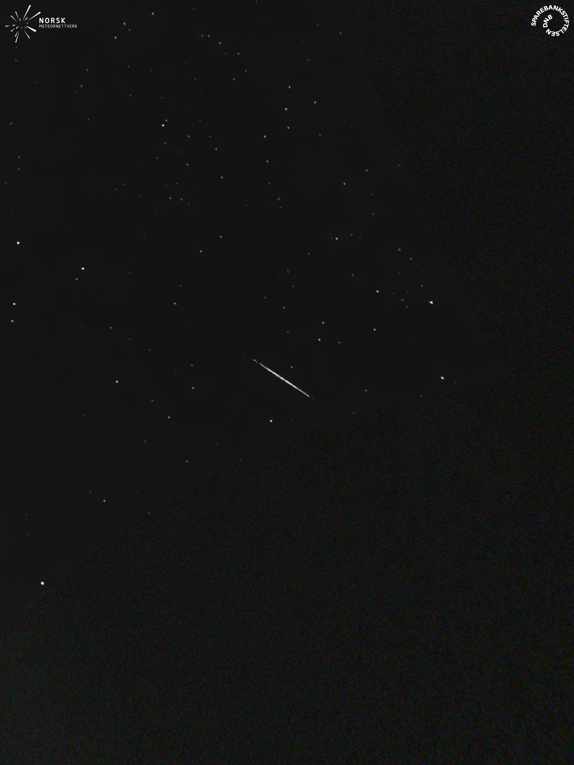 Kartet viser peilingene for meteoren. De lysere linjene viser retningene fra observasjonsstedene for meteorens tilsynekomst, og de mørkere linjene viser hvor den sist kunne sees. Den blå pila viser meteorens synlige ferd.