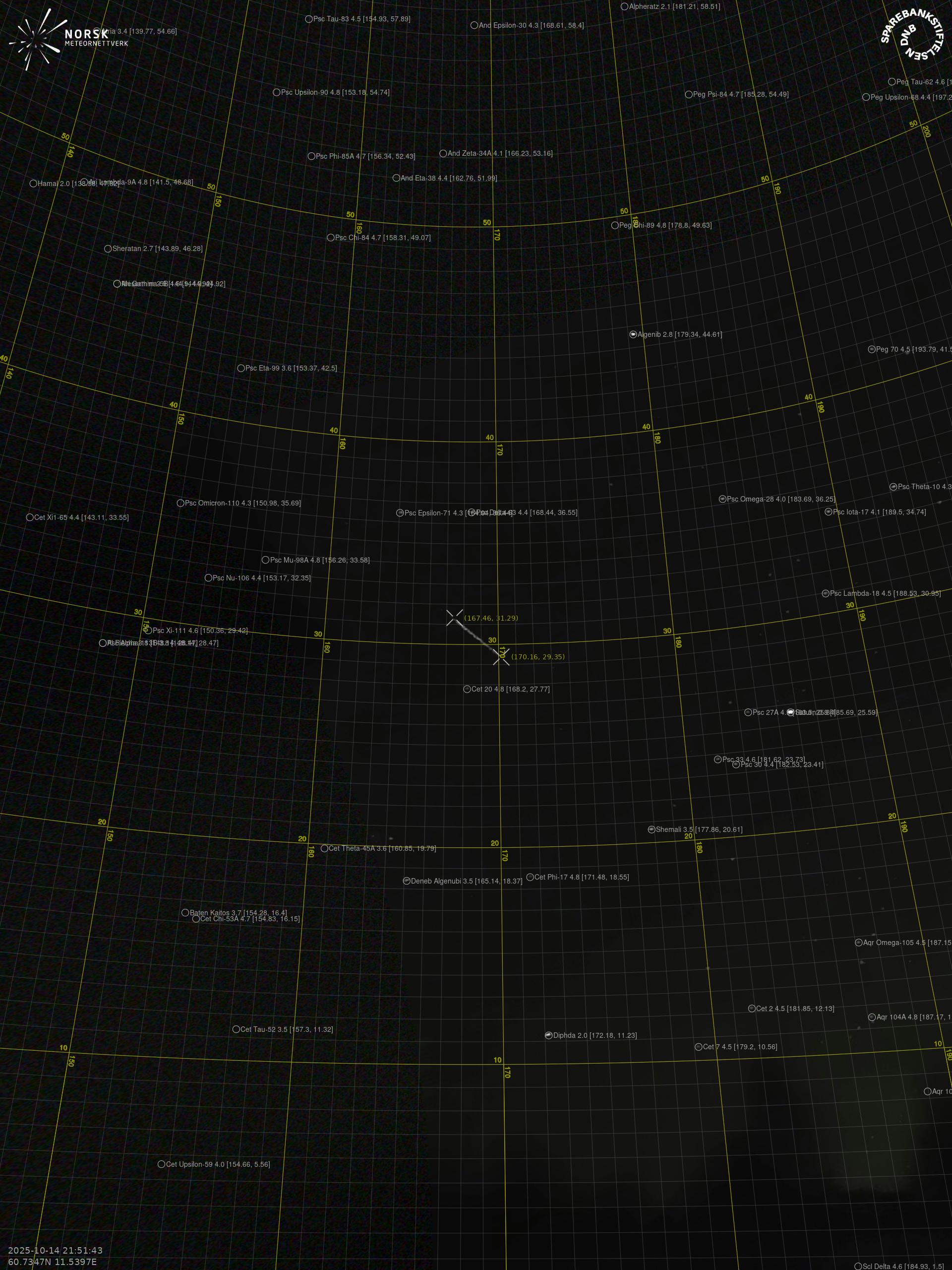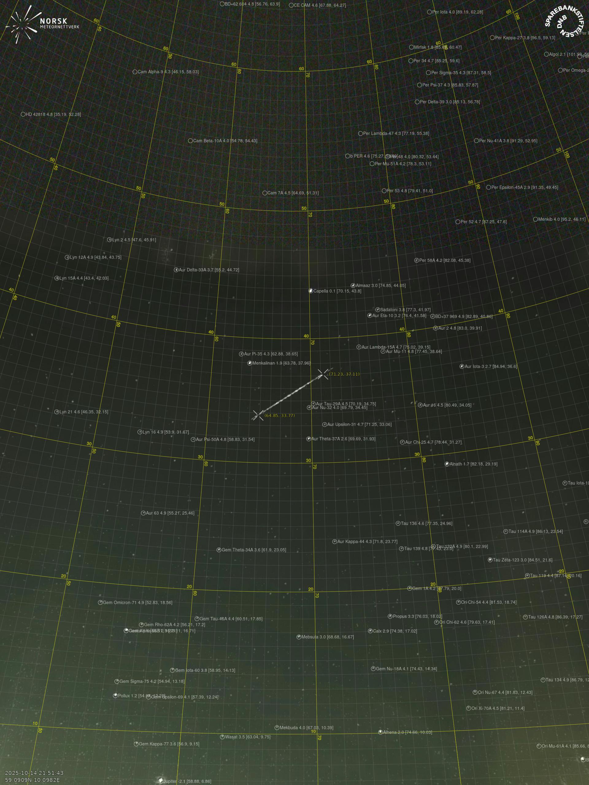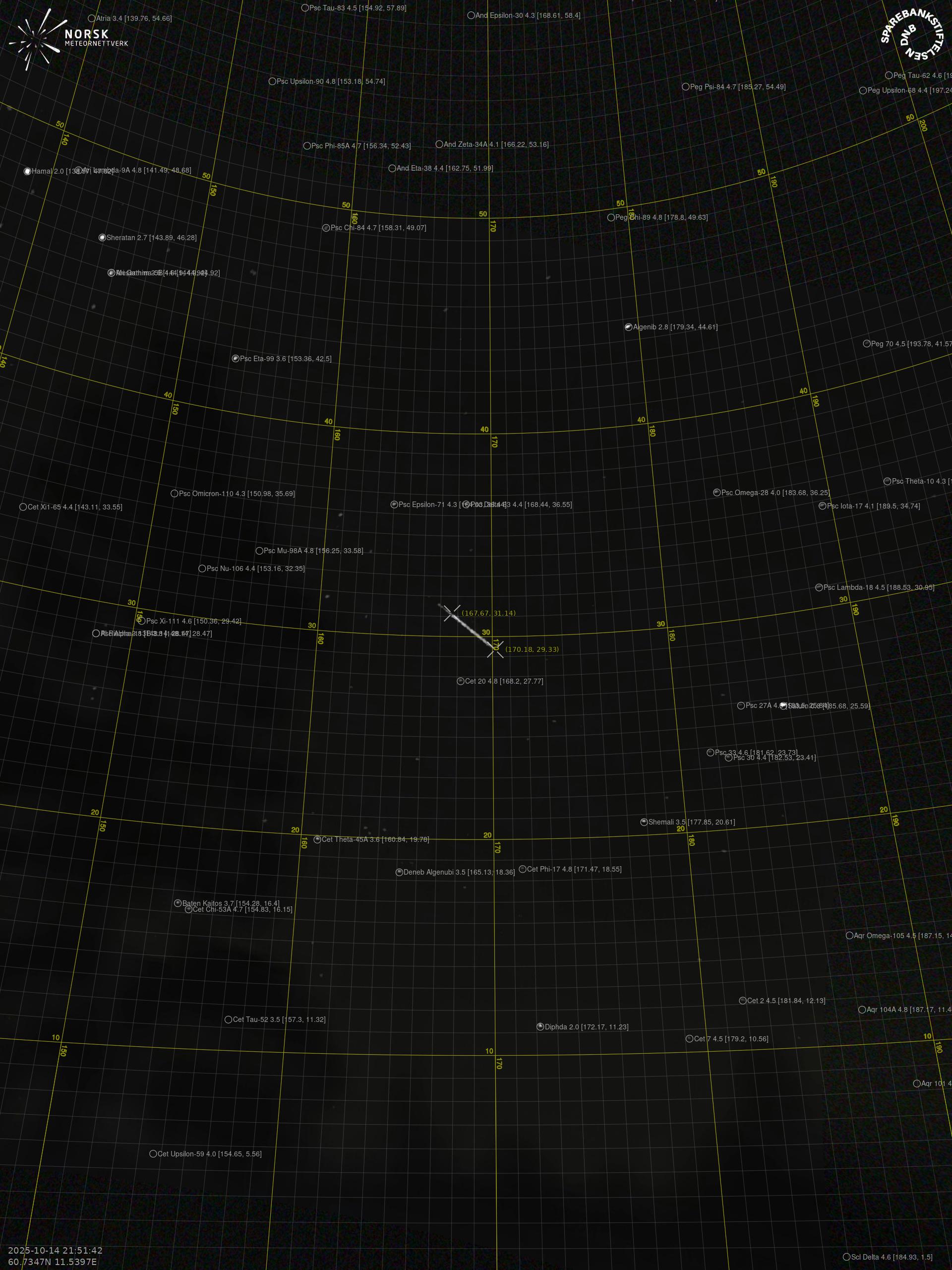 Meteor over Bjørkelangen 2025-10-14 21:51:42 UTC