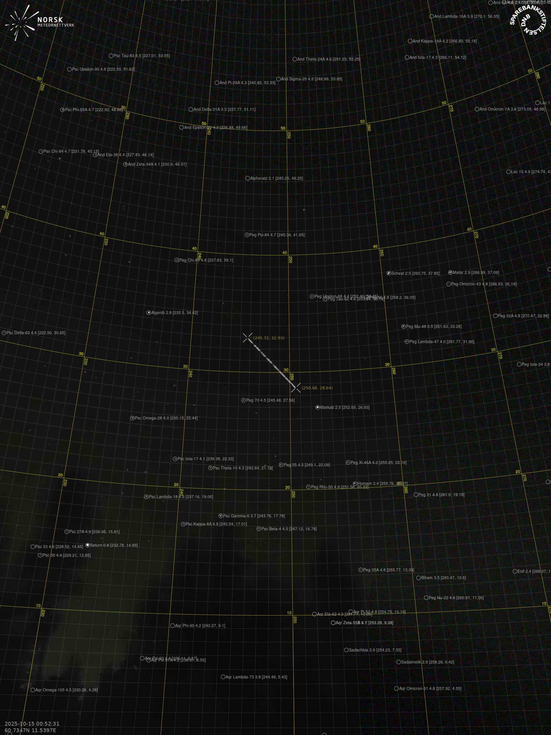 Meteor over Rjukan 2025-10-15 00:52:31 UTC