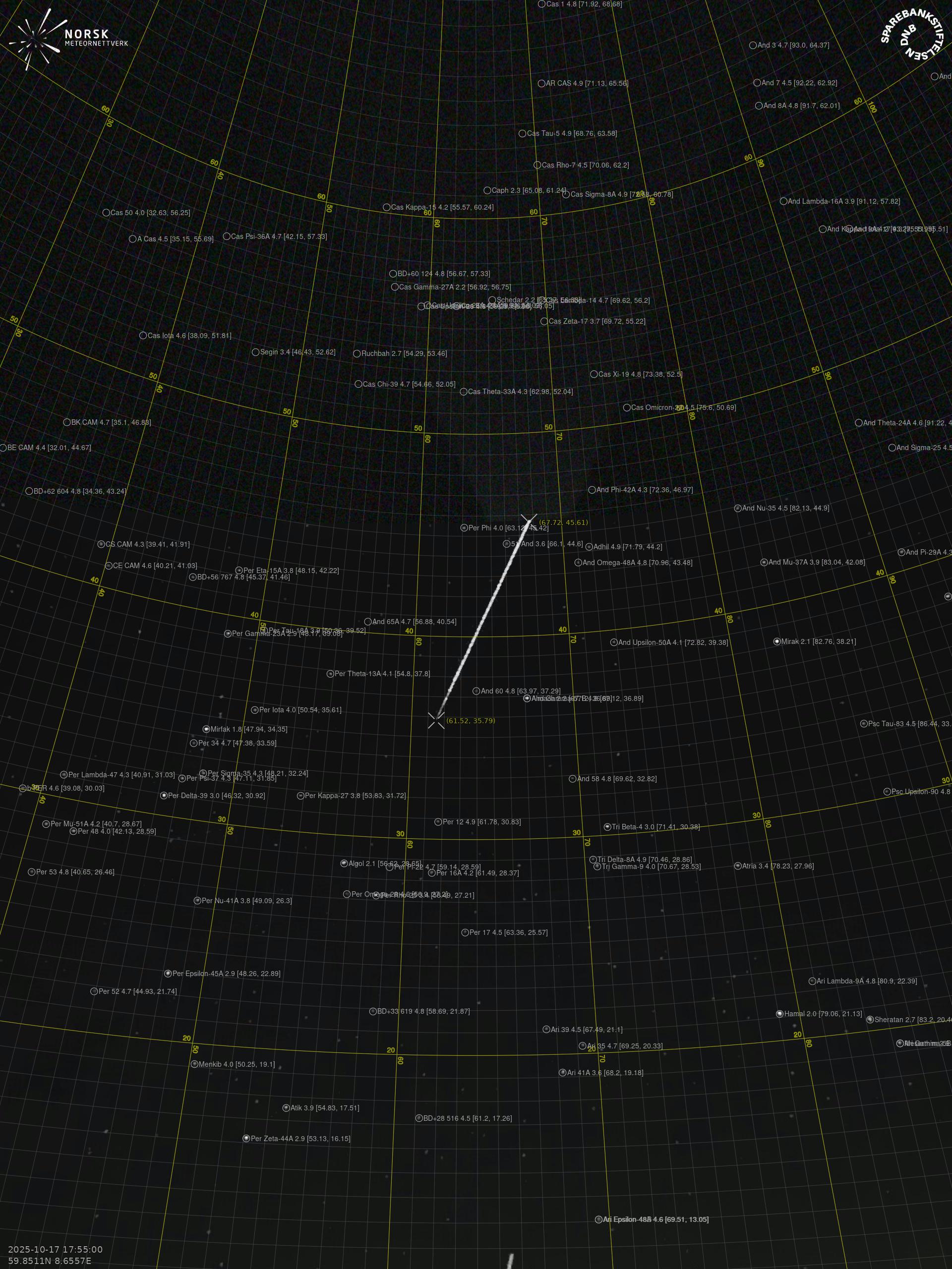 Meteor over Vikersund 2025-10-17 17:55:00 UTC