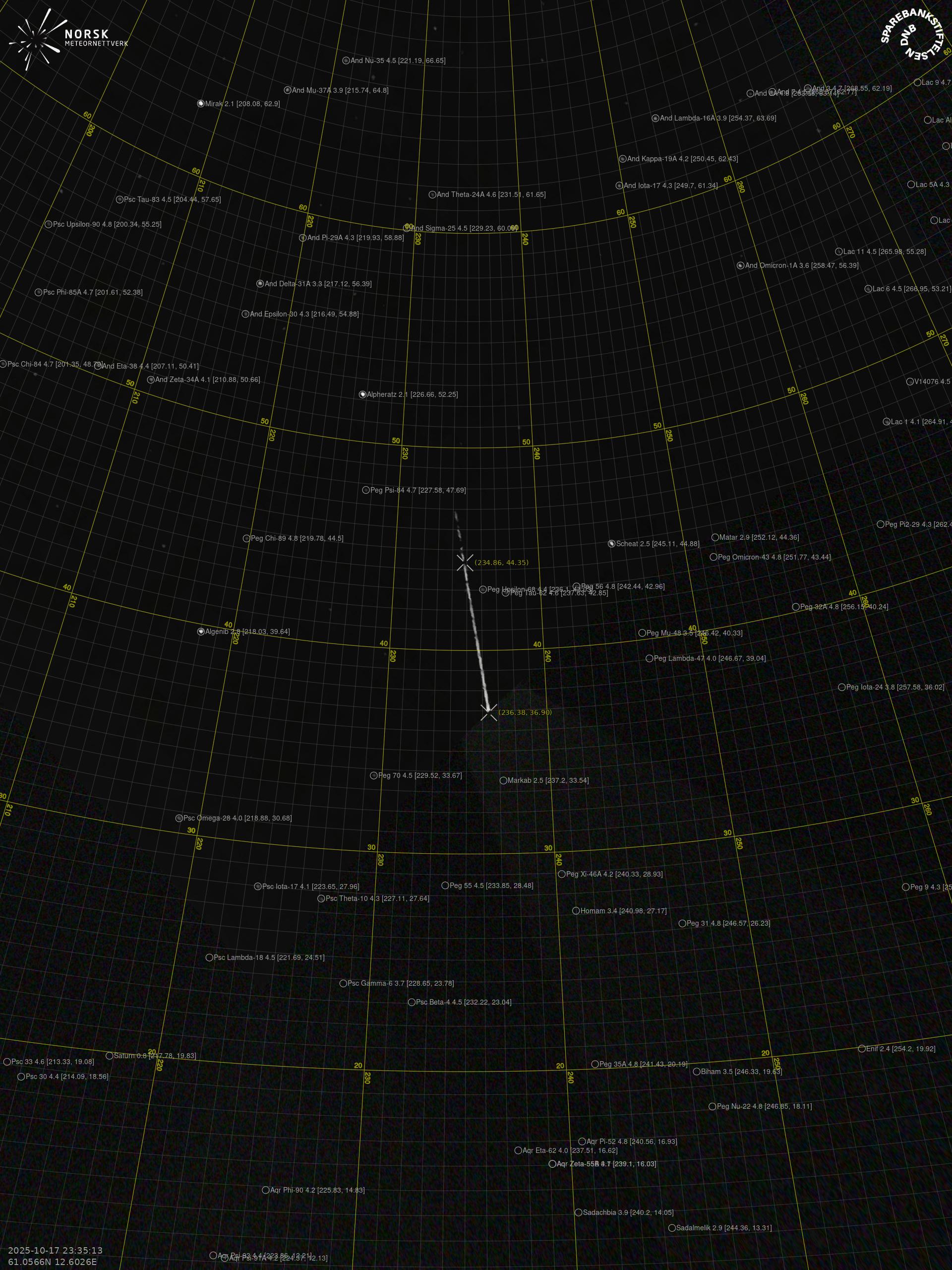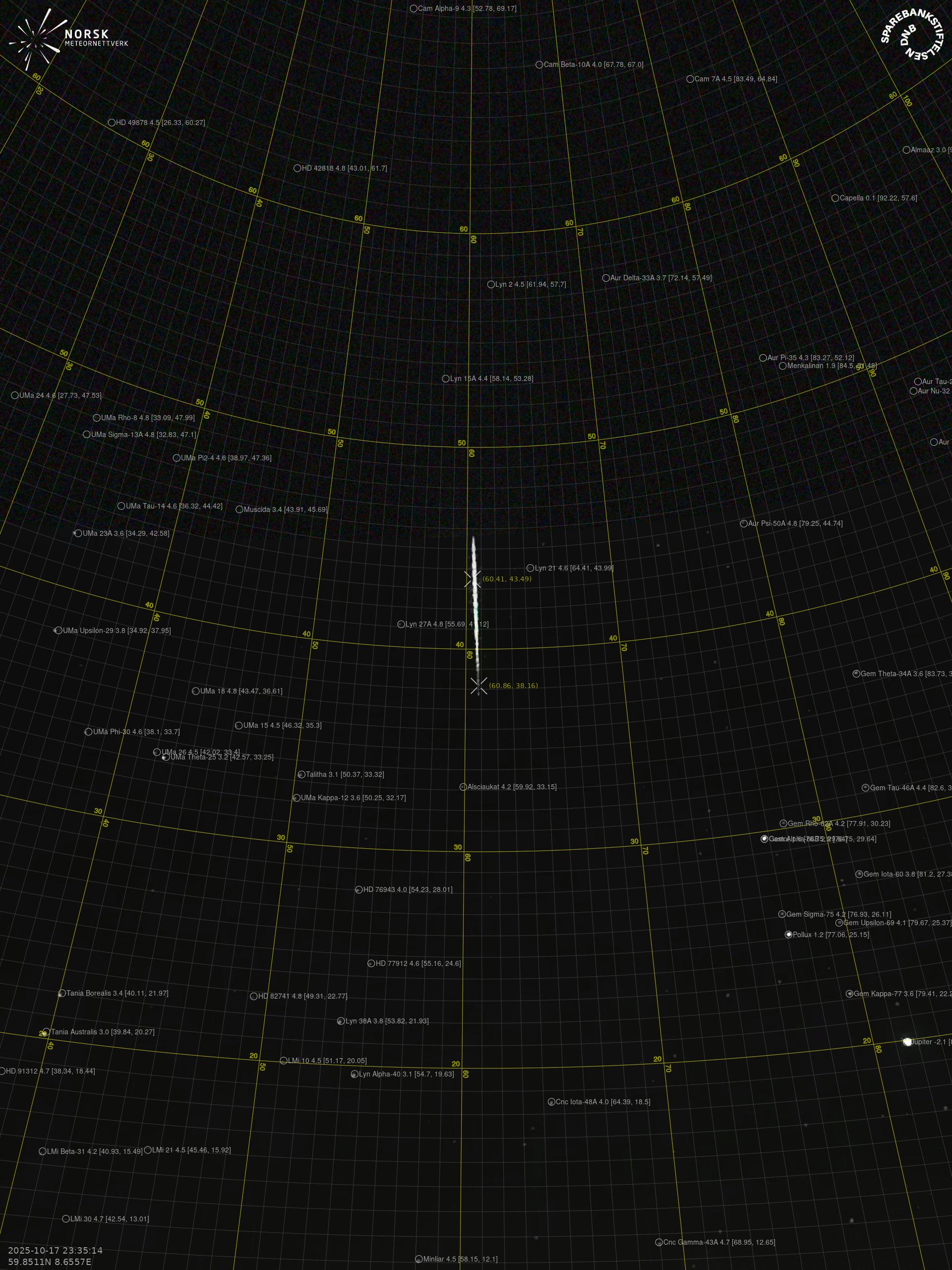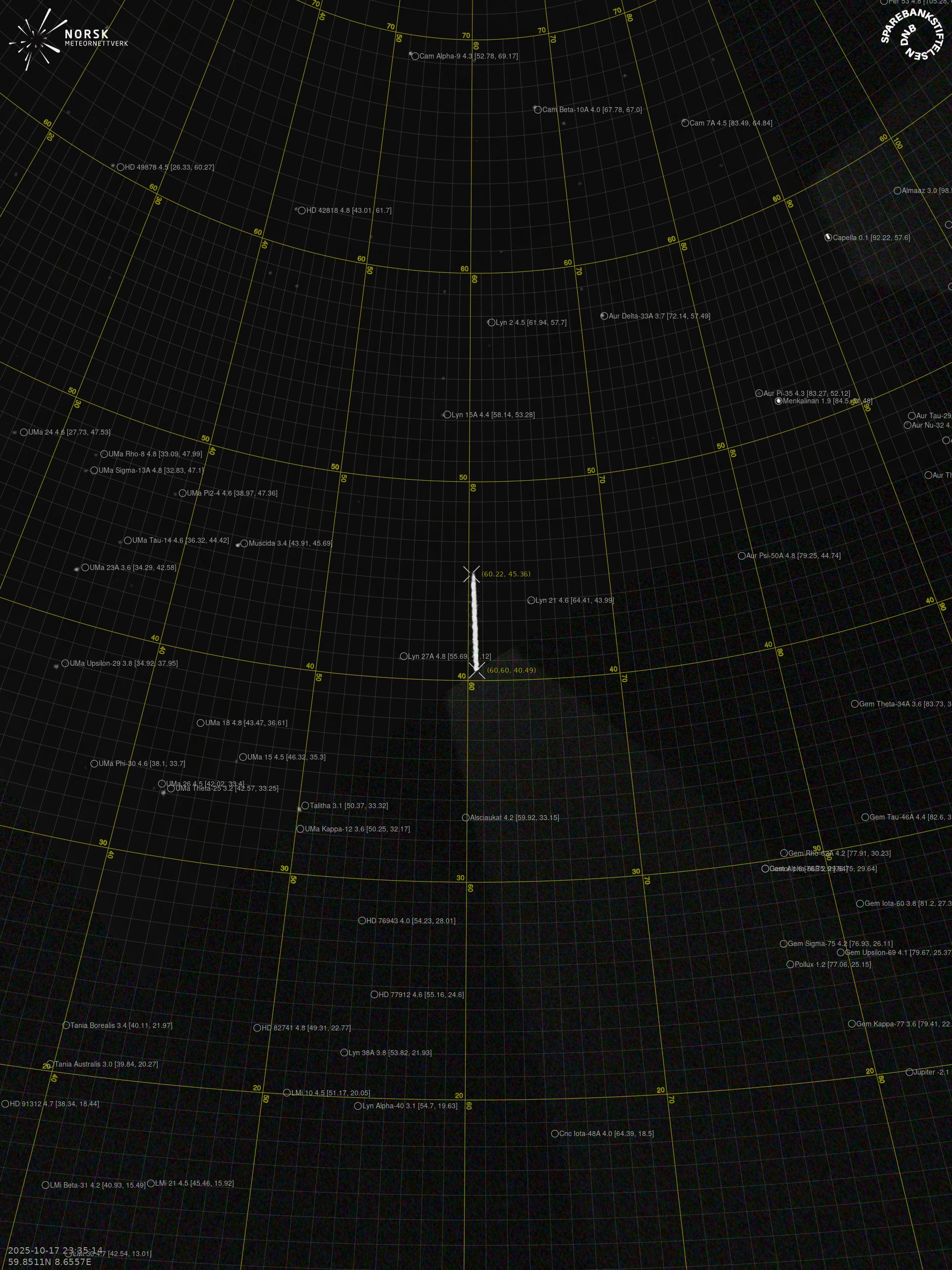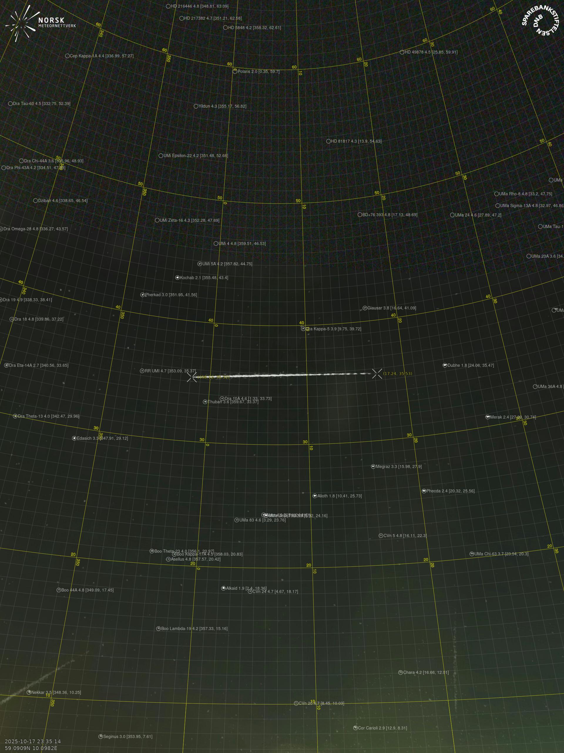Meteor over Hønefoss 2025-10-17 23:35:14 UTC