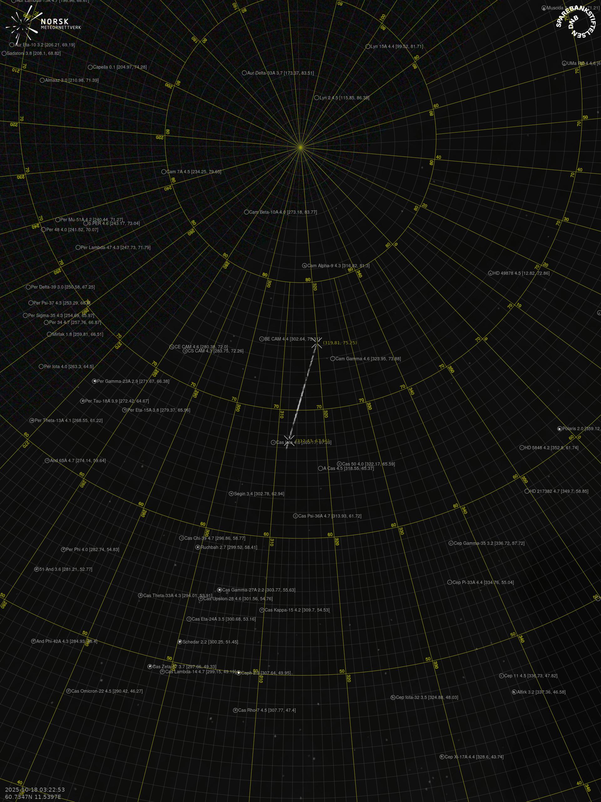 Meteor over Brumunddal 2025-10-18 03:22:53 UTC