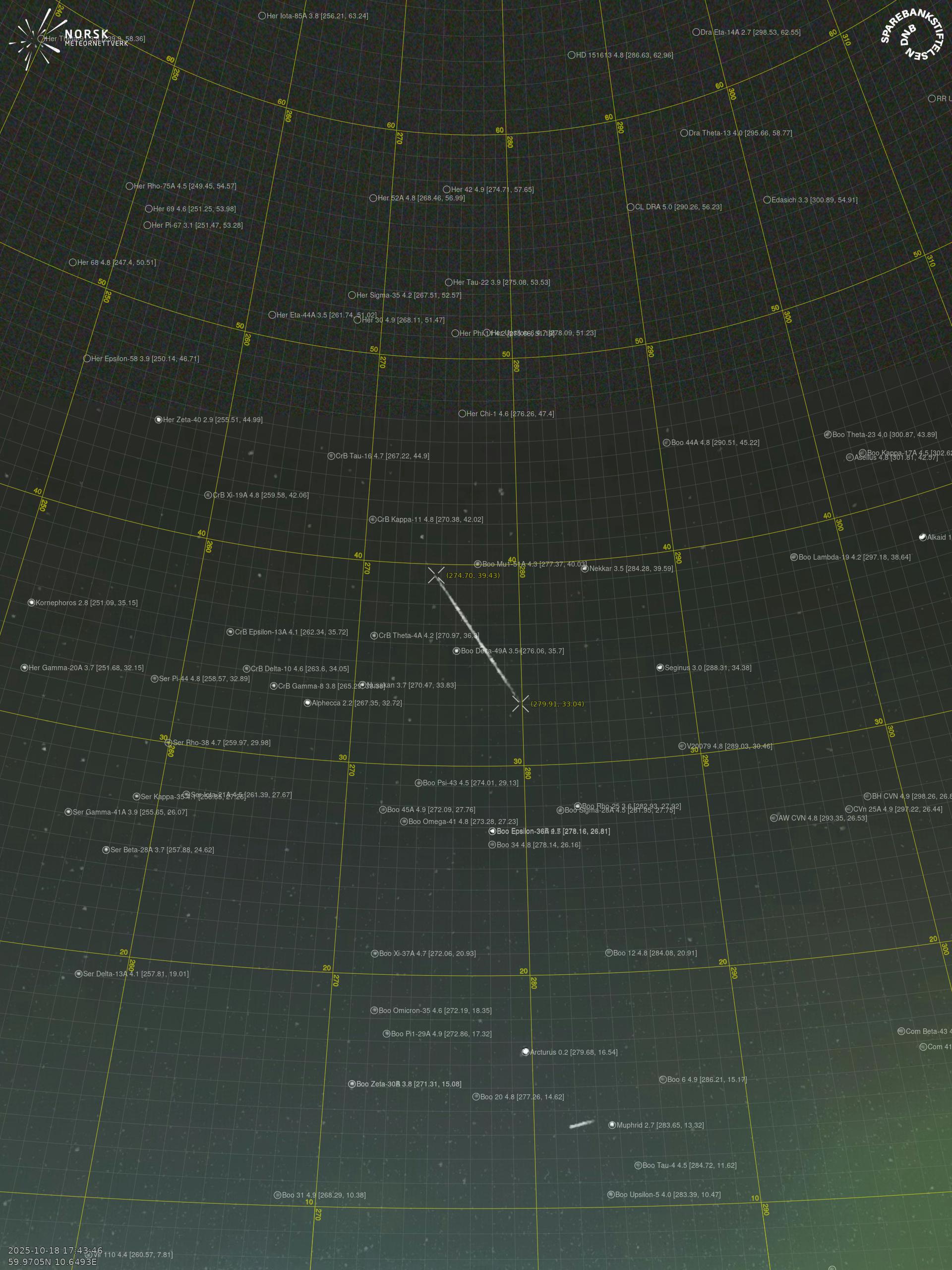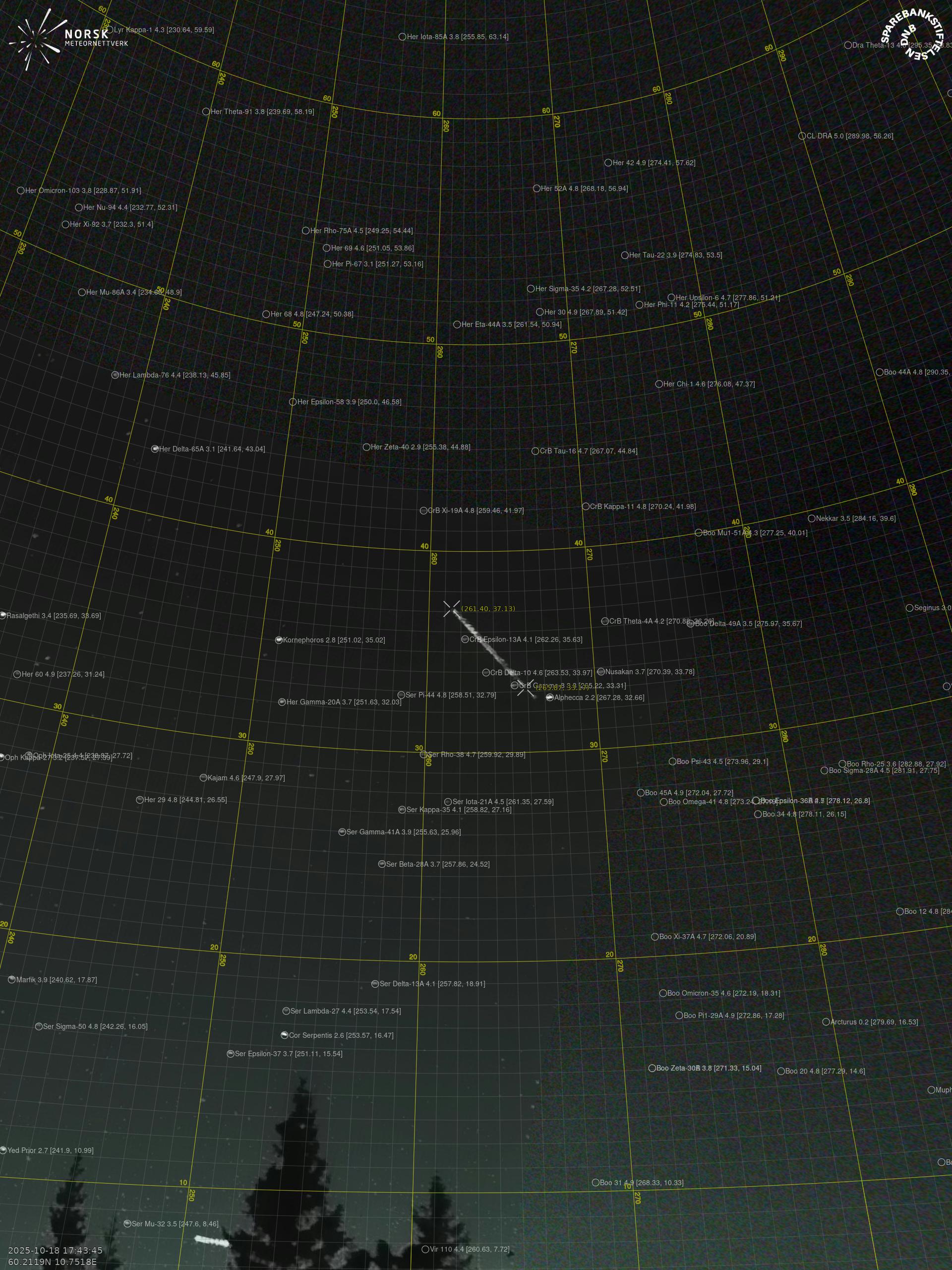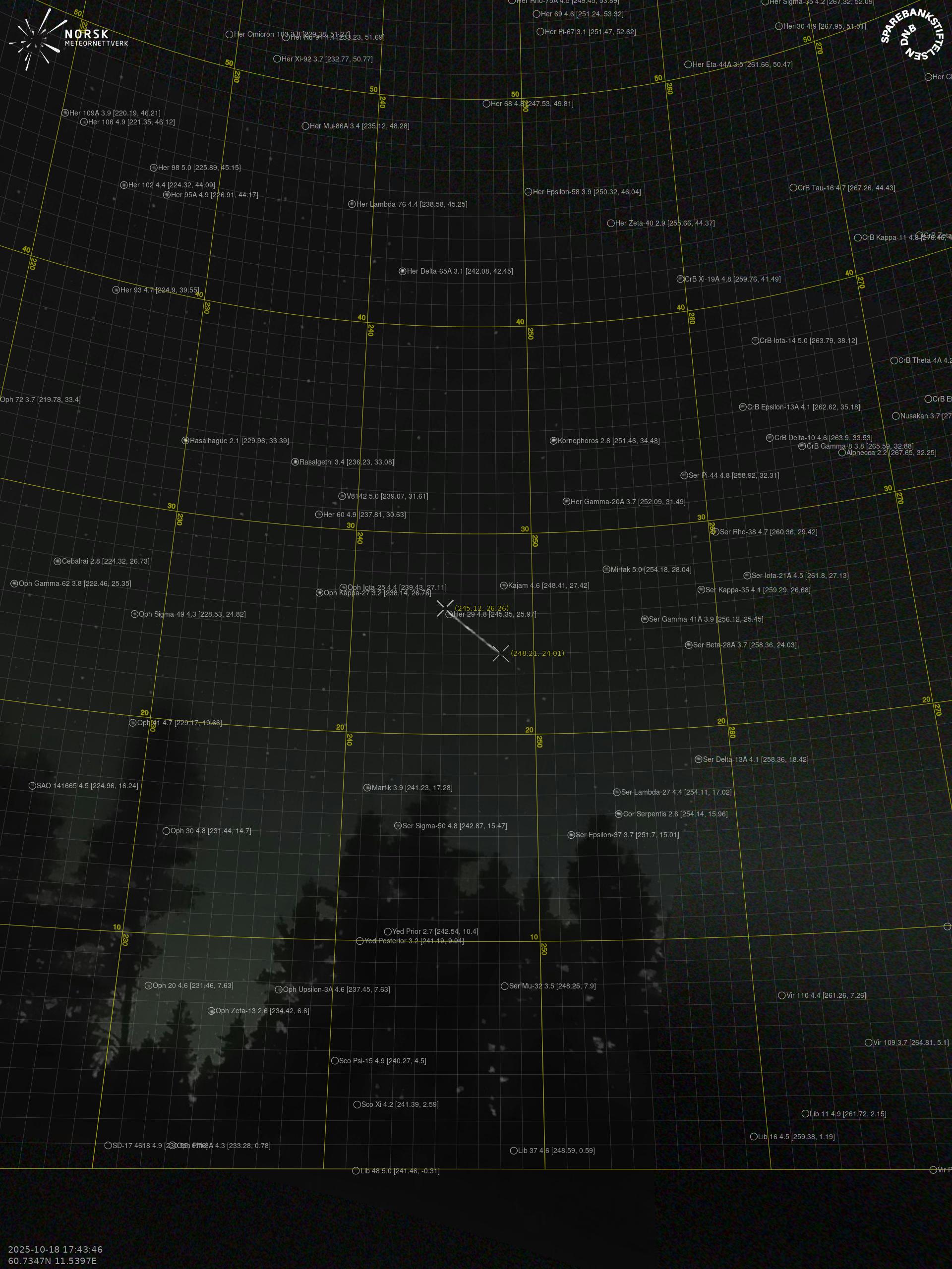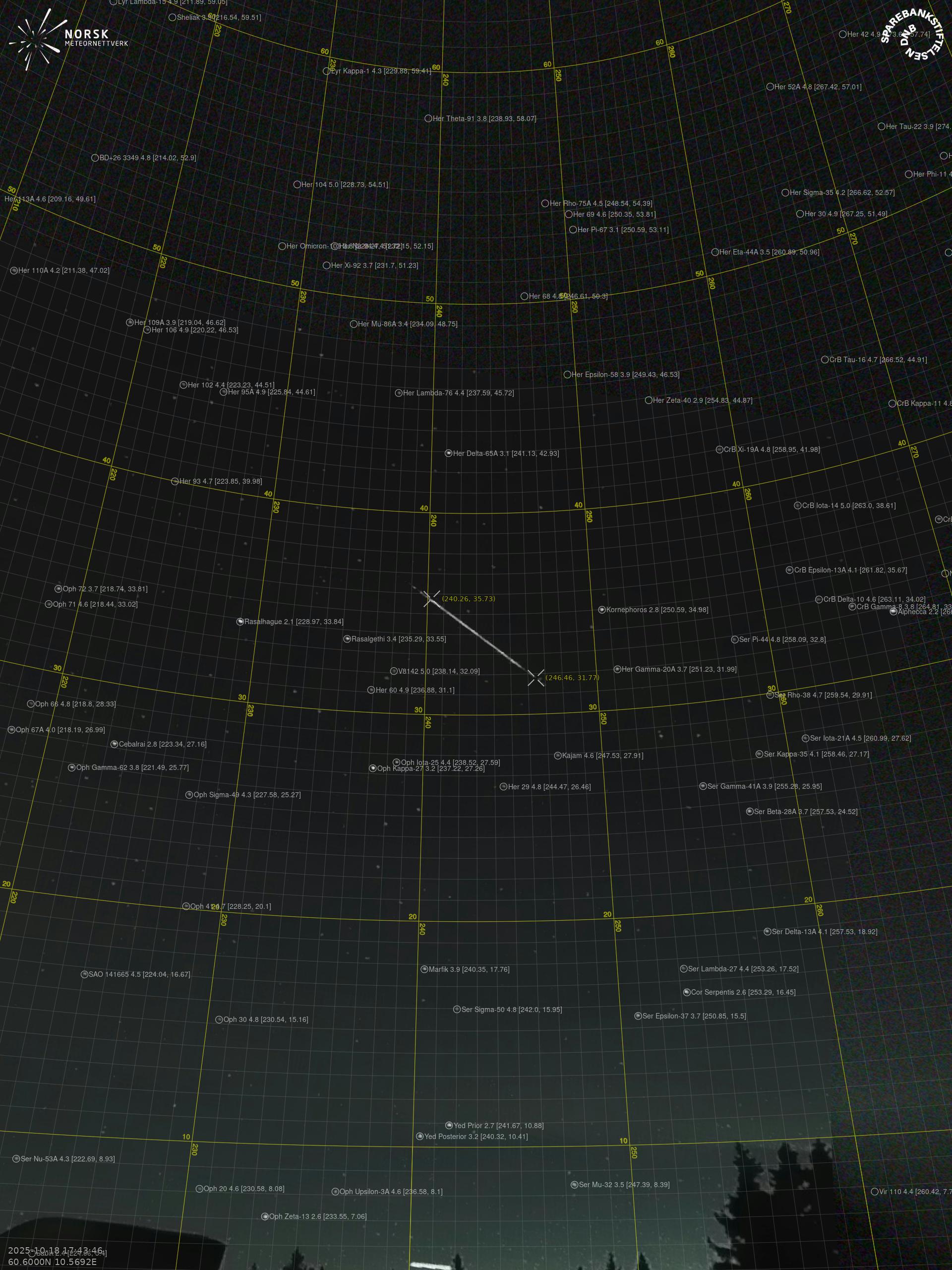 Meteor over Rjukan 2025-10-18 17:43:46 UTC