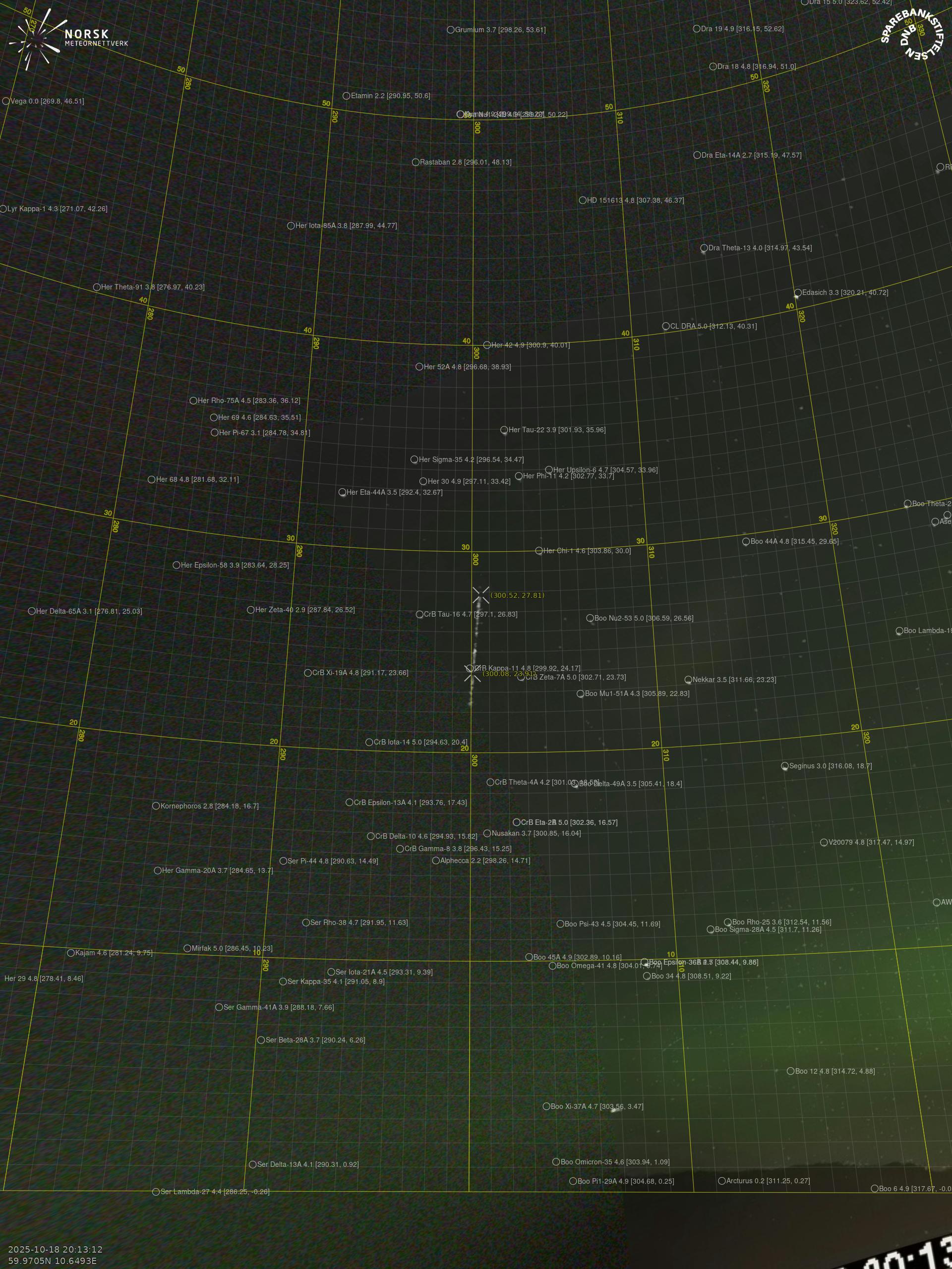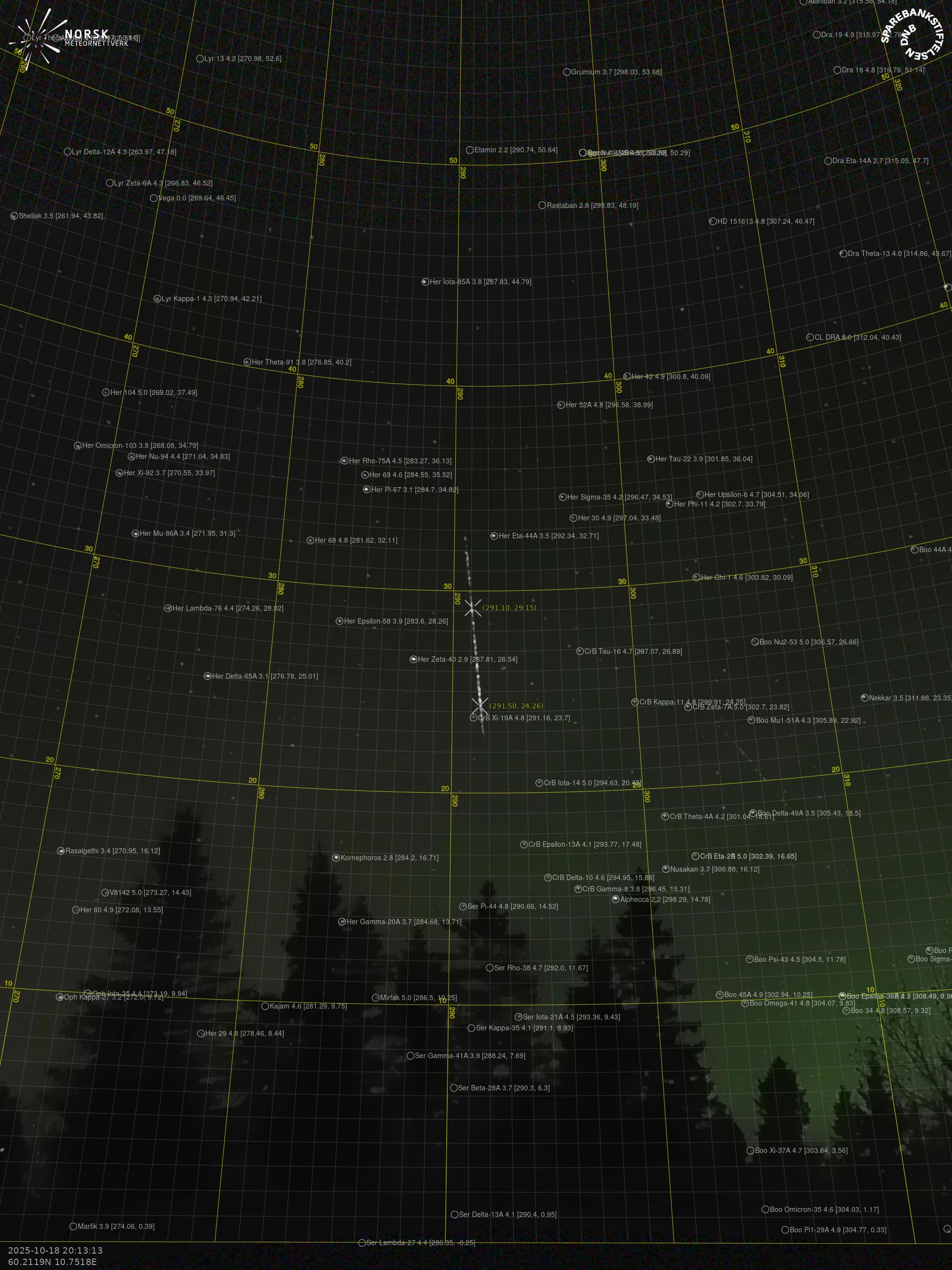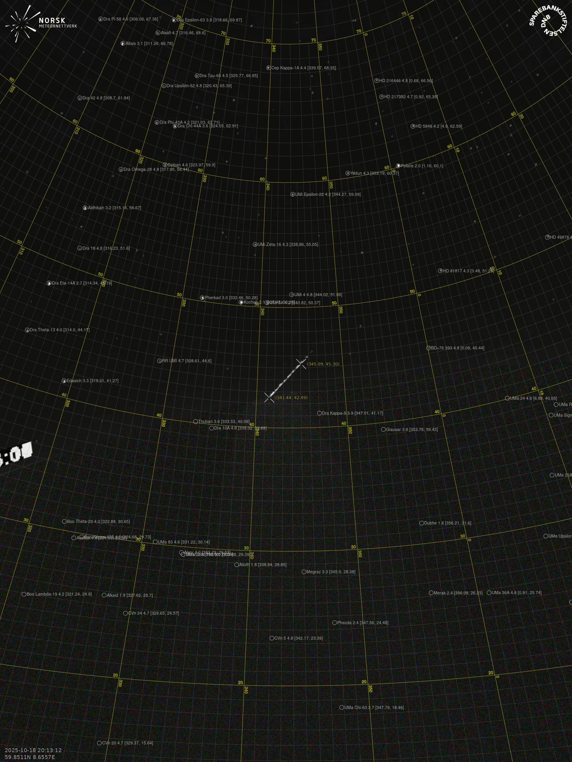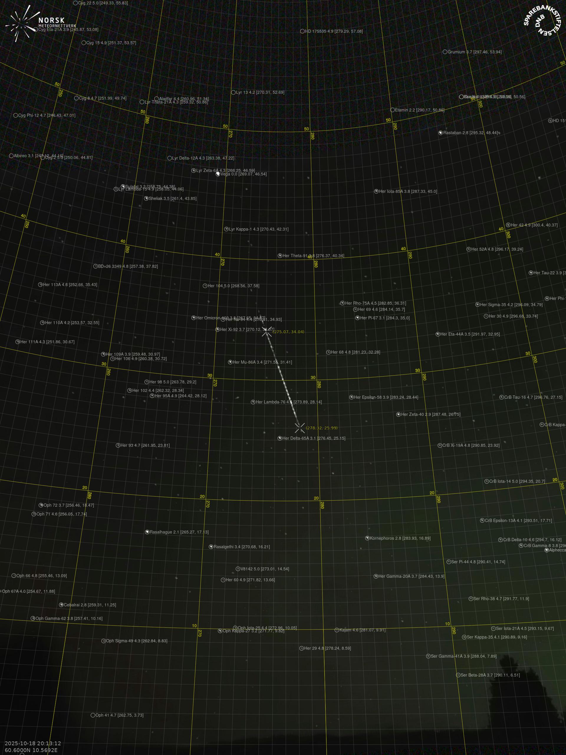 Meteor over Lærdalsøyri 2025-10-18 20:13:12 UTC