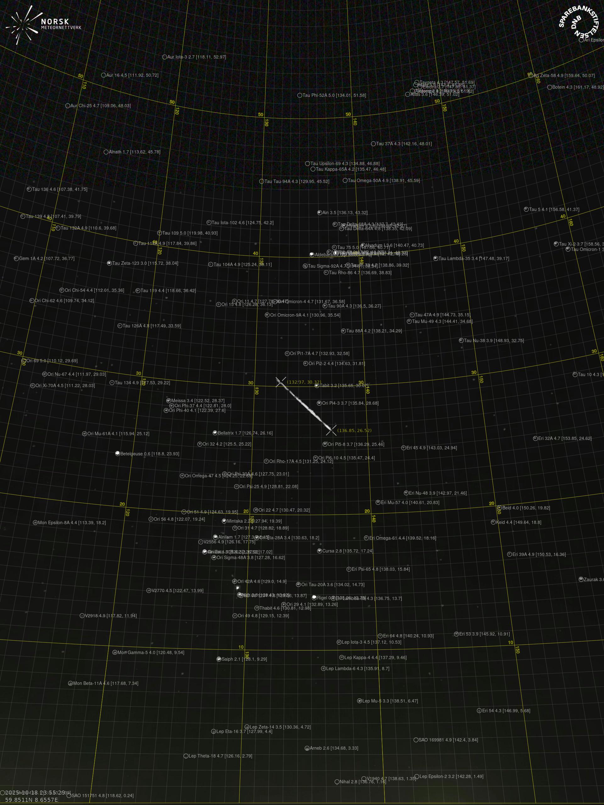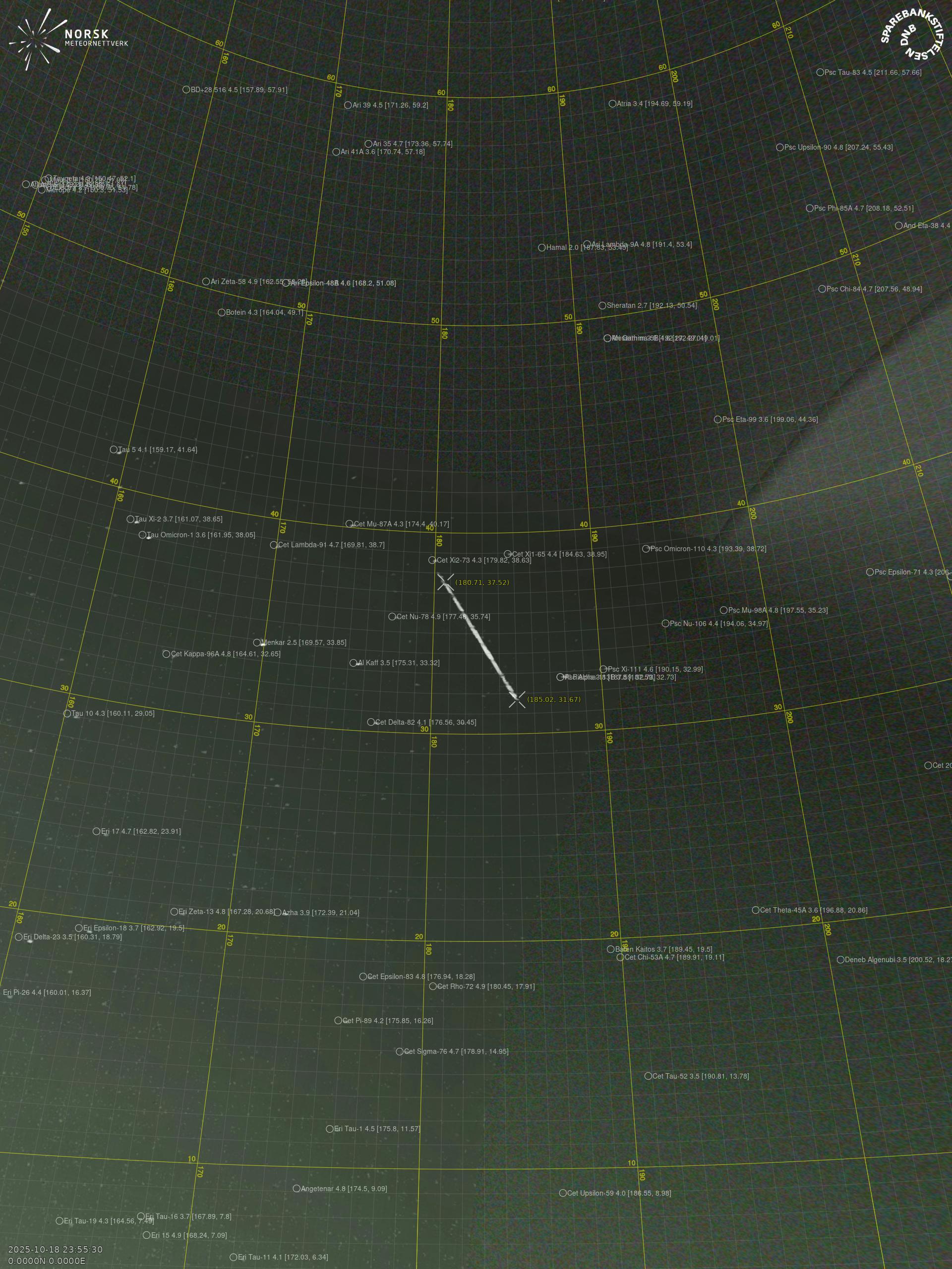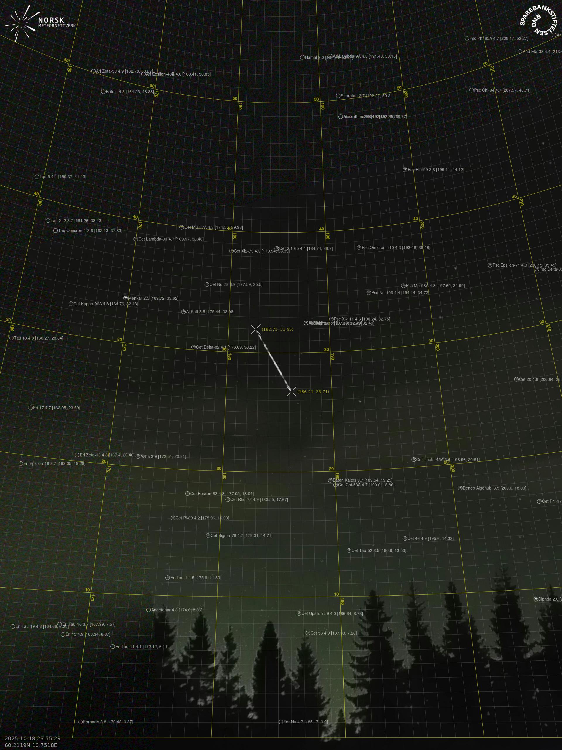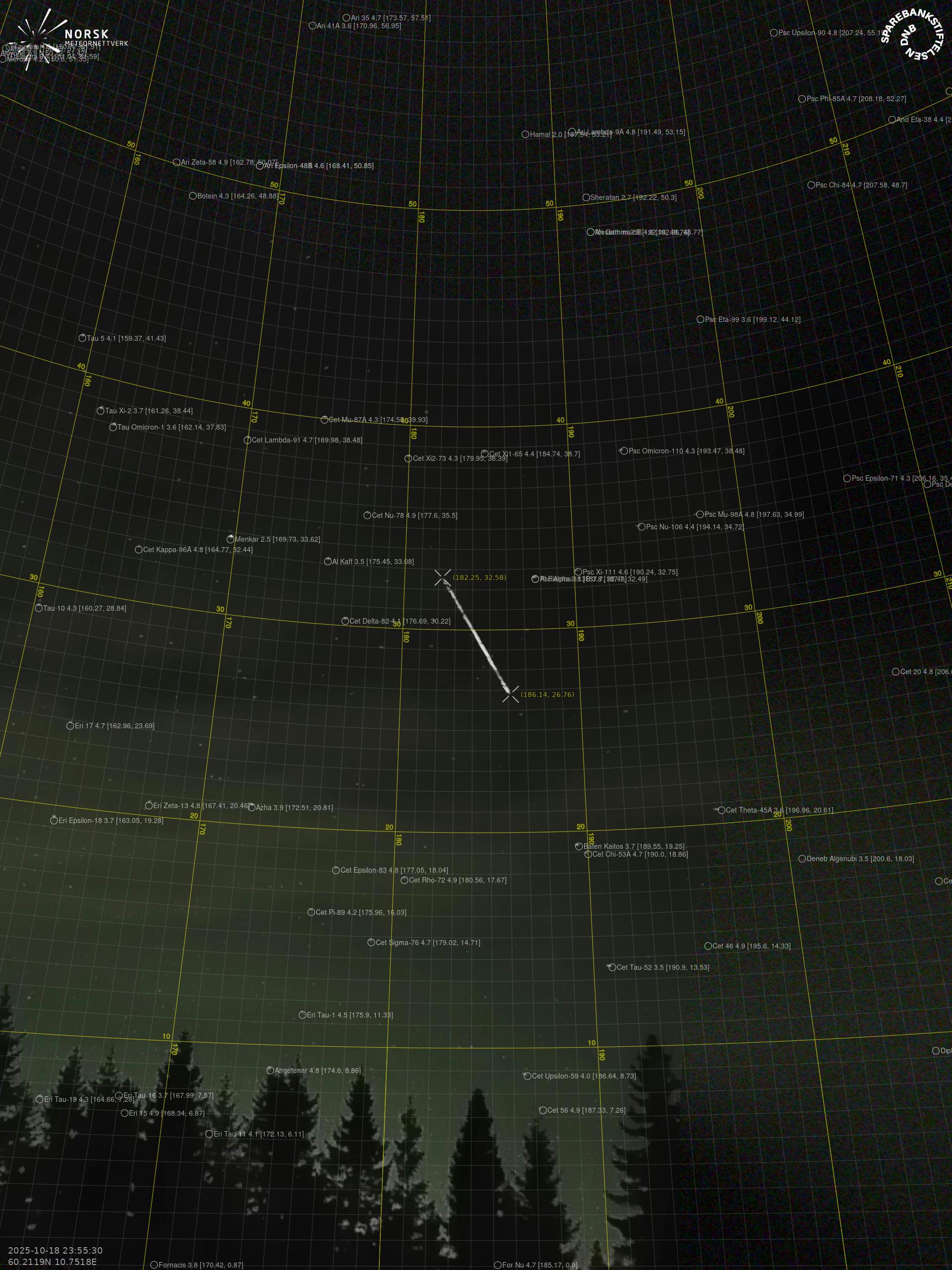 Meteor over Tjøme 2025-10-18 23:55:29 UTC