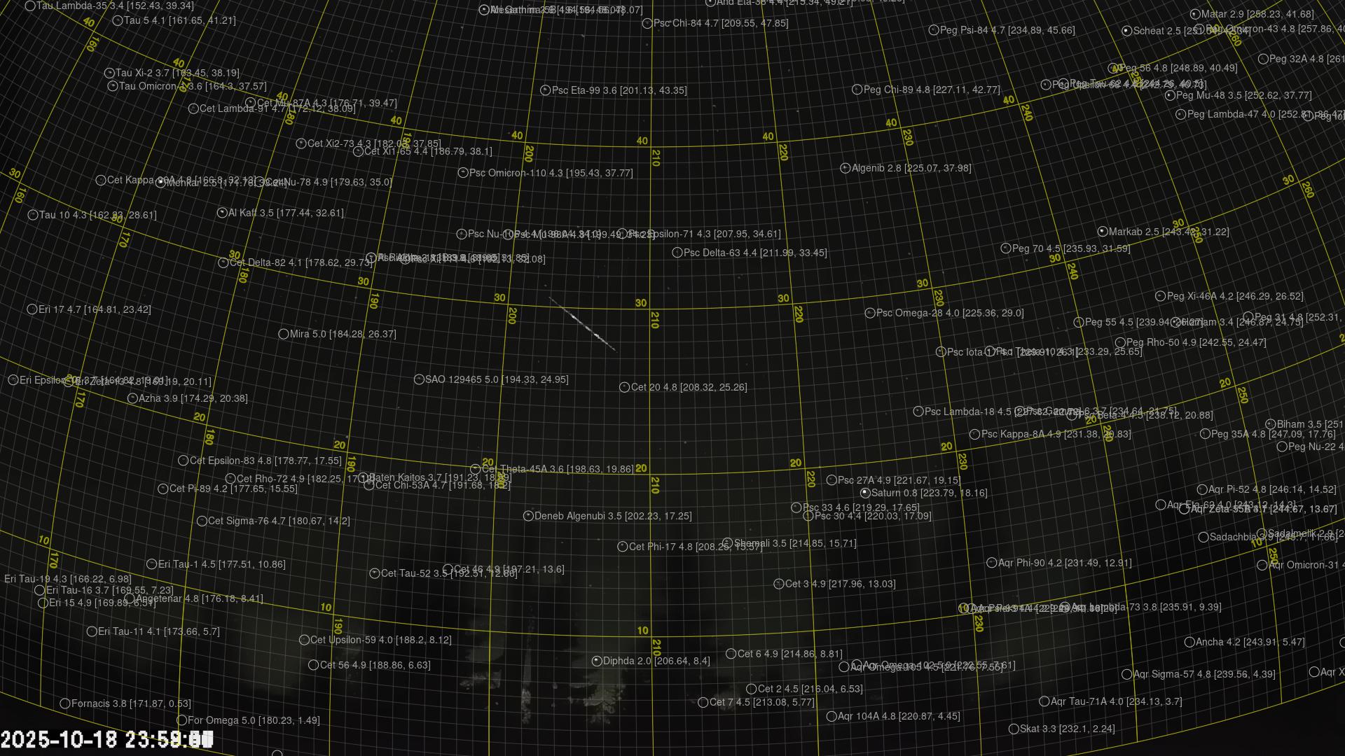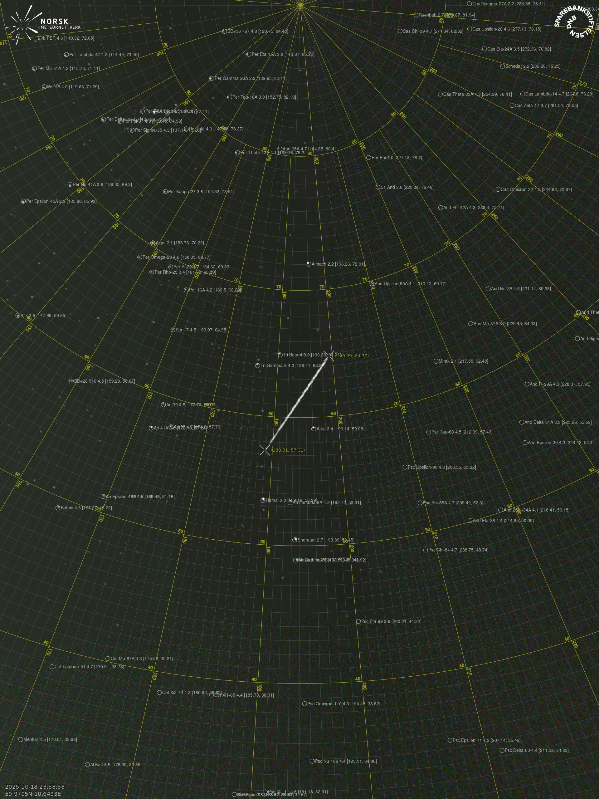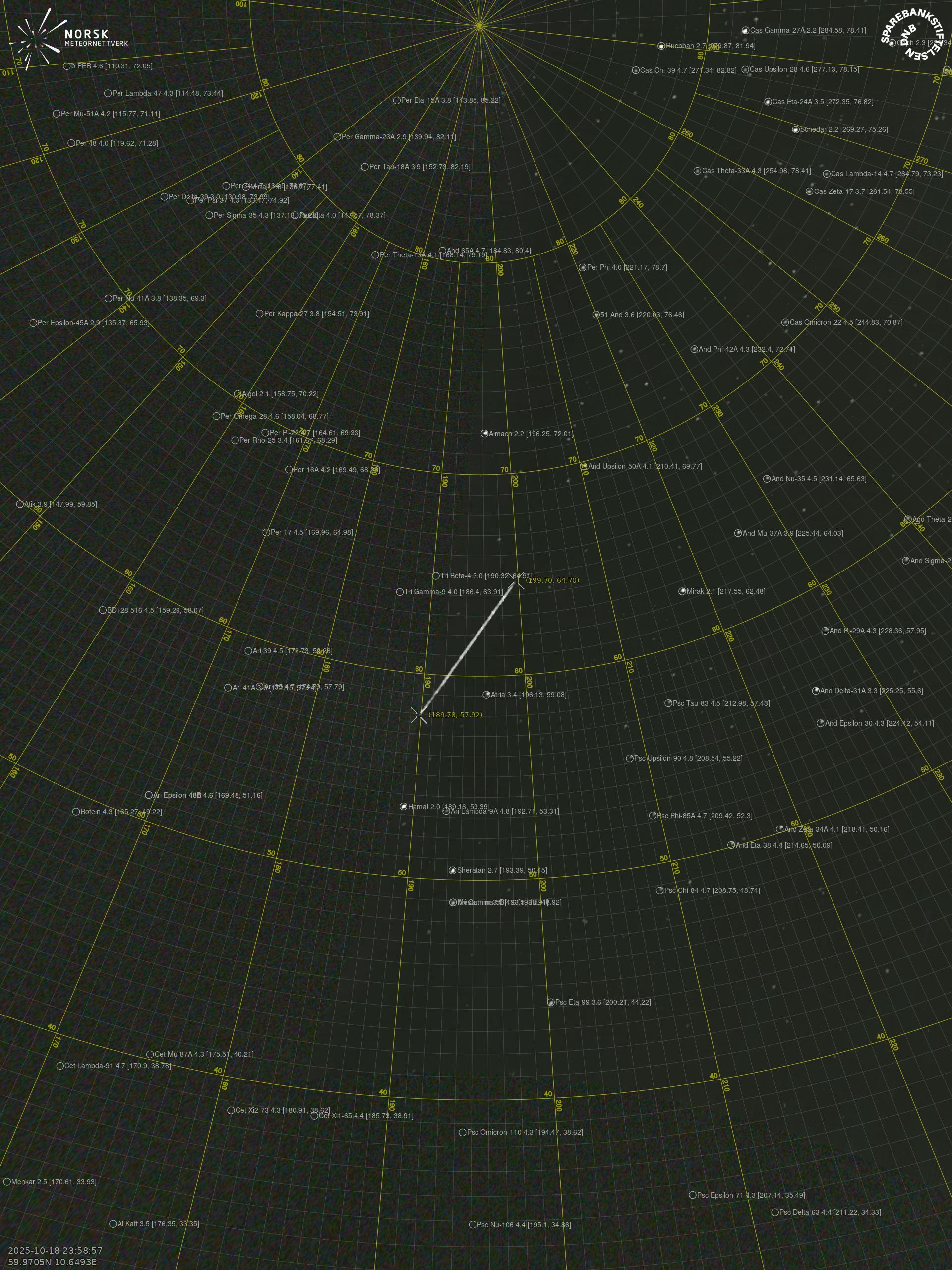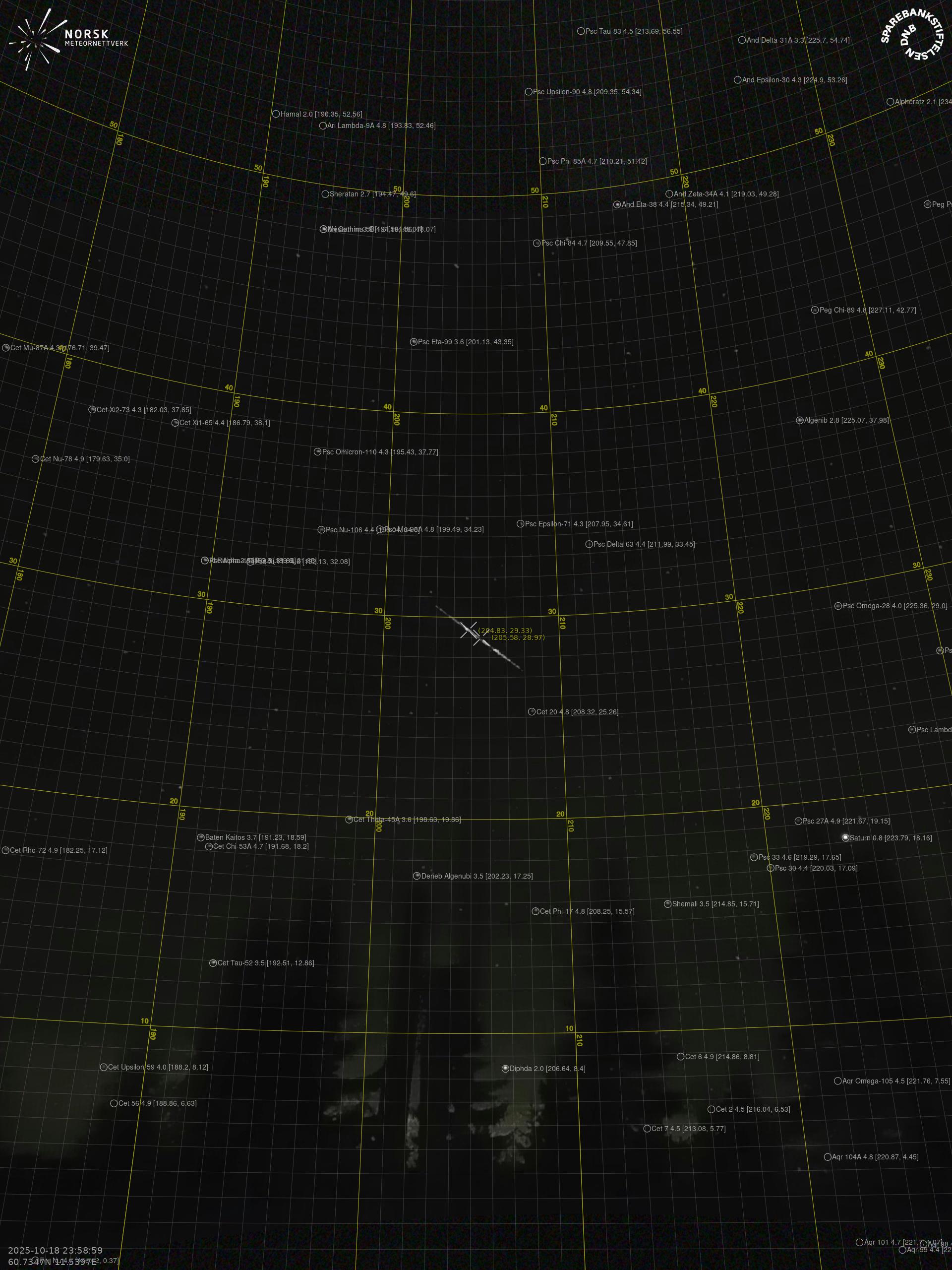 Meteor, poloha: Åros 2025-10-18 23:58:57 UTC