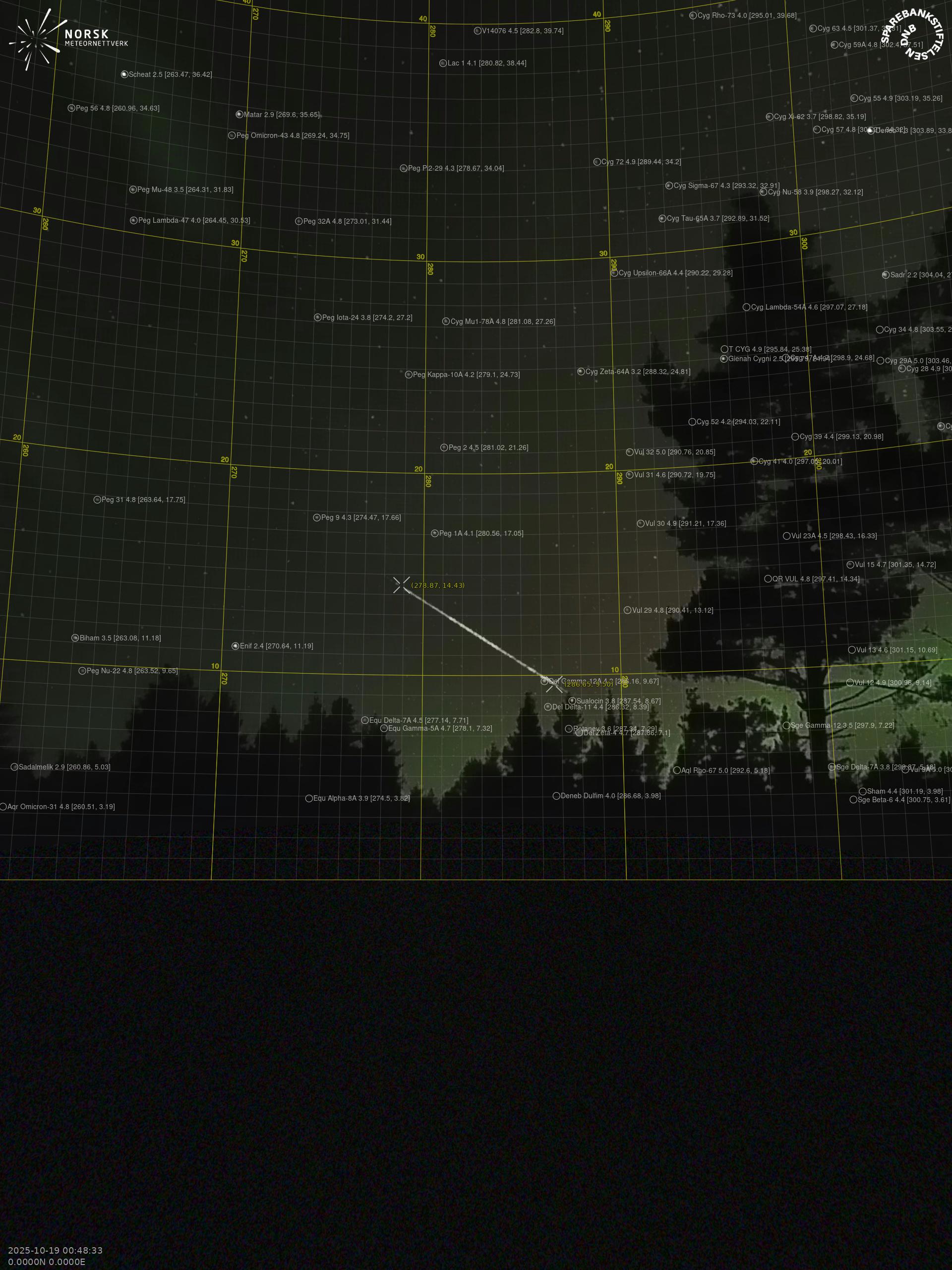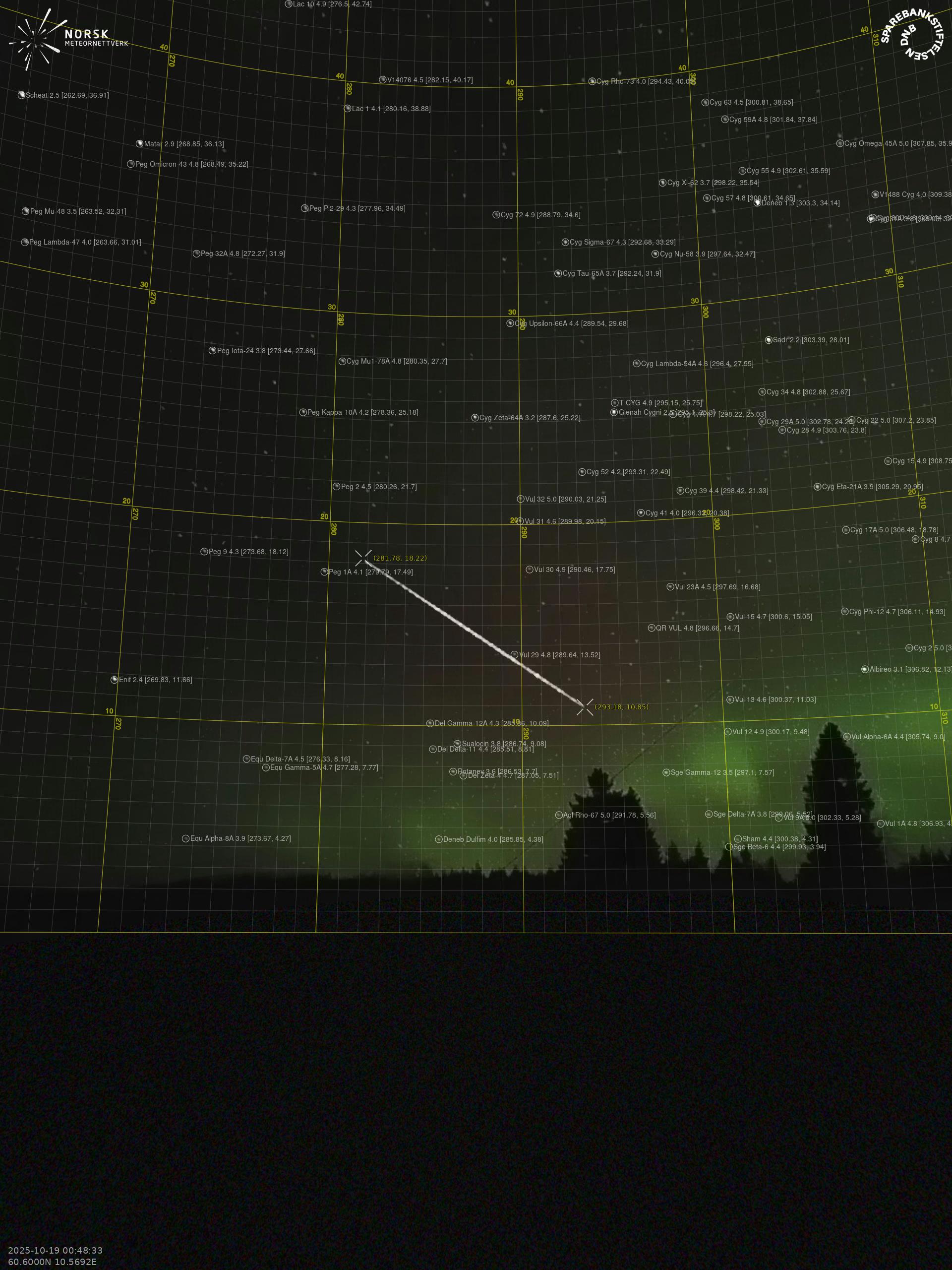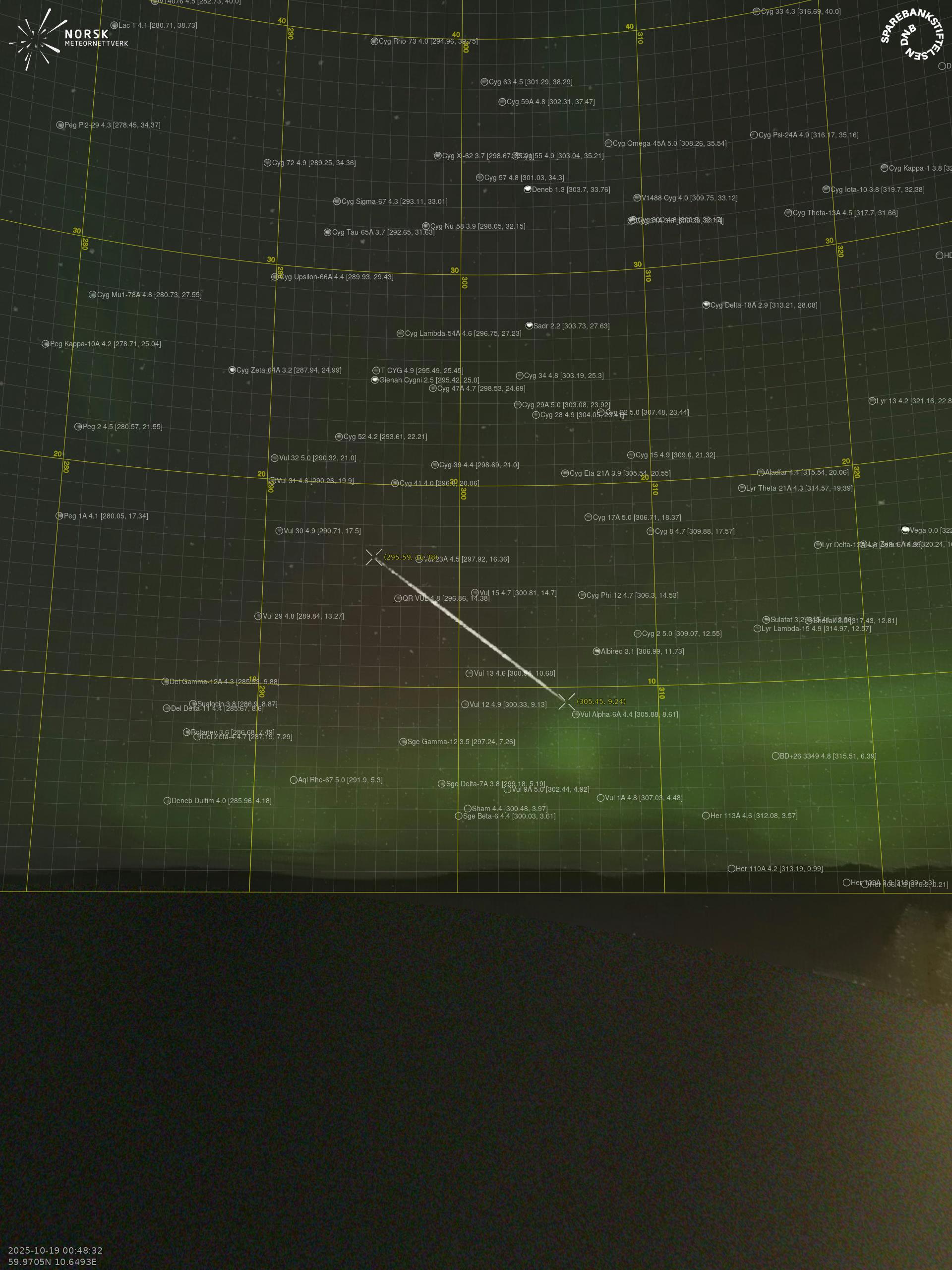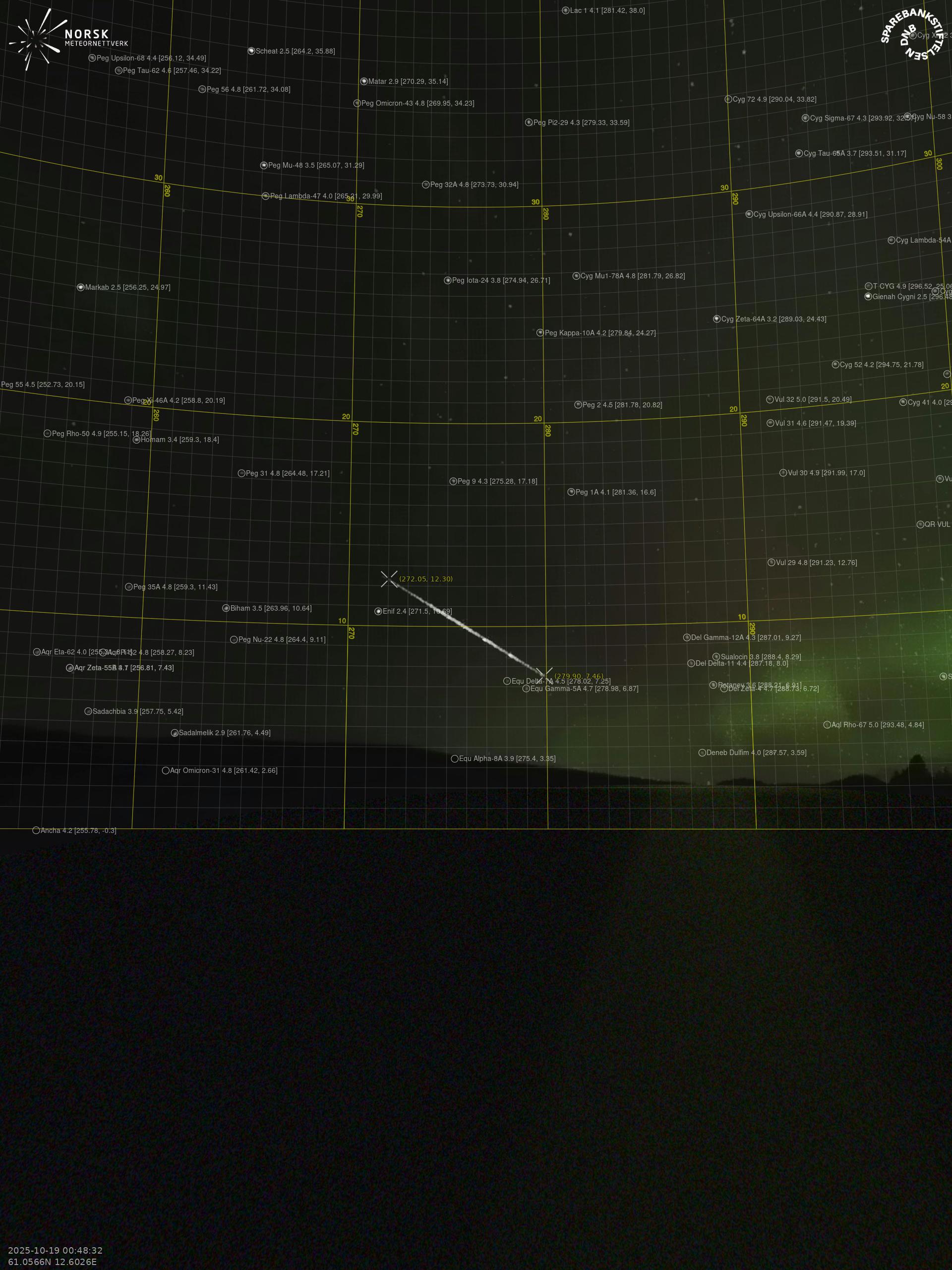 Meteor over Høyanger 2025-10-19 00:48:32 UTC