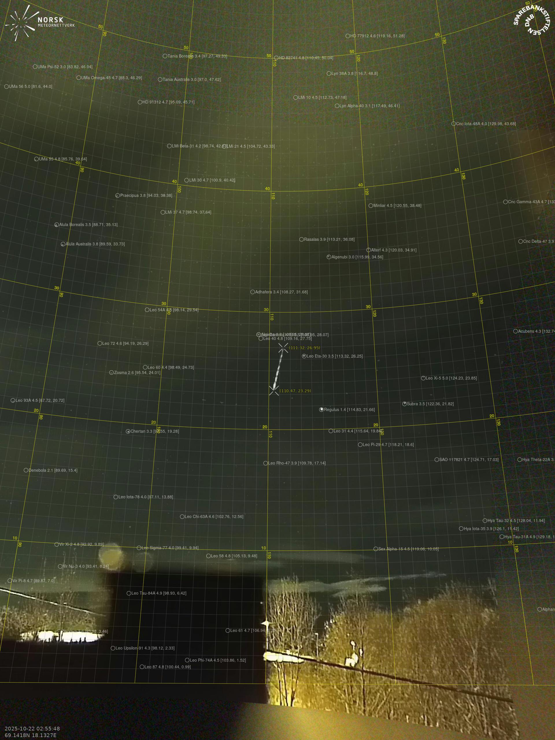 Meteor over Kautokeino 2025-10-22 02:55:48 UTC