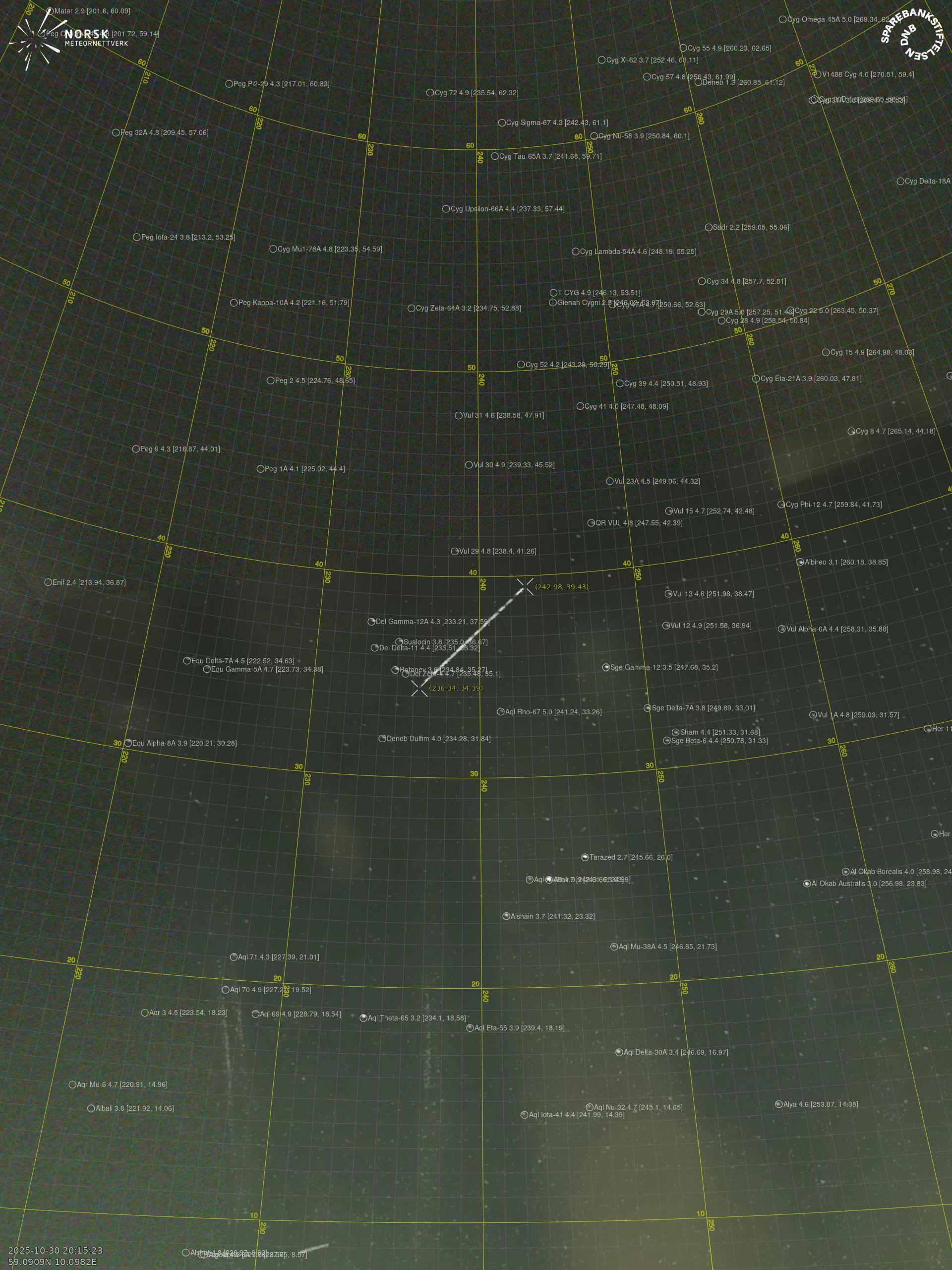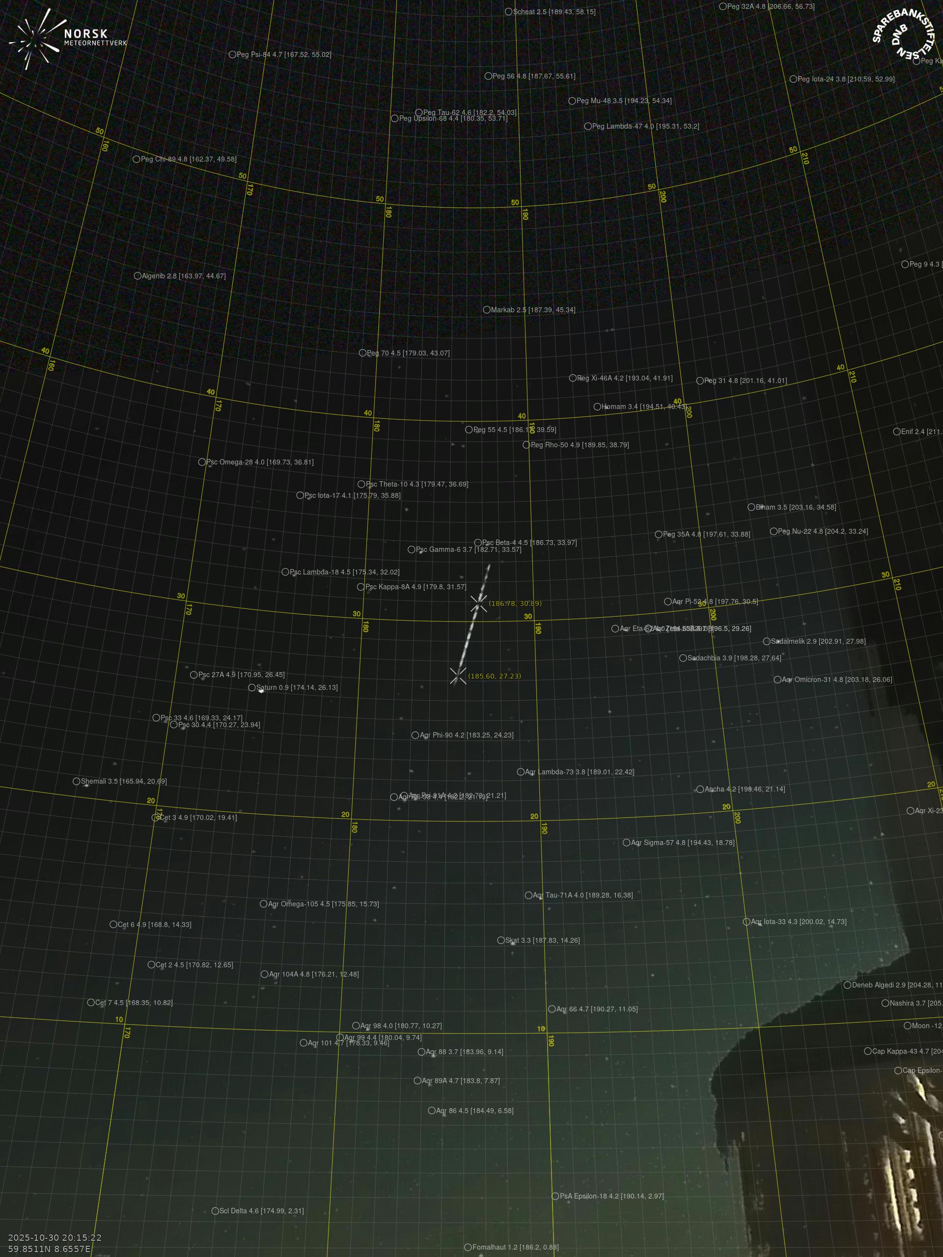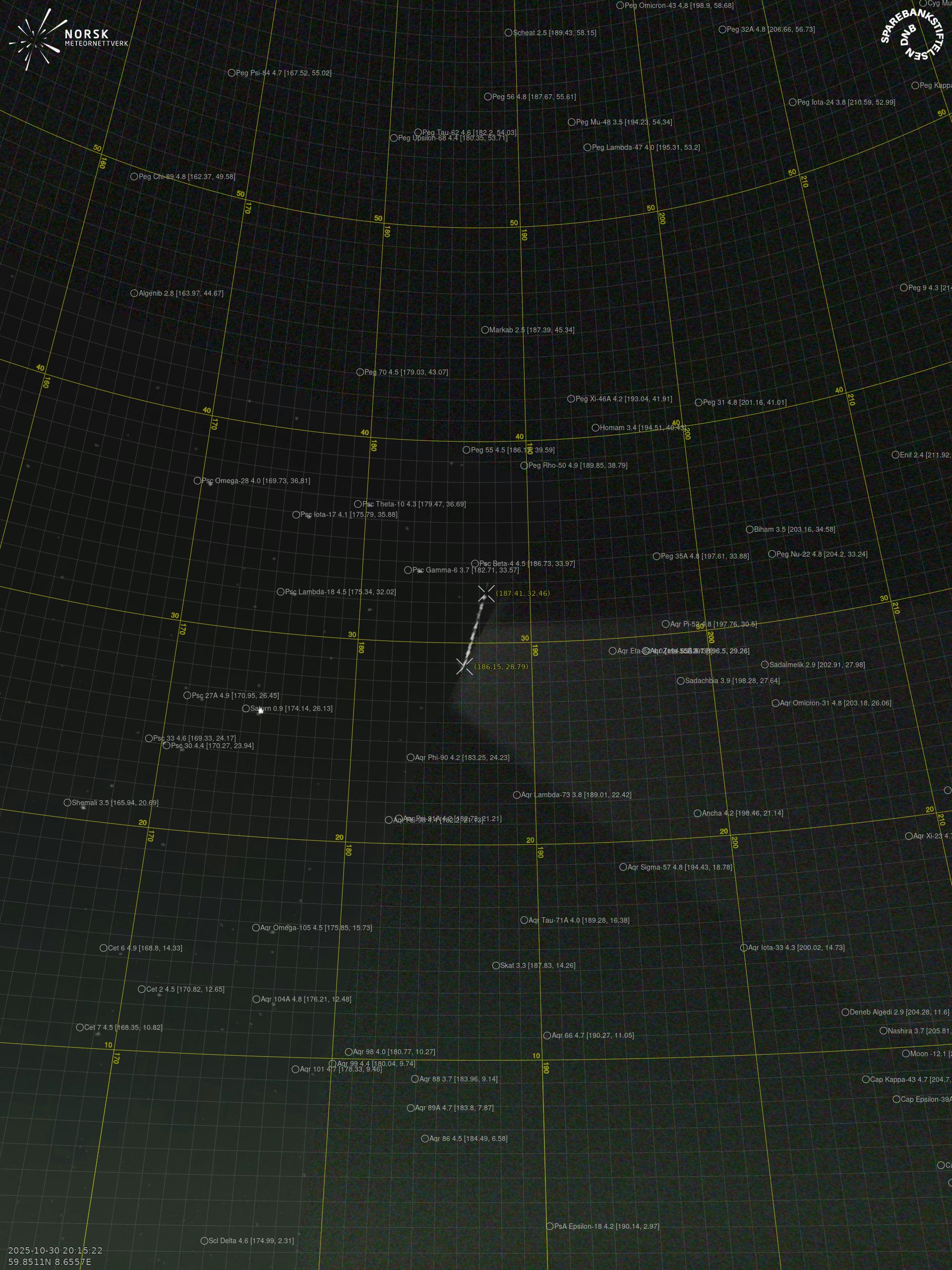 Meteor over Birkeland 2025-10-30 20:15:22 UTC