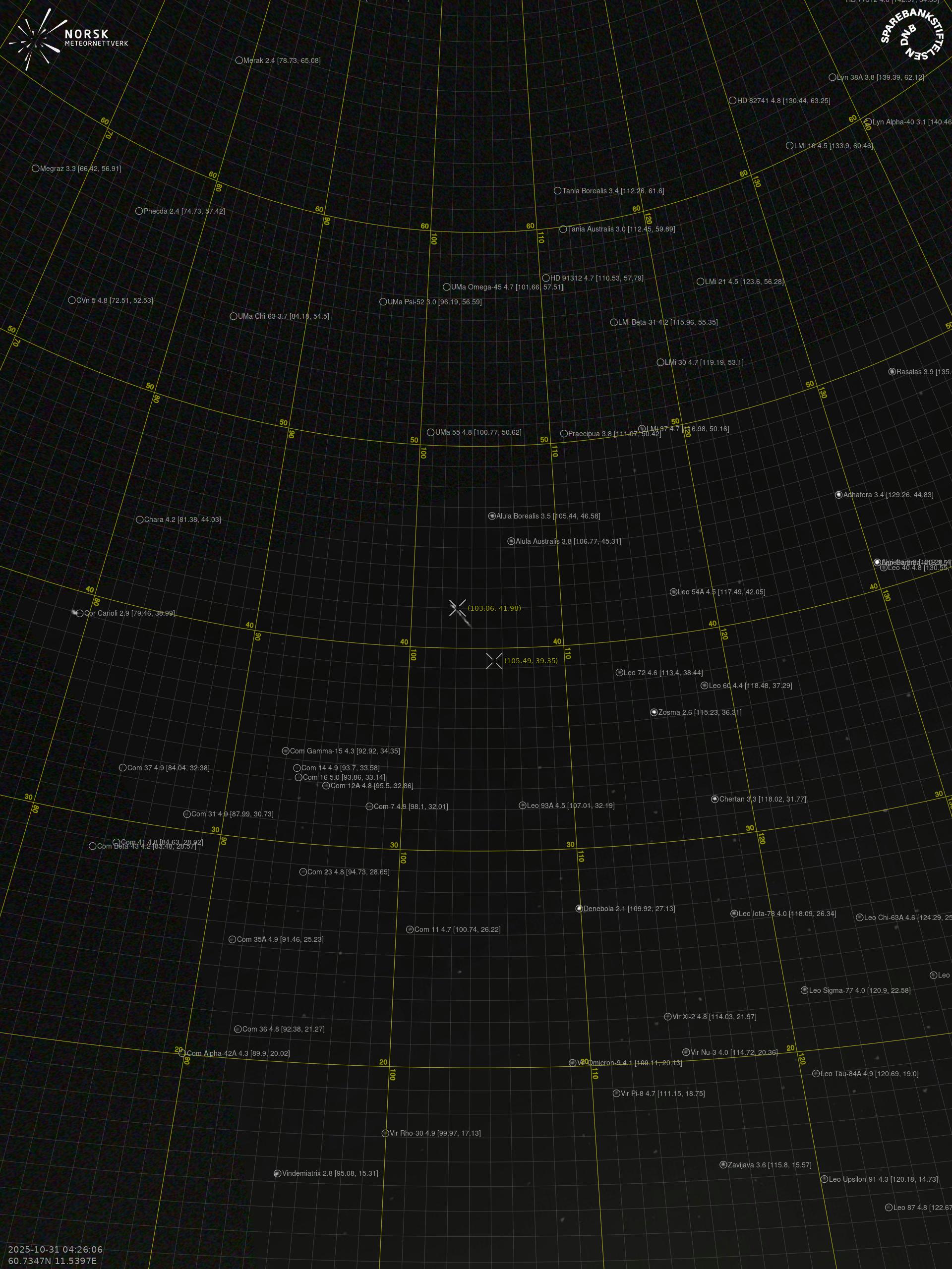 Meteor, poloha: Inndyr 2025-10-31 04:26:06 UTC