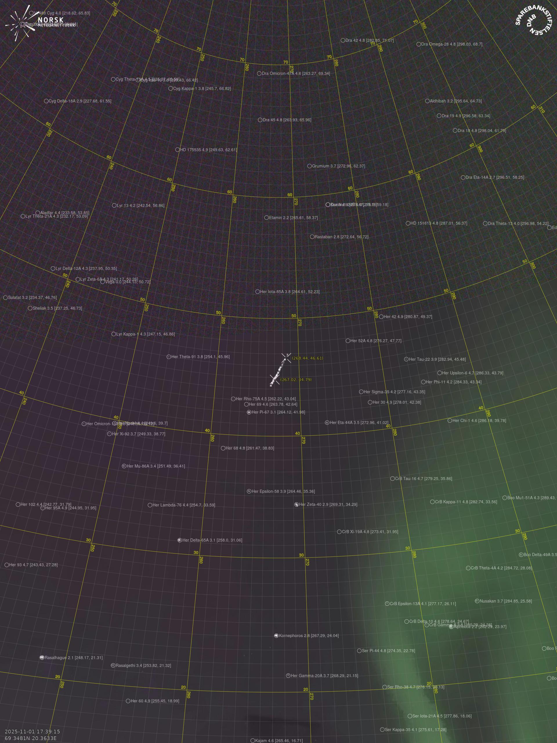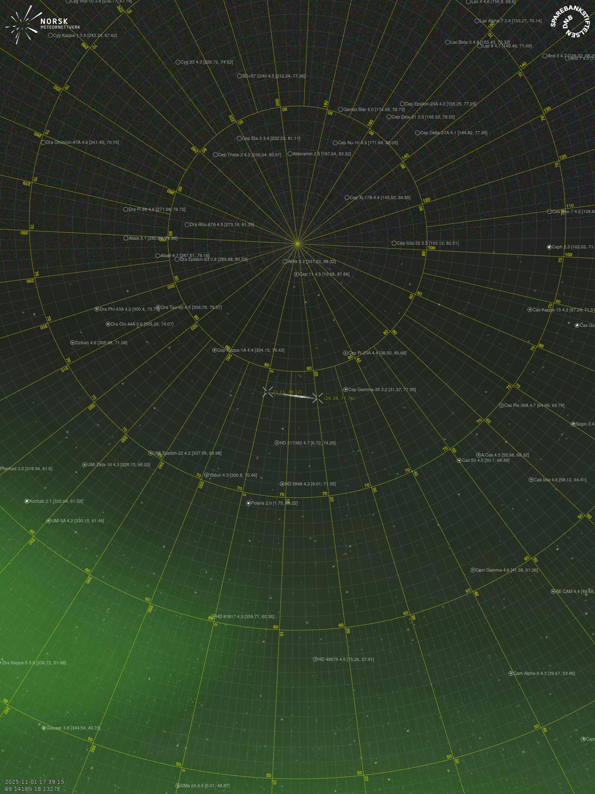 Meteor over Sørreisa 2025-11-01 17:39:15 UTC