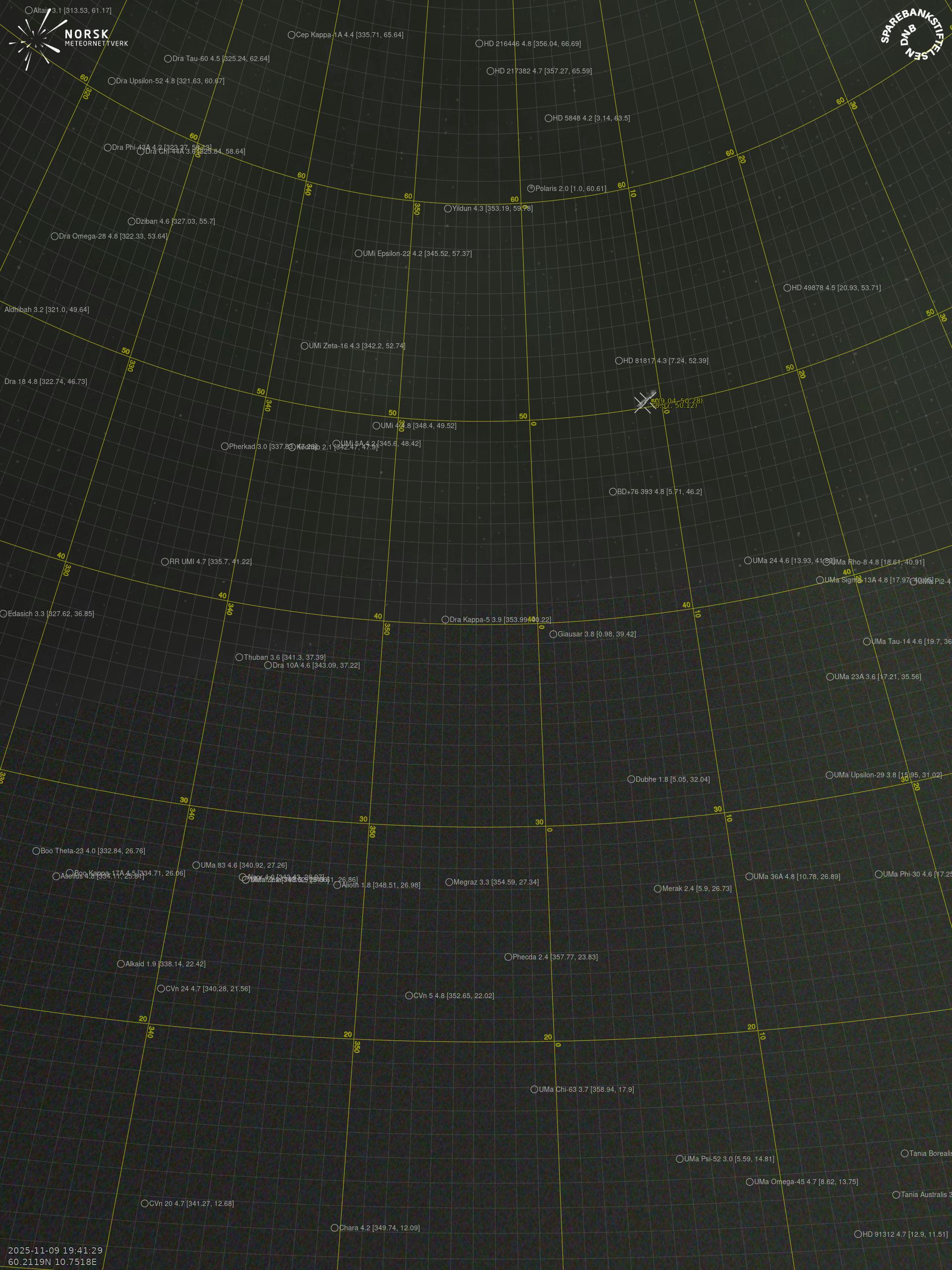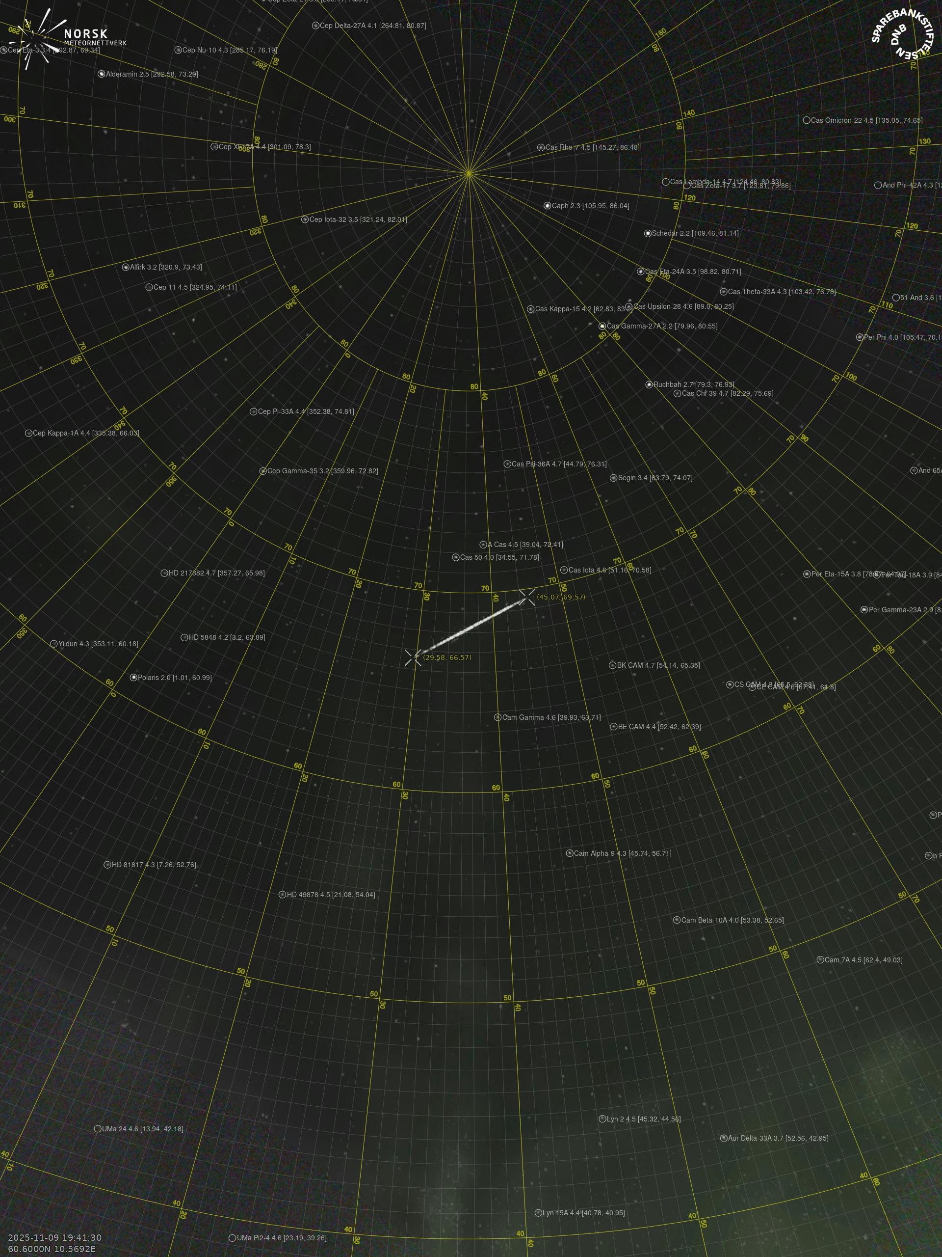 Meteor Brumunddalin yllä 2025-11-09 19:41:29 UTC