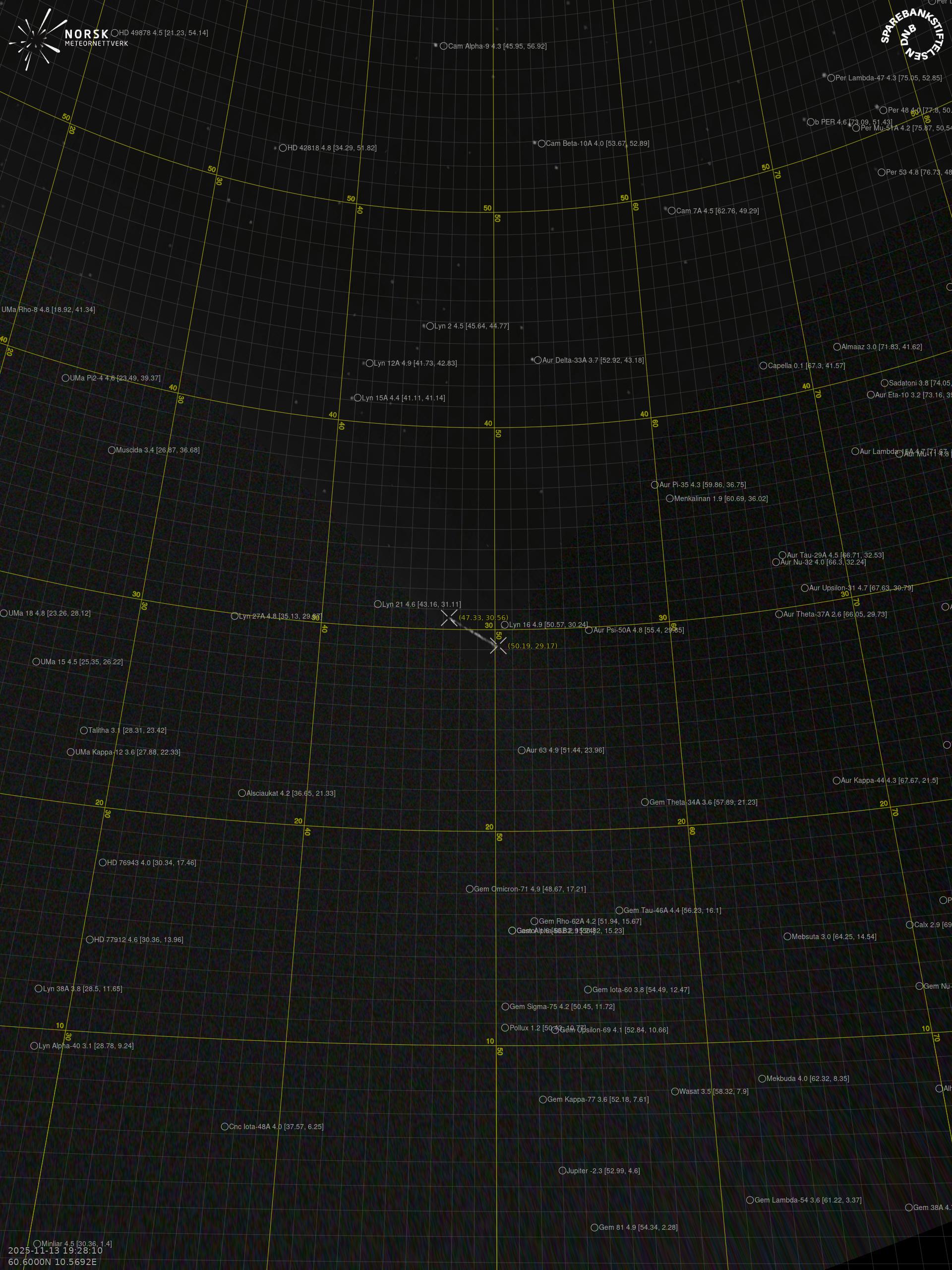 Meteor over Innbygda 2025-11-13 19:28:11 UTC