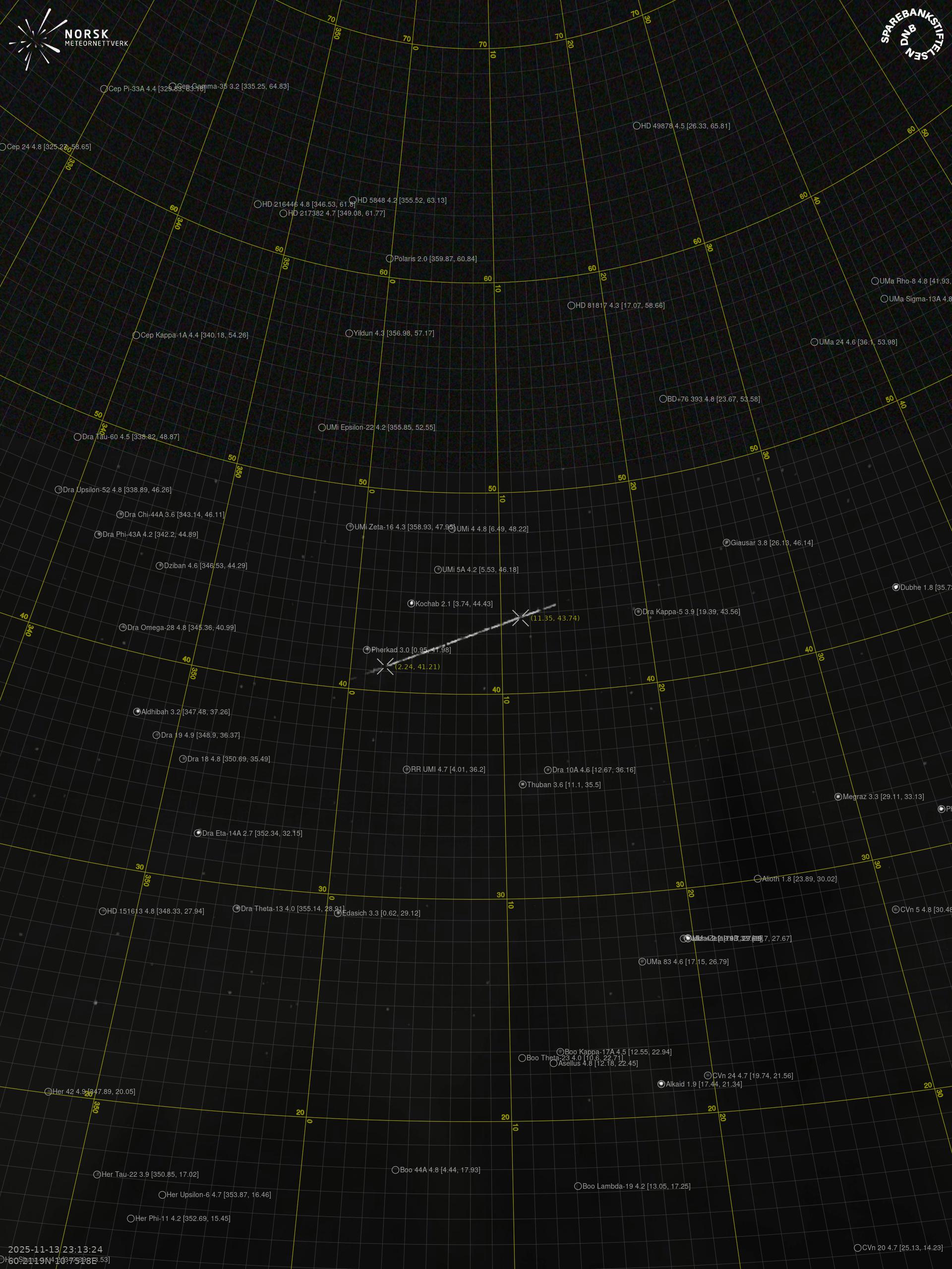 Meteor, poloha: Moelv 2025-11-13 23:13:23 UTC