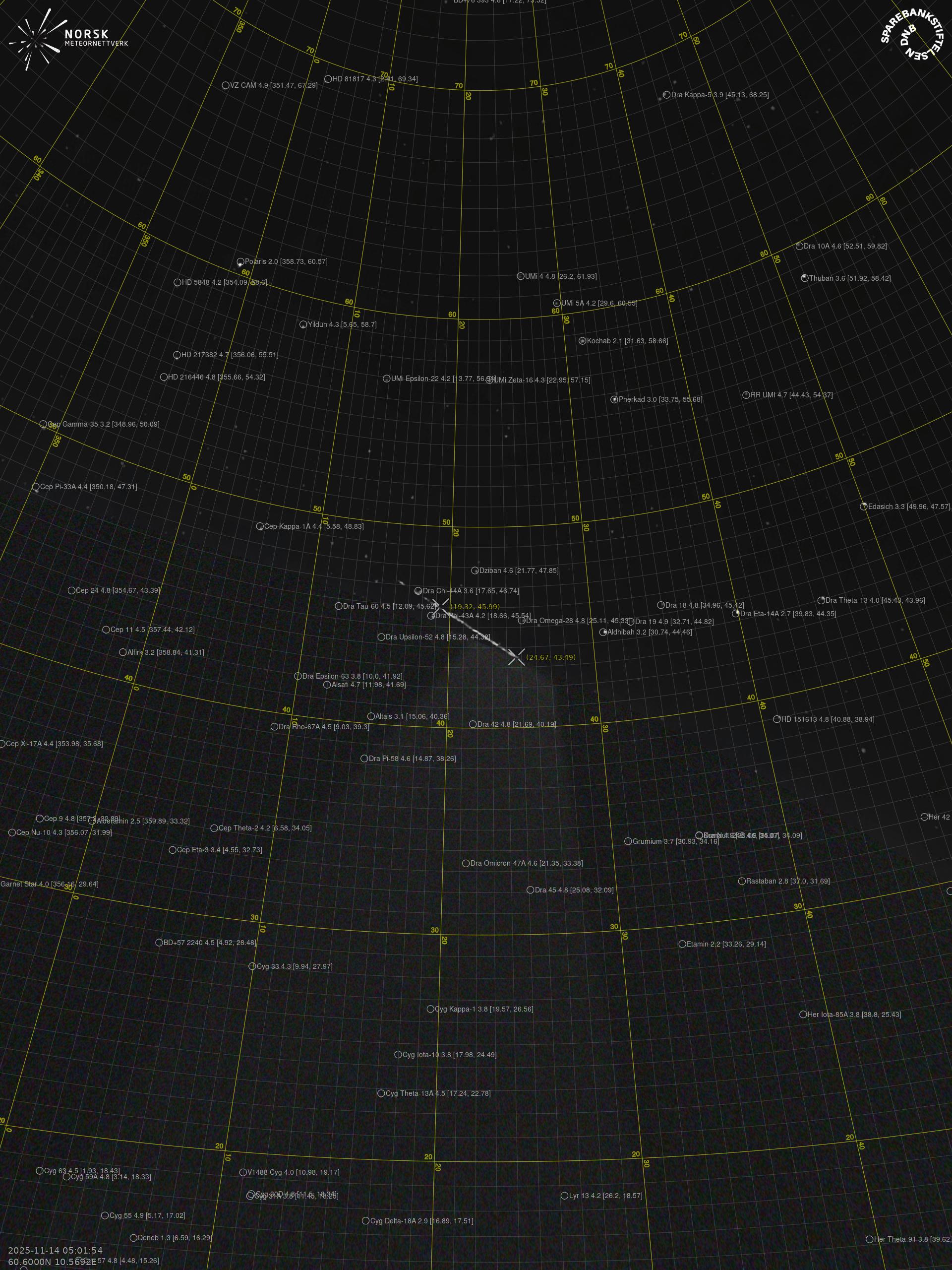 Meteor, poloha: Rena 2025-11-14 05:01:54 UTC