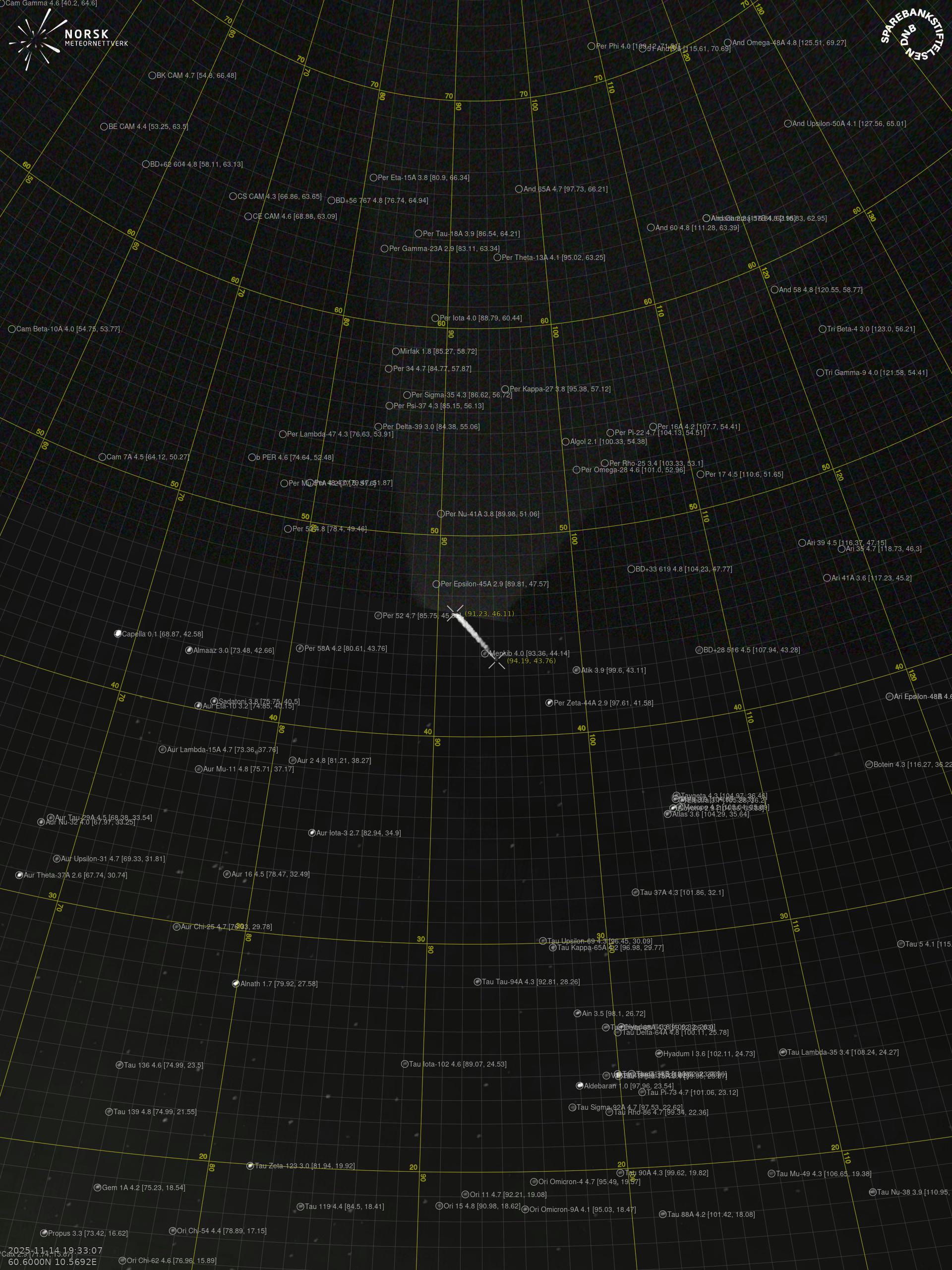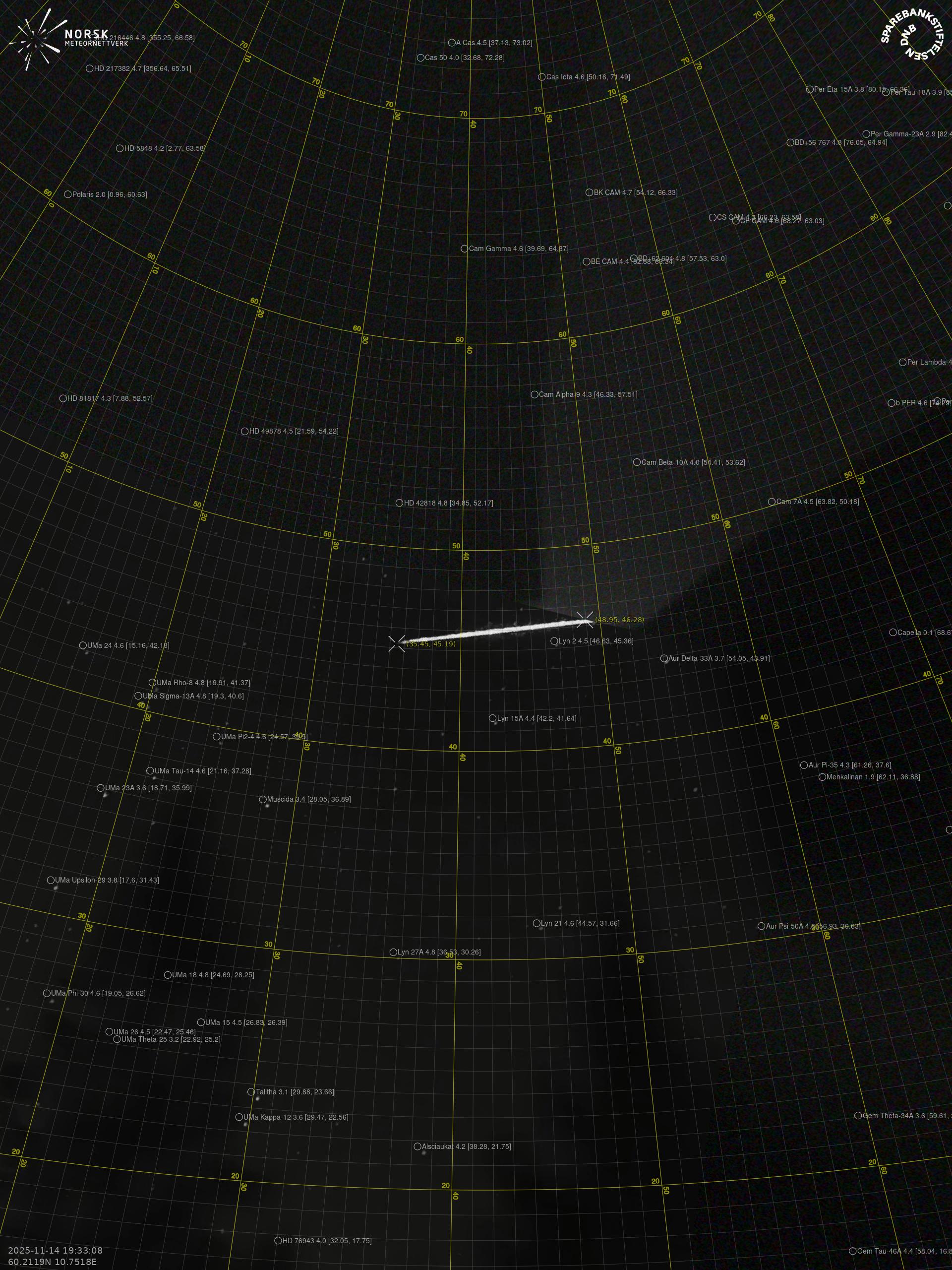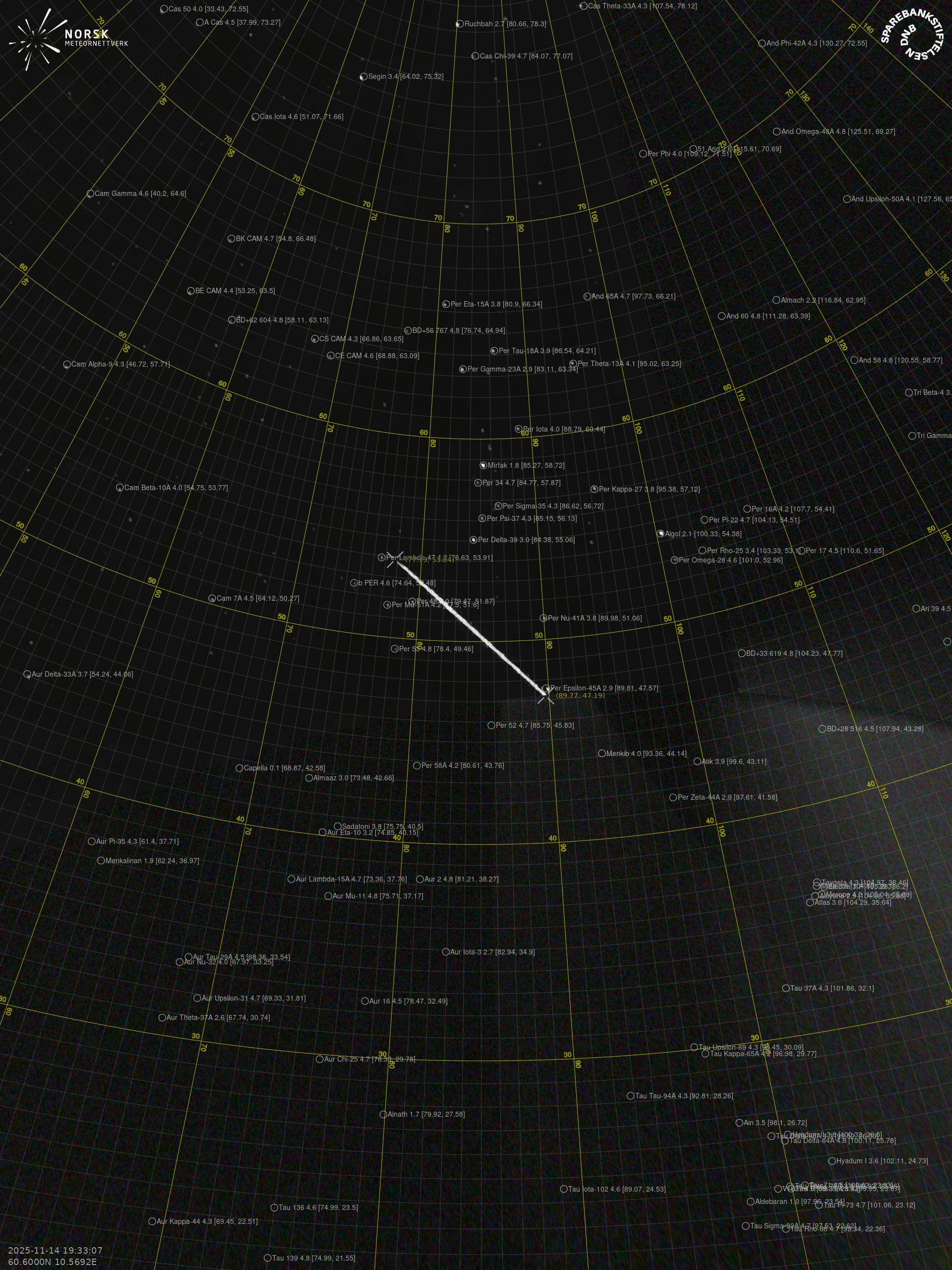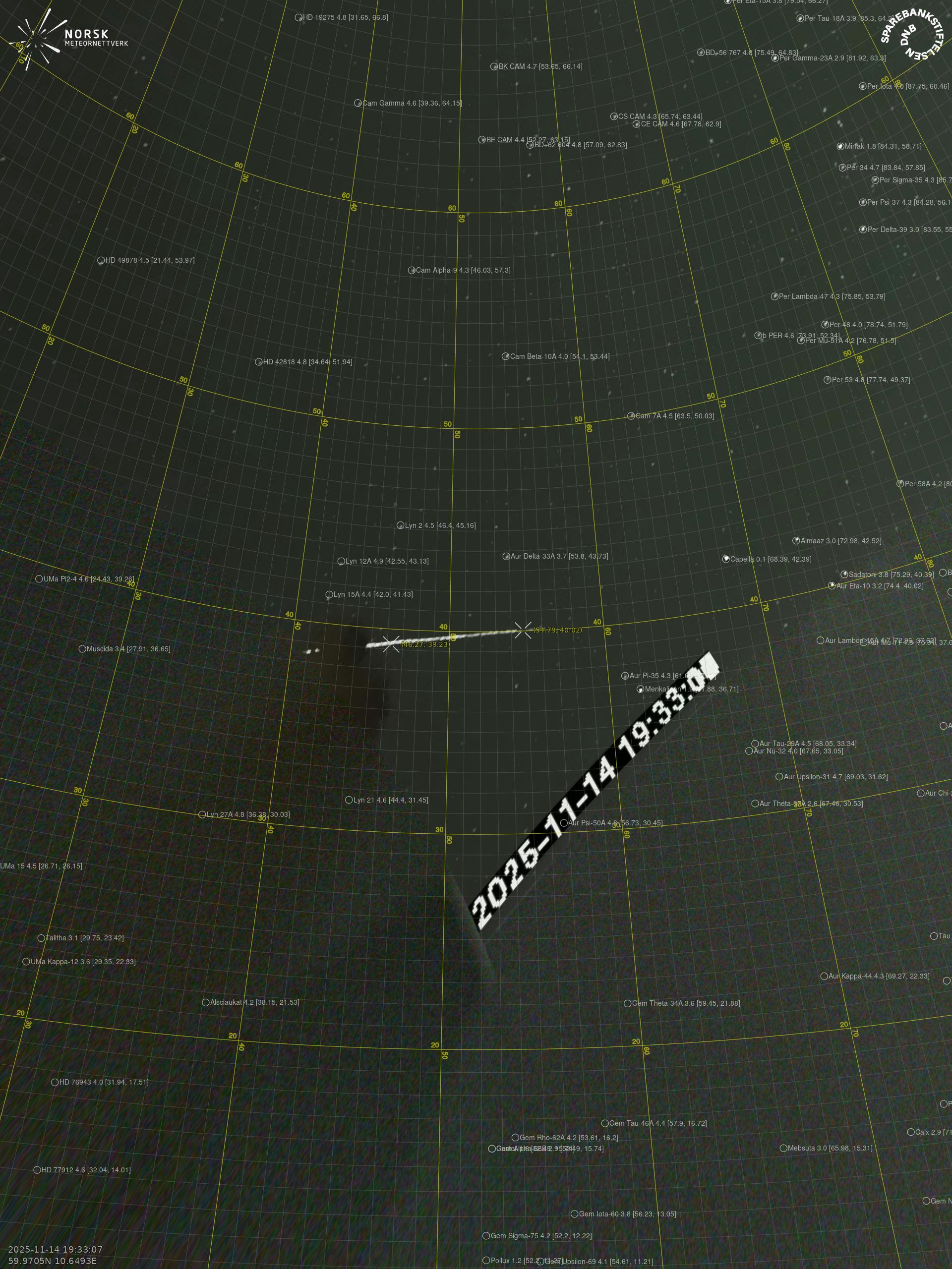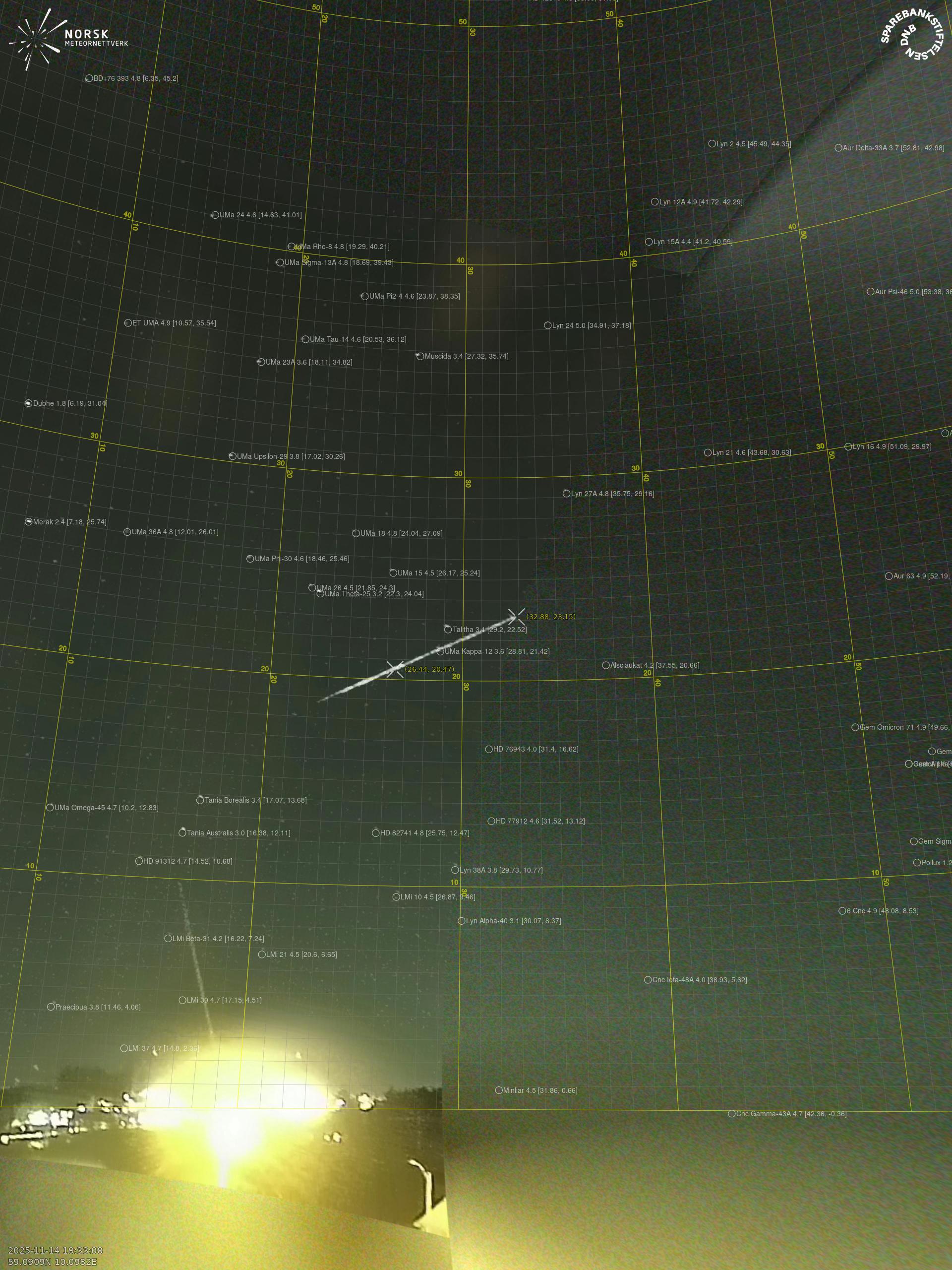 Meteor Løtenin yllä 2025-11-14 19:33:07 UTC