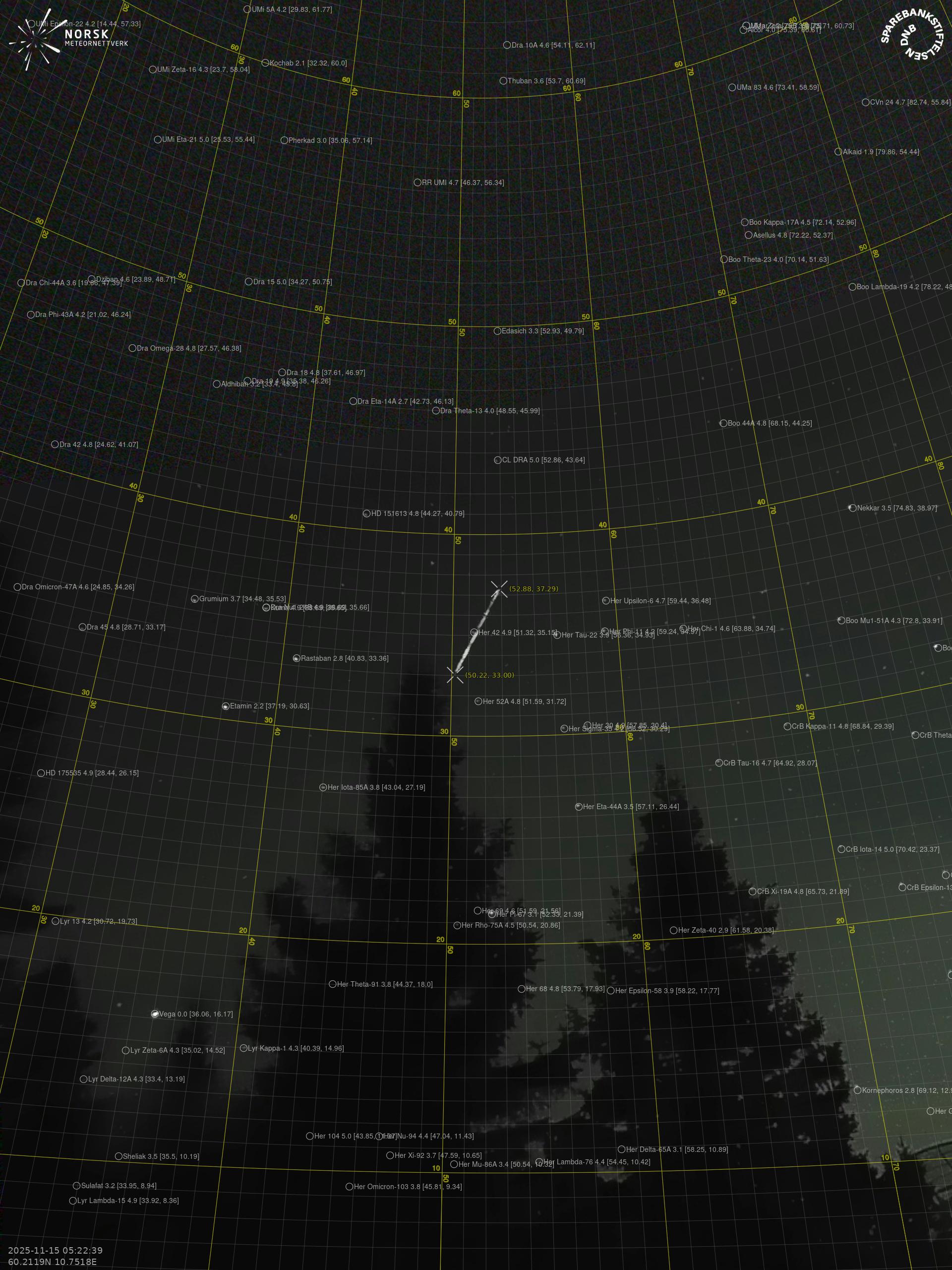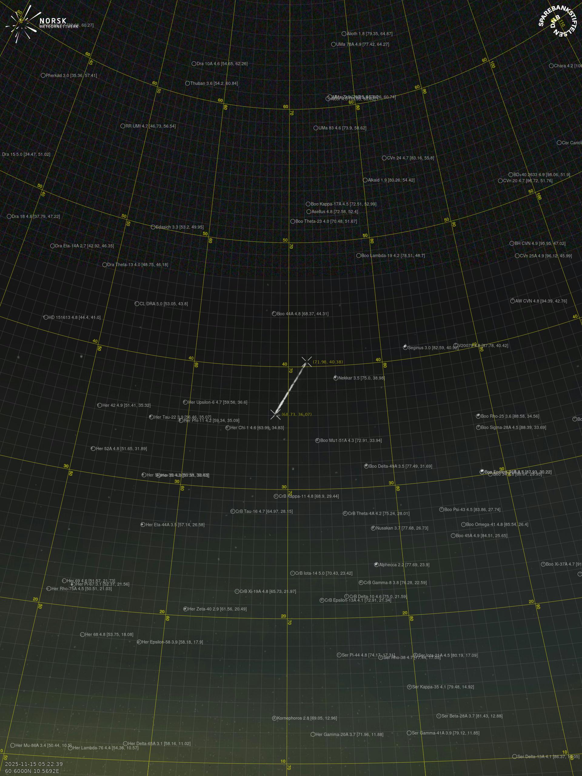Meteor Innbygdan yllä 2025-11-15 05:22:39 UTC