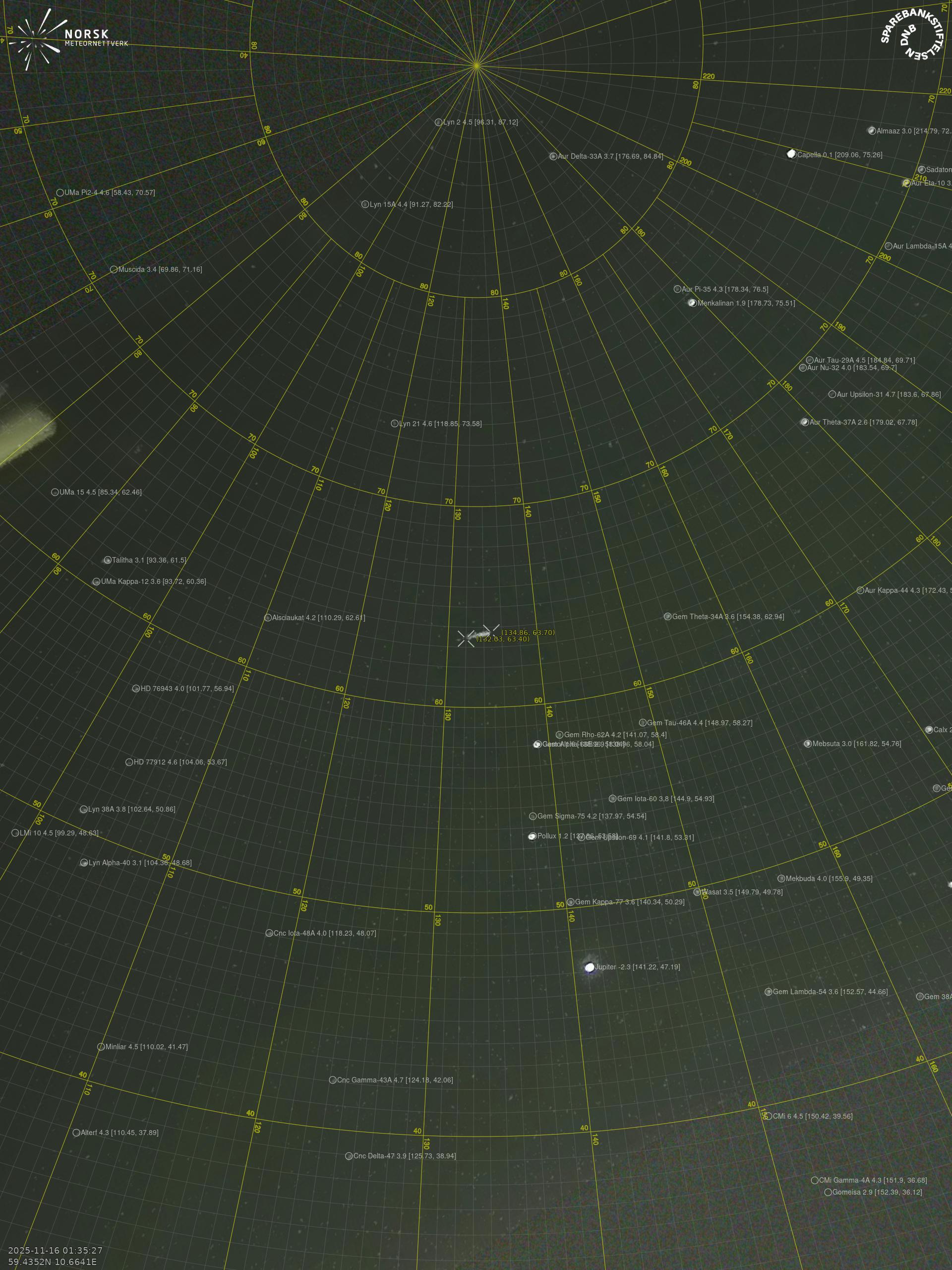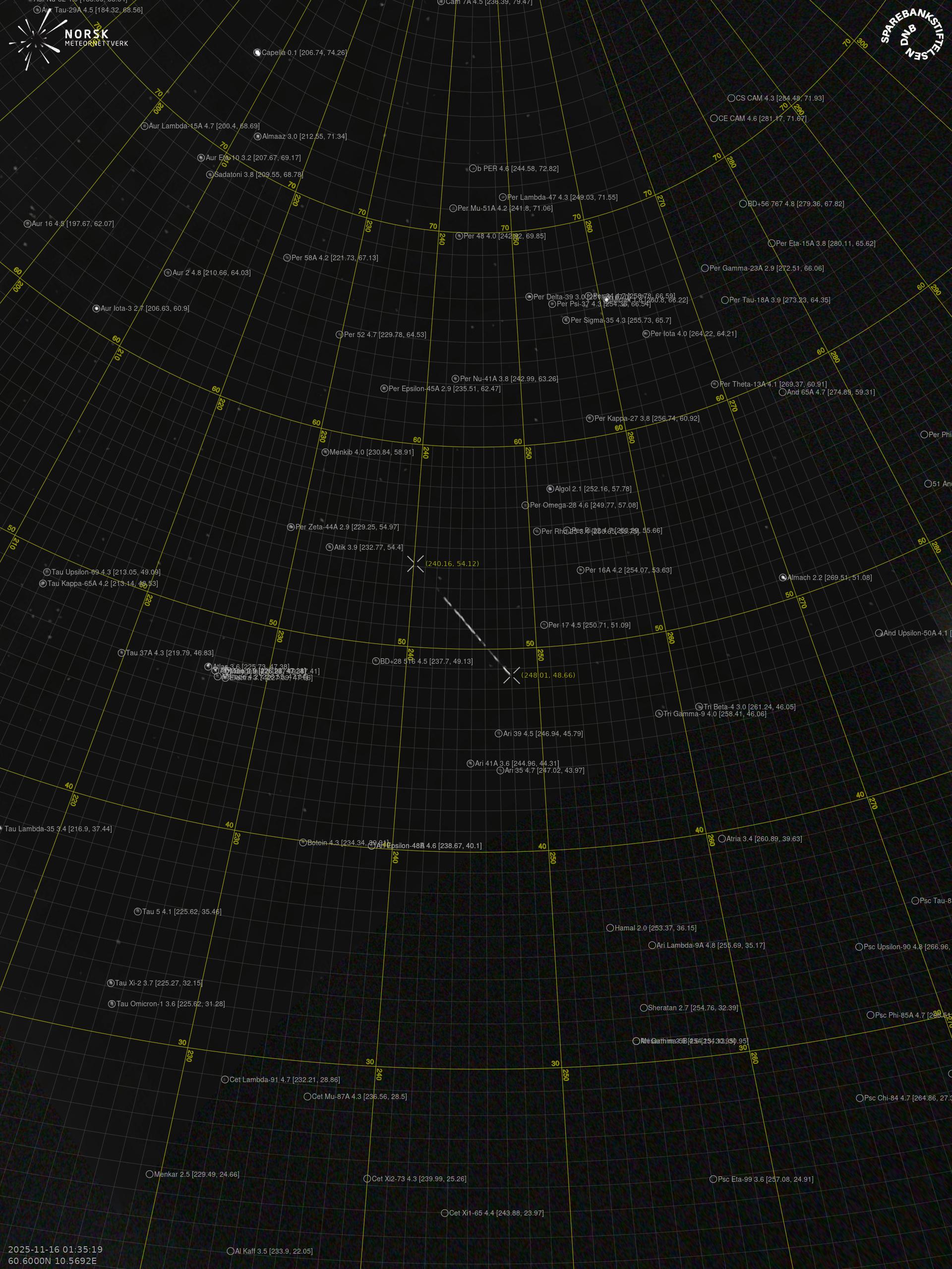 Meteor over Hønefoss 2025-11-16 01:35:19 UTC
