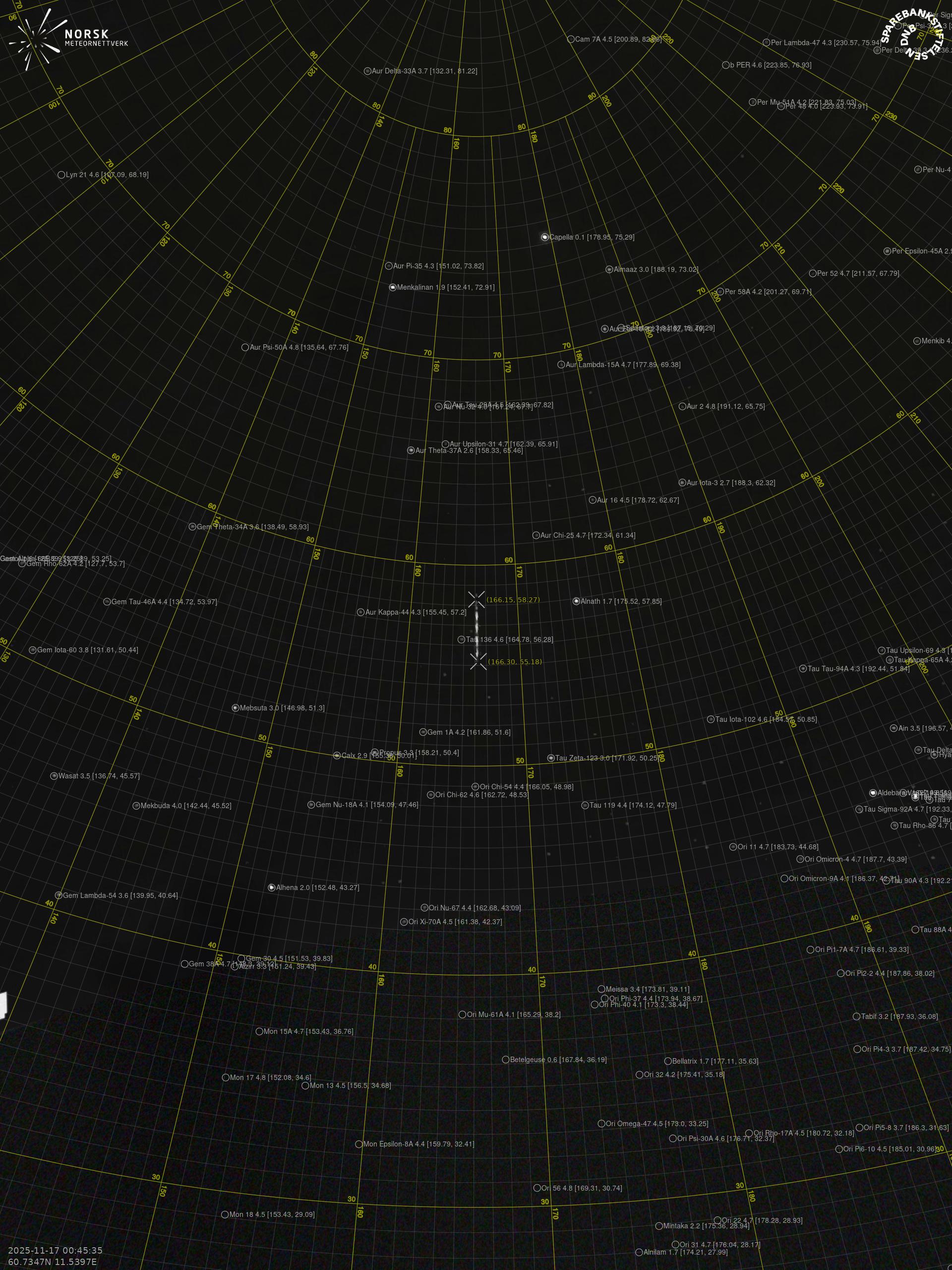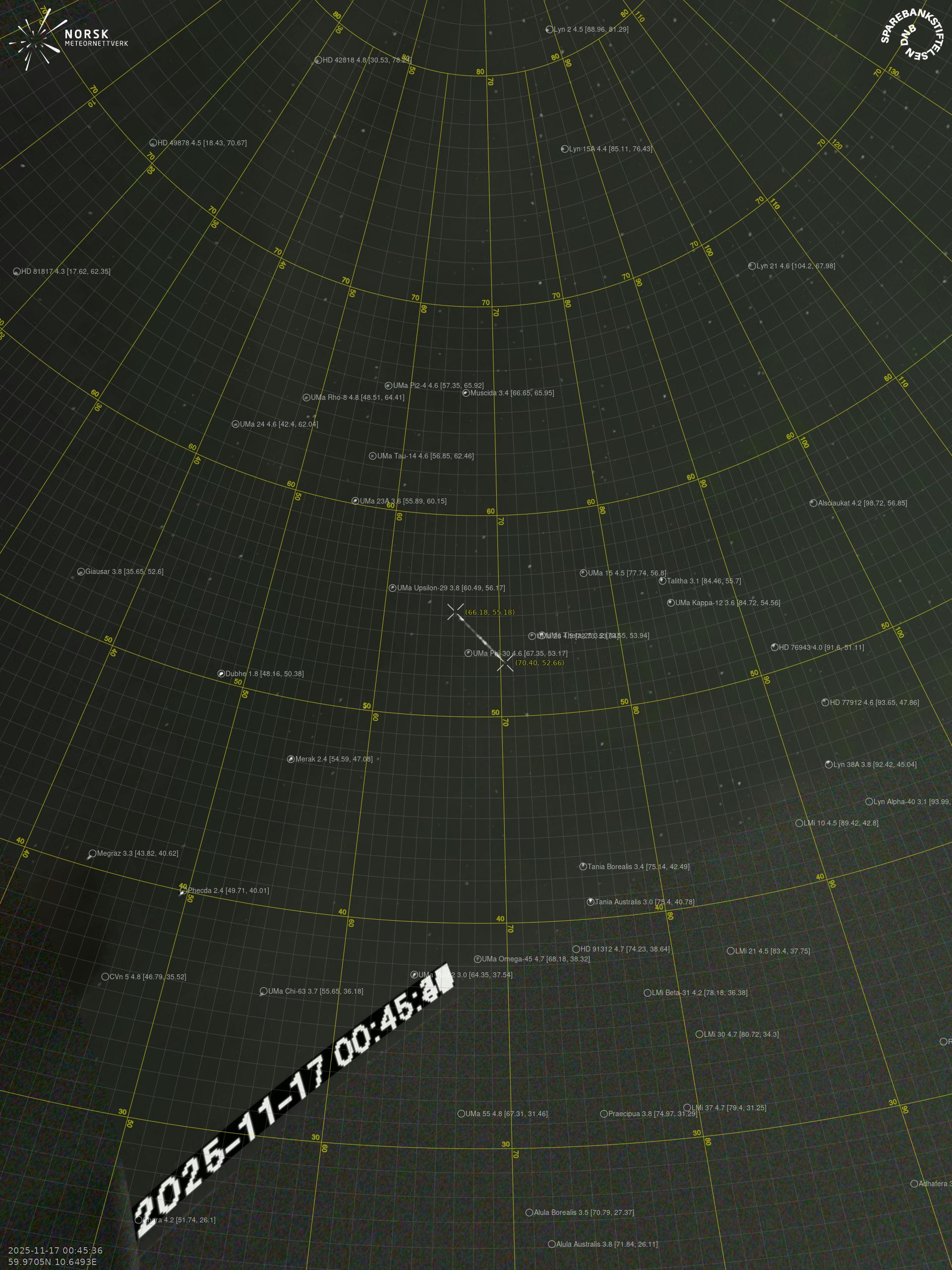 Meteor over Spetalen 2025-11-17 00:45:35 UTC