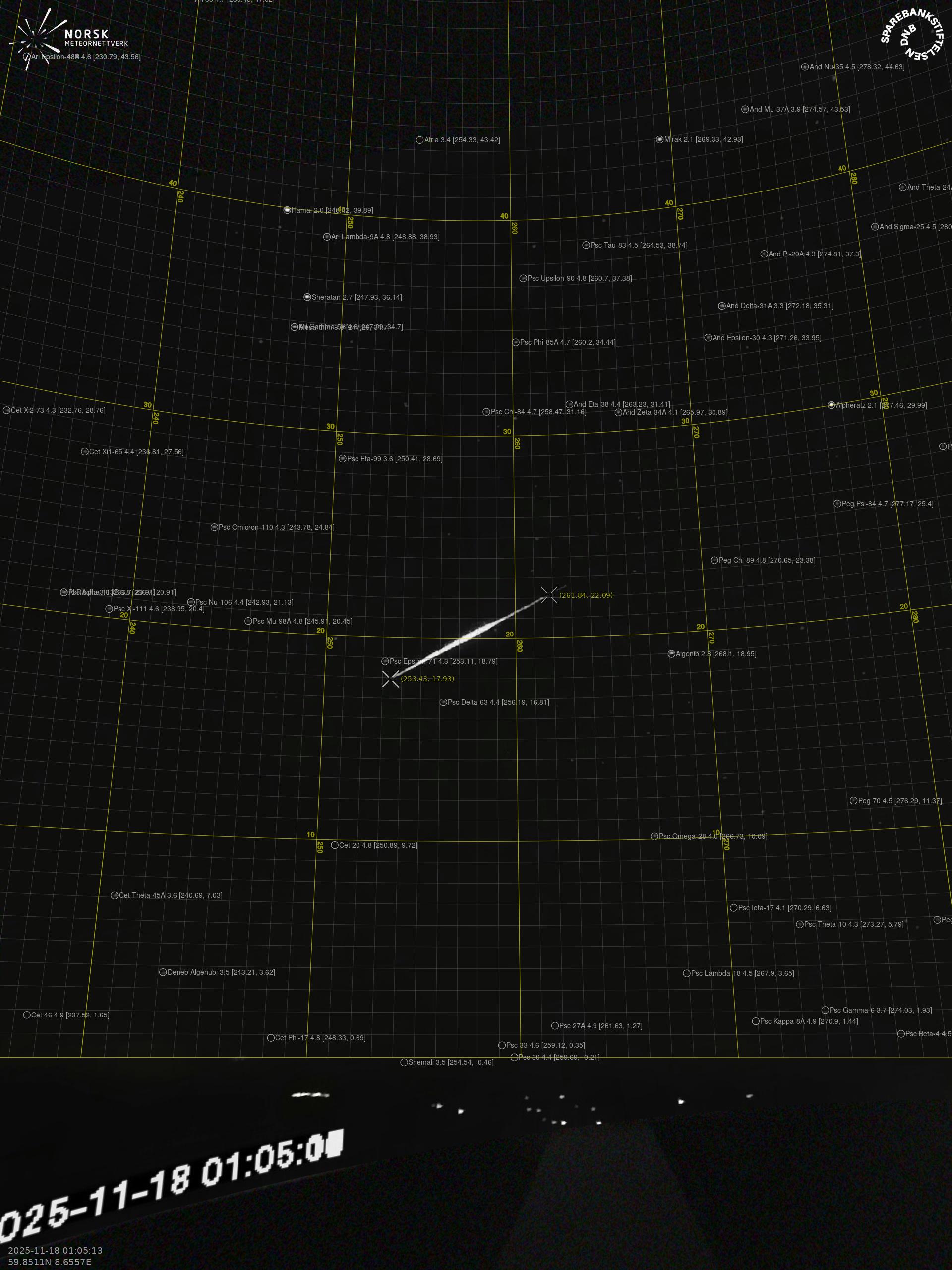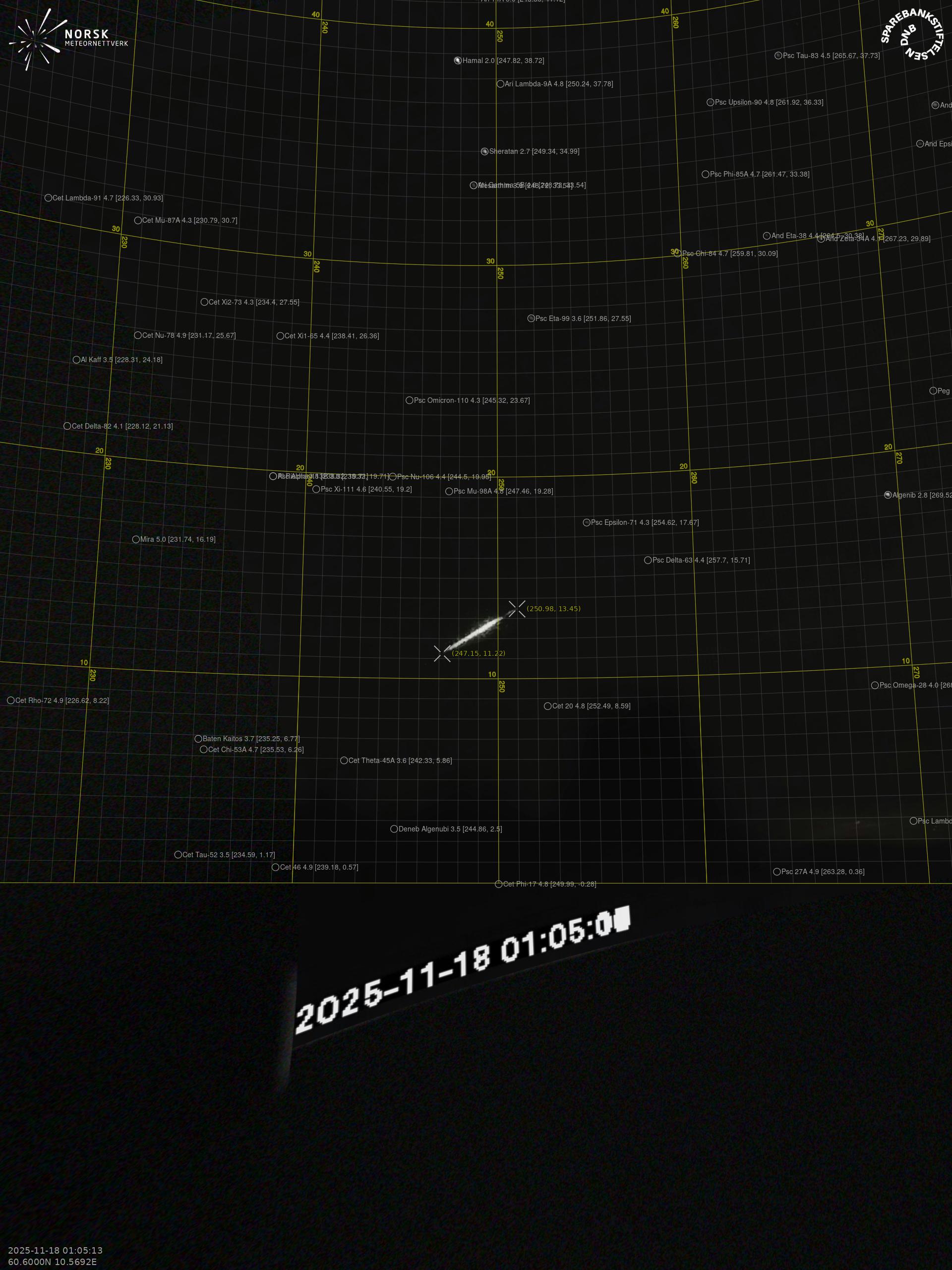 Meteor, poloha: Sveio 2025-11-18 01:05:13 UTC