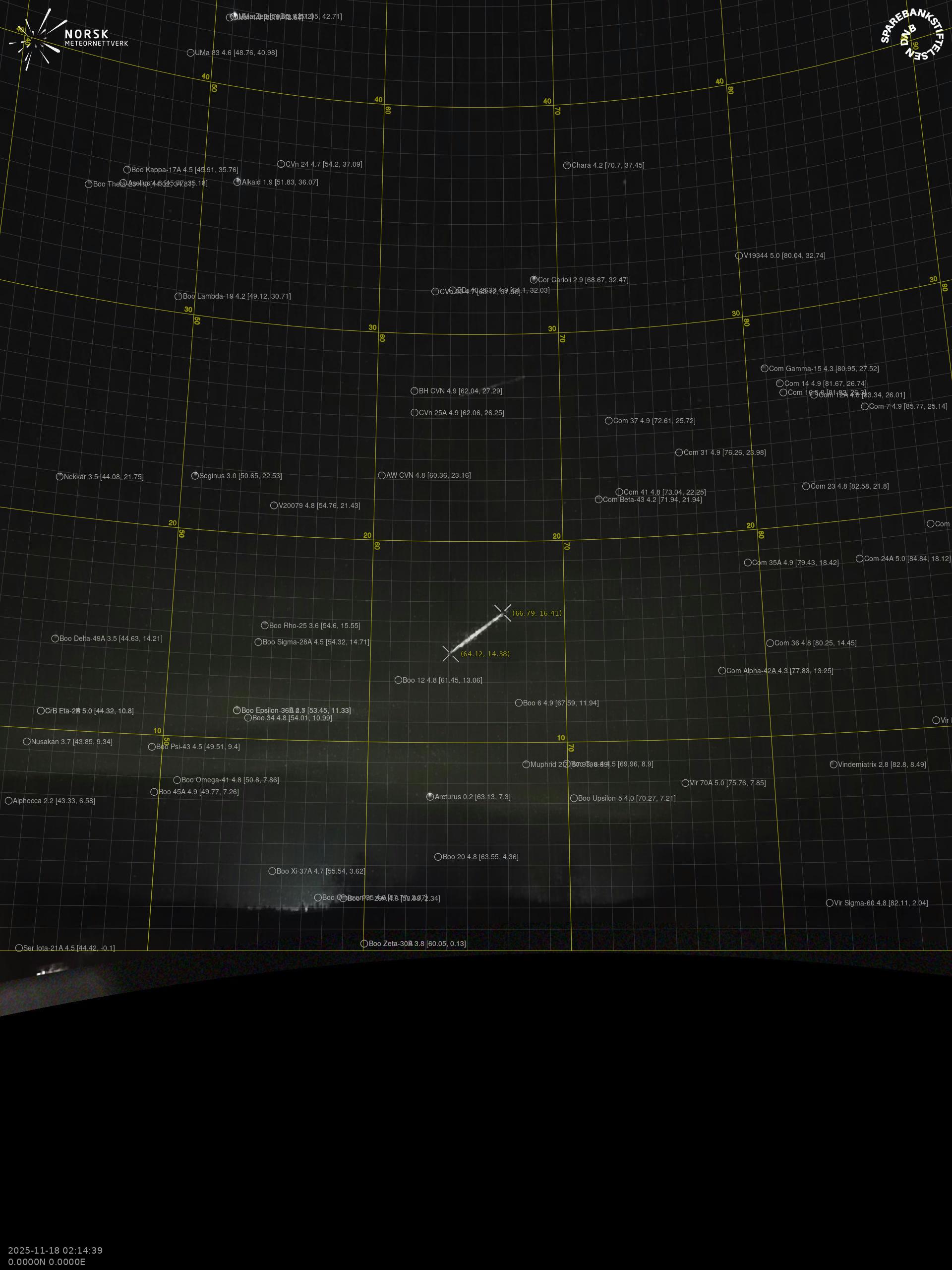 Meteor over Härnösand 2025-11-18 02:14:39 UTC
